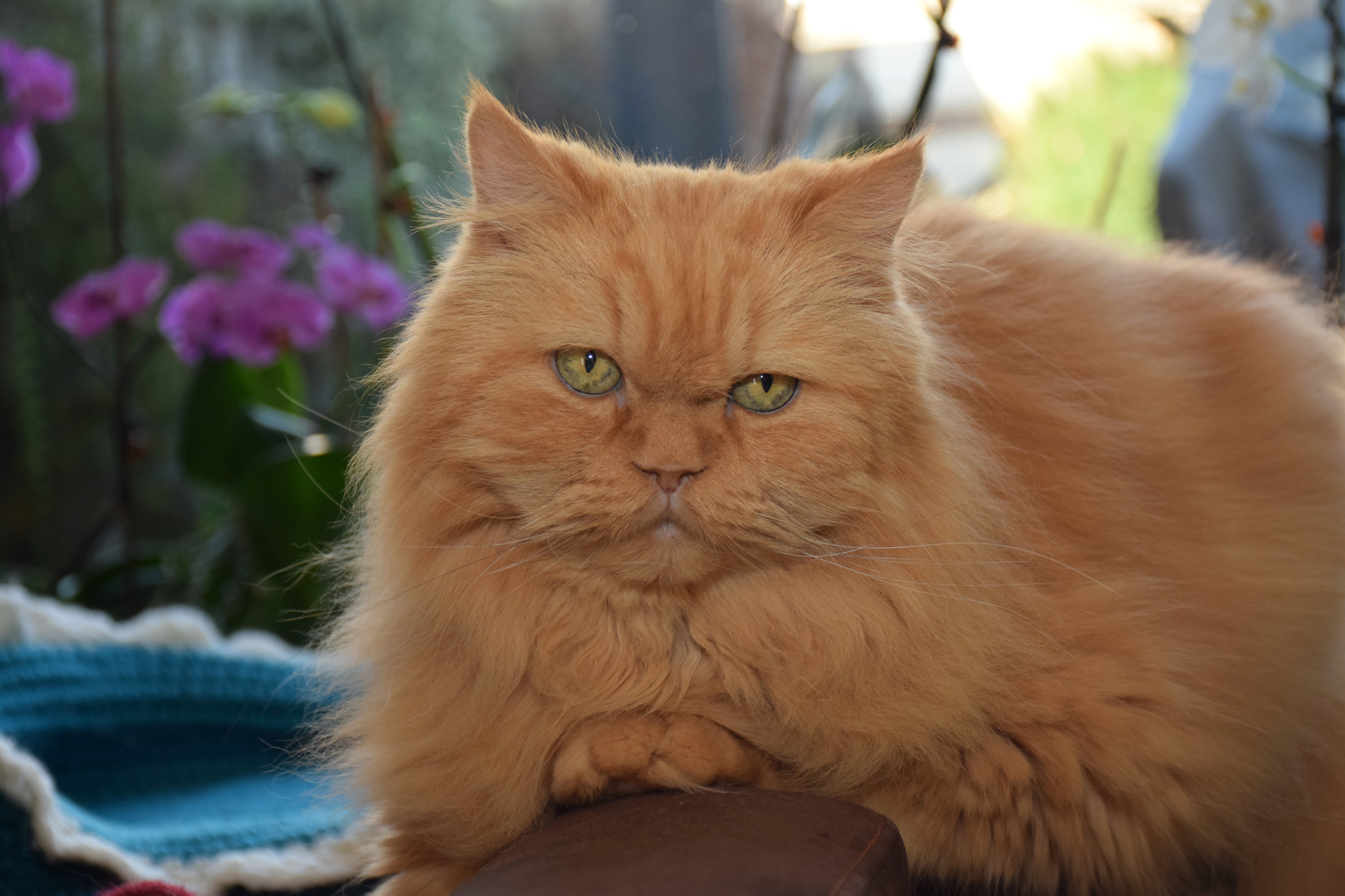 Hij is uitgegroeid tot een grote stoere kater met het verstandelijk vermogen van een kitten van een half jaar. Er zat geen kwaad in hem, maar je moest hem hem niet kammen, want dat vond hij niet leuk. Hij rolde zich dan helemaal op een bolletje en kon dan behoorlijk klagen. Maar met wat geduld en rustig toespreken, lukte het dan uiteindelijk wel om het te kammen, zeker naarmate hij ouder werd en hij besefte dat we het goed met hem voor hadden.