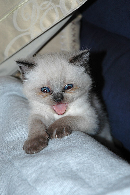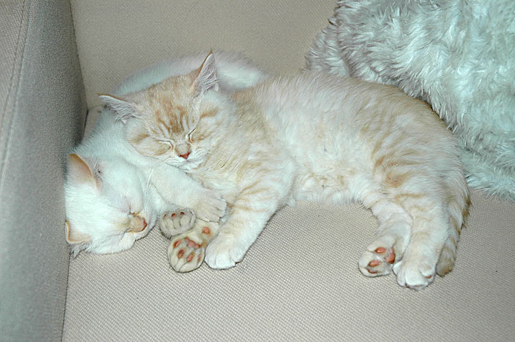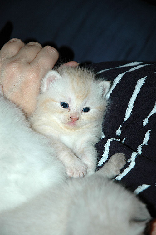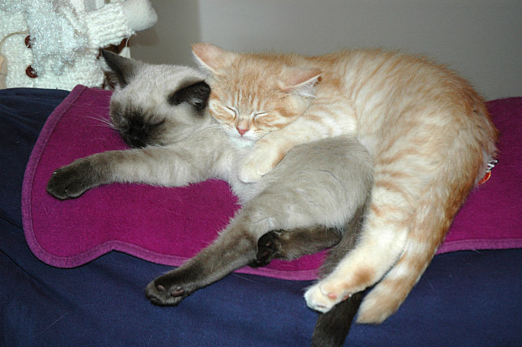 Op woensdag stond eindelijk de advertentie op kittentekoop.nl en nog dezelfde dag kregen we twee reacties, waarvan eentje van Annet, die vroeg of we een paar foto’s van Kyra en Taji wilden opsturen (de link naar deze site bleek niet goed te werken). Op donderdag belde Annet op of het goed was dat ze vrijdags een bezoekje mocht brengen. Natuurlijk was dat geen probleem! Na op haar gemak rond gekeken te hebben en met de kleintjes kennis gemaakt te hebben, ging Annet naar huis om te overleggen wat ze zouden doen. Zaterdagochtend belde ze al op: zij en haar vriend waren voor allebei gevallen en dus mogen Kyra en Taji vanaf begin januari Amsterdams gaan miauwen.