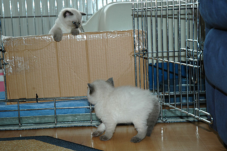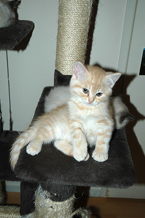 Alle kittens klimmen nu zelf uit de bench, als deze tenminste open staat, behalve Taji… hij kan het wel, maar heeft er geen zin in. Hij ligt graag in zijn uppie te tuttelen in de bench.