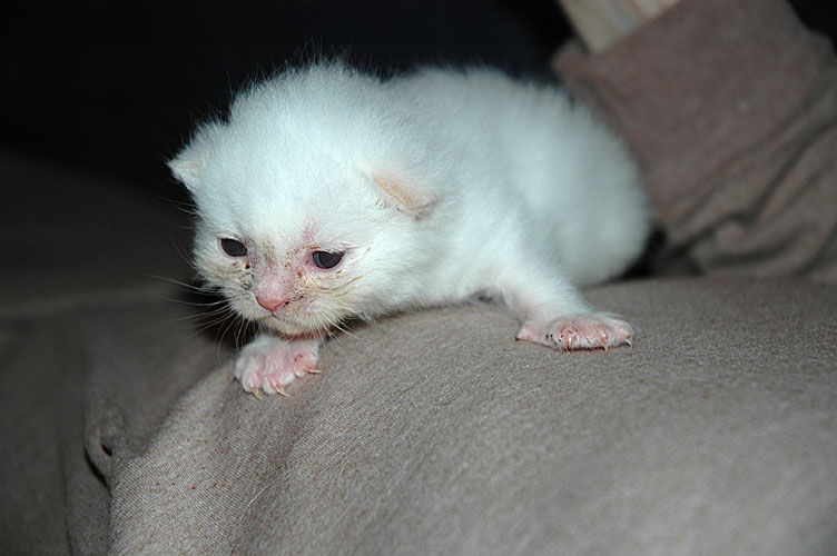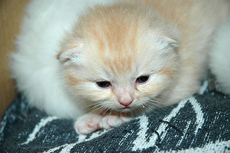 Inmiddels zijn alle oogjes open en de oortjes zijn helemaal opengevouwen. Het worden nu echte katjes! De tandjes komen nu ook door, dus tegen het einde van de week wordt het tartaar eten.