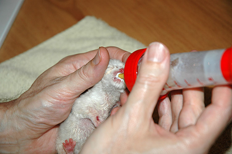 Ik weet bijna niet waar ik moet beginnen. Frodo is als eerste uit de doos getuimeld. Ik was toevallig aan het filmen dat Rob aan het “flessen” was toen hij op de achtergrond over de rand van de doos klom. Na wat twijfel en wat gedoe was het dan ineens zover. Plop voorover op zijn snuit. Echt geweldig. Toen hij het spelletje kende was hij niet meer te houden. Je kon hem terug in de doos zetten, maar binnen een paar seconden was hij er weer uit! Om bij Frodo te blijven… hij zorgt toch wel voor de meest lachbuien hier. Hij is zo brutaal en zo vindingrijk. De fles, nee, dat vond hij maar niets om van te drinken, dat is toch niet stoer?! Nee, hij wilde per se uit een bakje drinken en dat ging hem goed af. Een dag of wat later had hij zo’n honger dat hij toch de fles wilde, maar nee, niet bij Rob in zijn hand liggend, nee, hij moest op zijn buik, fles in zijn mond en maar drinken. In een mum had hij zijn fles leeg! Dat hij daarbij Rob zijn handen behoorlijk te pakken had gehad met die scherpe nageltjes van hem, boeide hem niet.