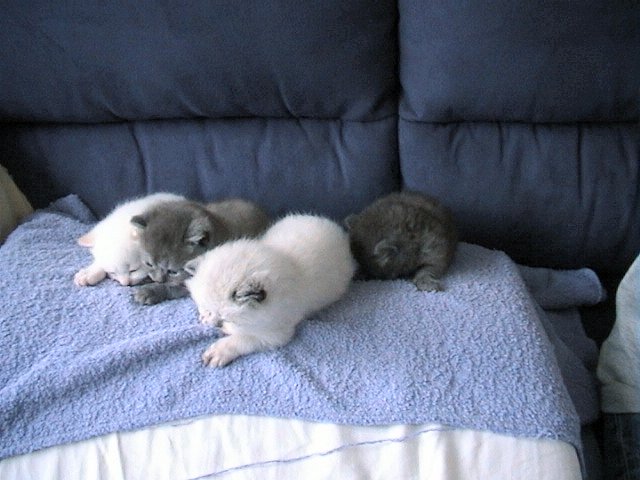 Alle vier de kittens groeiden als kool en na verloop van een aantal weken werden de kleuren goed zichtbaar: