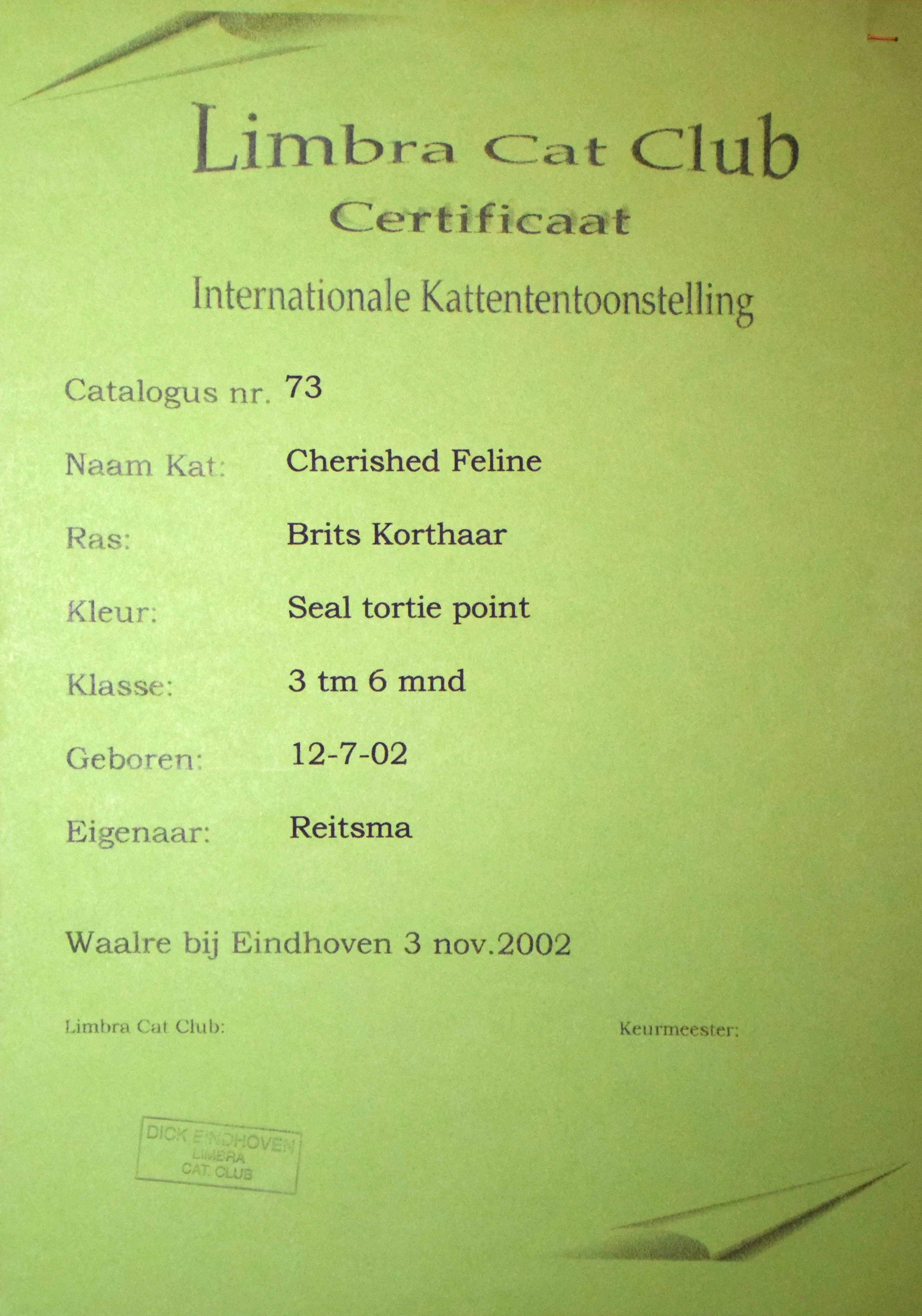 Foto’s en teksten: eigendom en copyright Cattery Cherished.