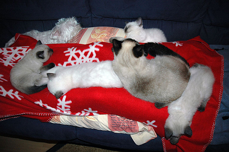 Om 00:15 uur (dus 5 december) kreeg ze persweeën en om 00:55 uur werd het eerste katertje geboren. Dit werd al snel gevolgd door een tweede katertje. Toen was het even rustig en om 02:40 uur kwam de derde, dit keer een poesje, wat snel weer gevolgd werd door een vierde kitten, ook een poesje.