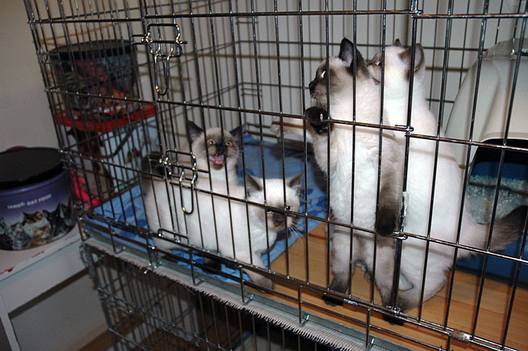 Het is tijd om naar de kattenkamer te verhuizen. Alles wordt boven ingericht. Dit houdt voor Bangles in dat hij ’s nachts gezelschap krijgt van Feline. Beiden zijn op dieet en moeten dus ’s nachts apart gezet worden. Zo komt de bovenste bench vrij en kunnen Laleh en de kleintjes gebruik maken van de bovenste bench. Dit werkt goed.