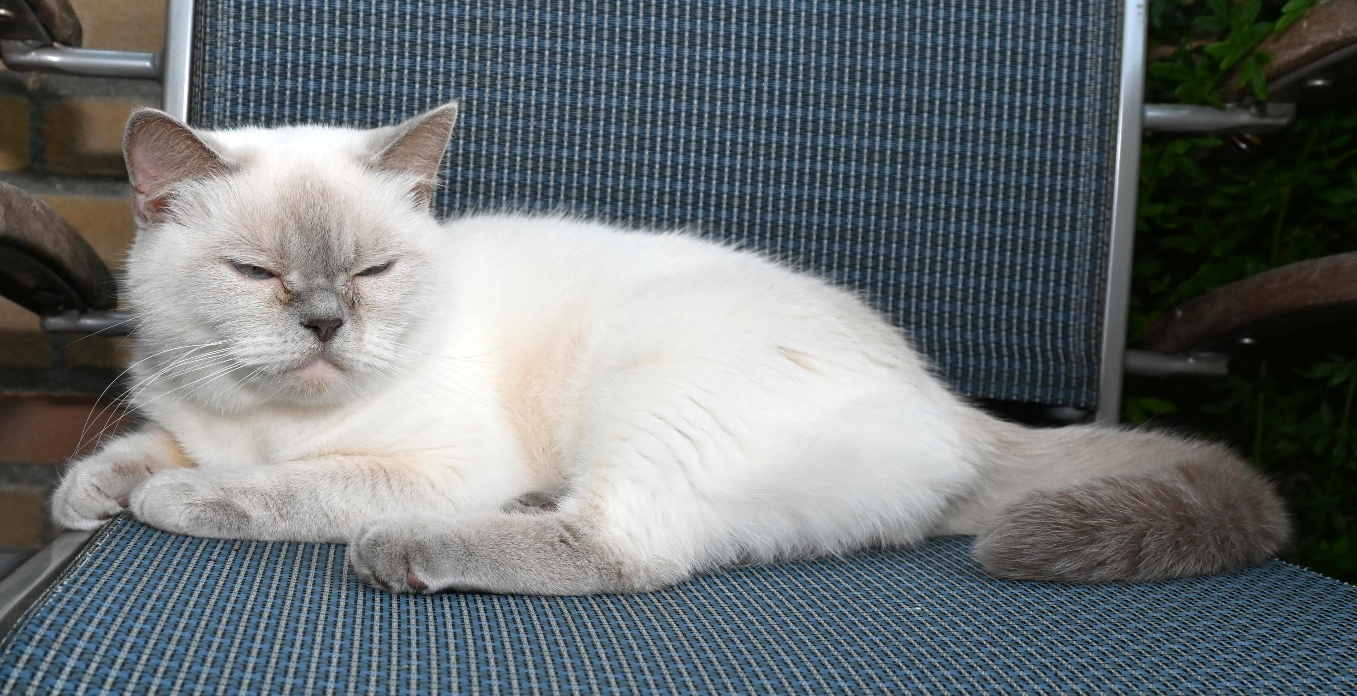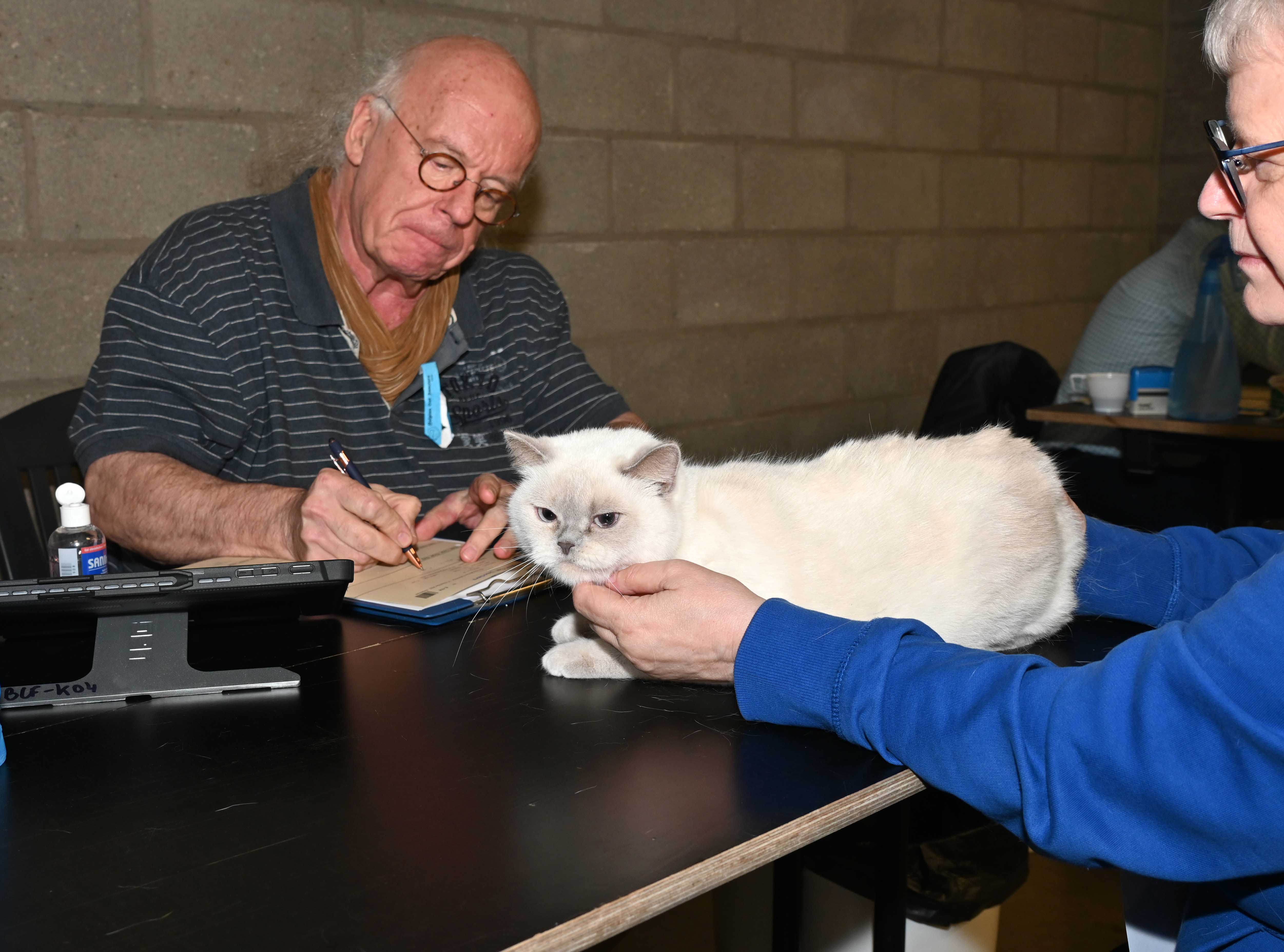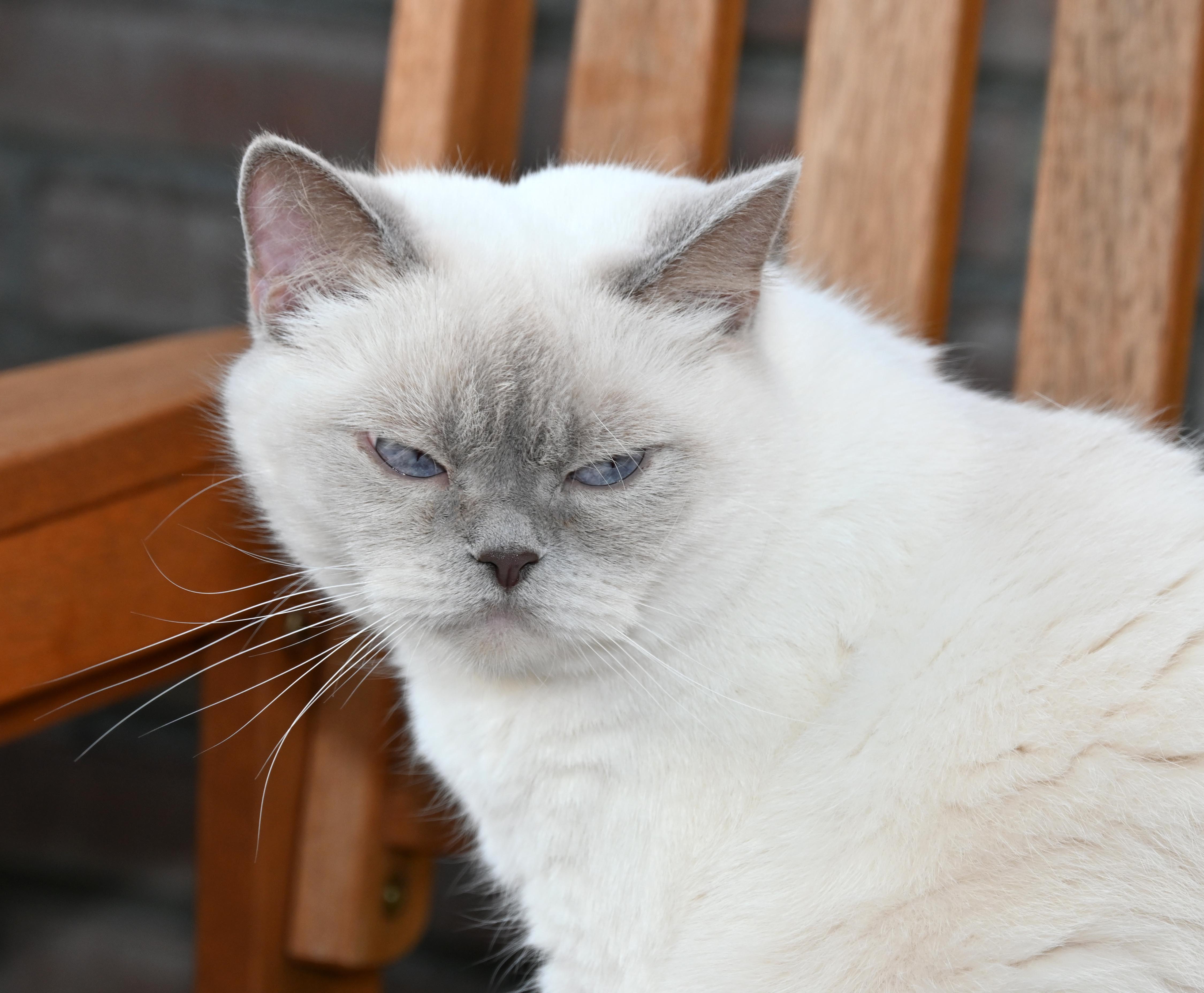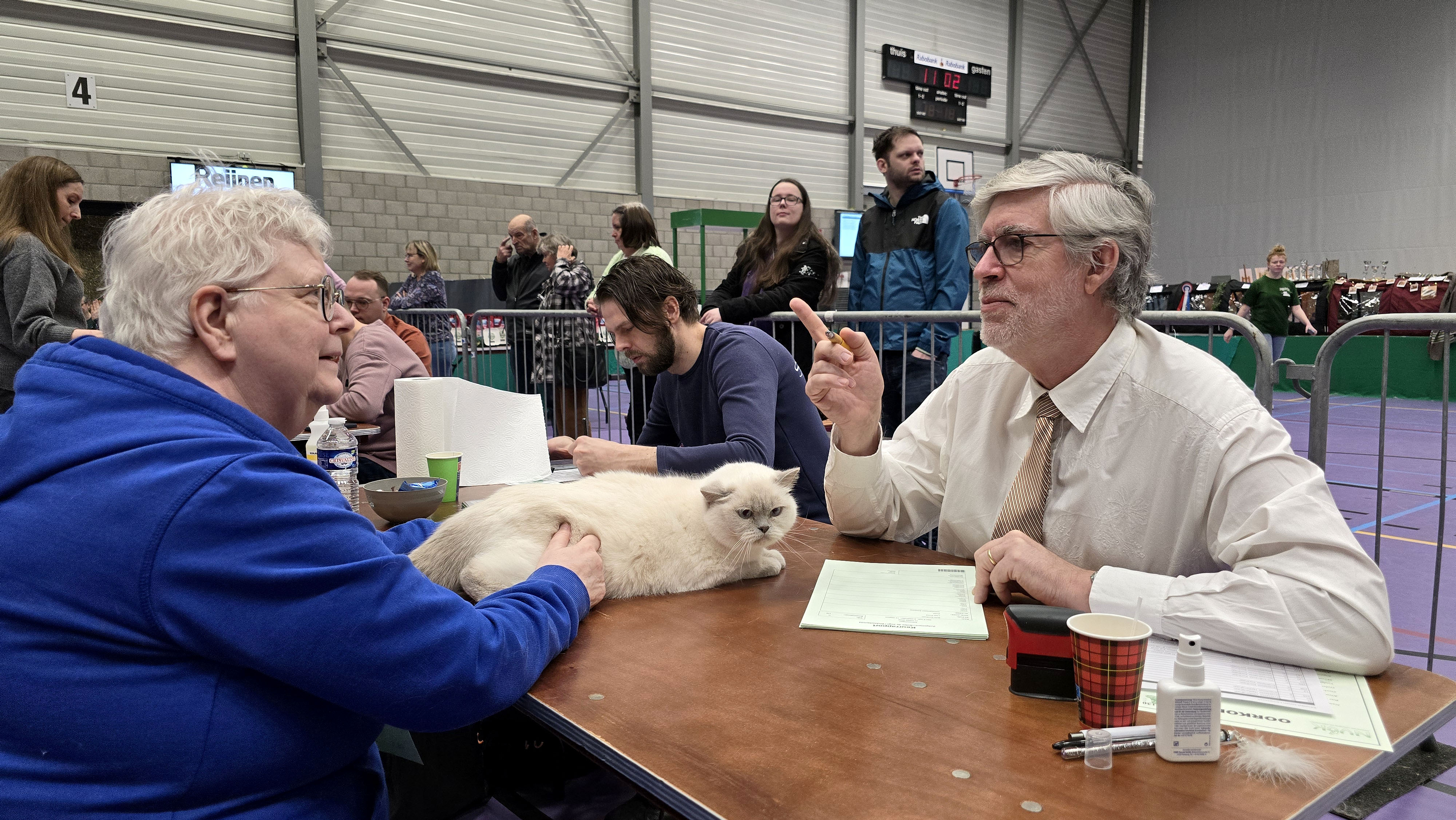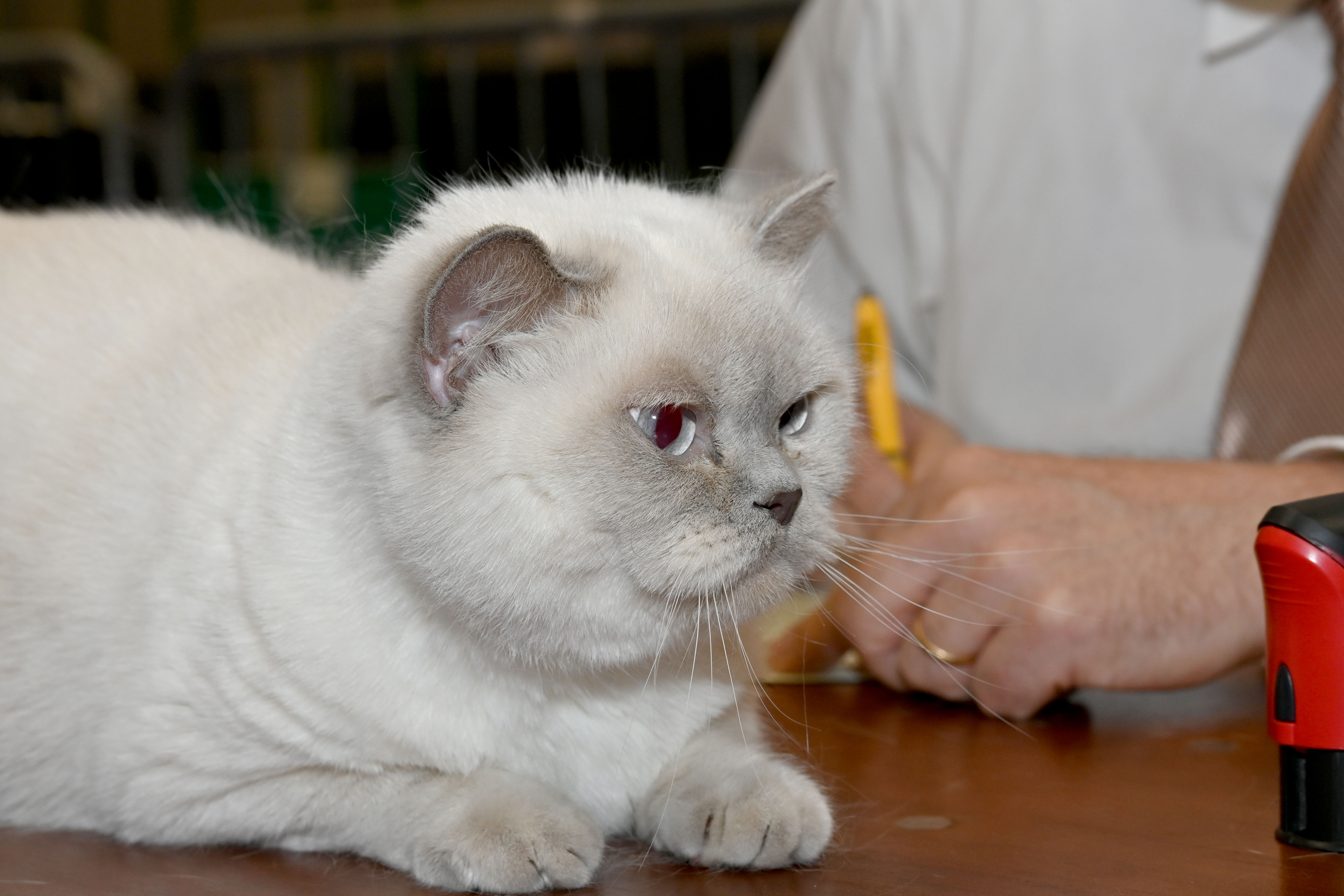 Tijdens de wereldshow van Limbra Cat Club, waar ze haar wereldpunt moest halen, mocht ze voor haar keuring op de keurtafel van Johan Lamprecht plaatsnemen. Ik vertelde Johan dat ze een verbale Drama Queen was, waarop hij me vroeg of ik wist waar de colourpoint vandaan kwam. Natuurlijk wist ik dat, van de Siamezen. Daarna vroeg hij me wat de Siamezen zijn… uhm… luidruchtig? Precies. Hij vertelde dat hij op shows vaak colourpoints meemaakte die verbaal waren, waardoor hij vermoedt dat het verbale met de point is meegelift. Dat zou veel verklaren… 🙂