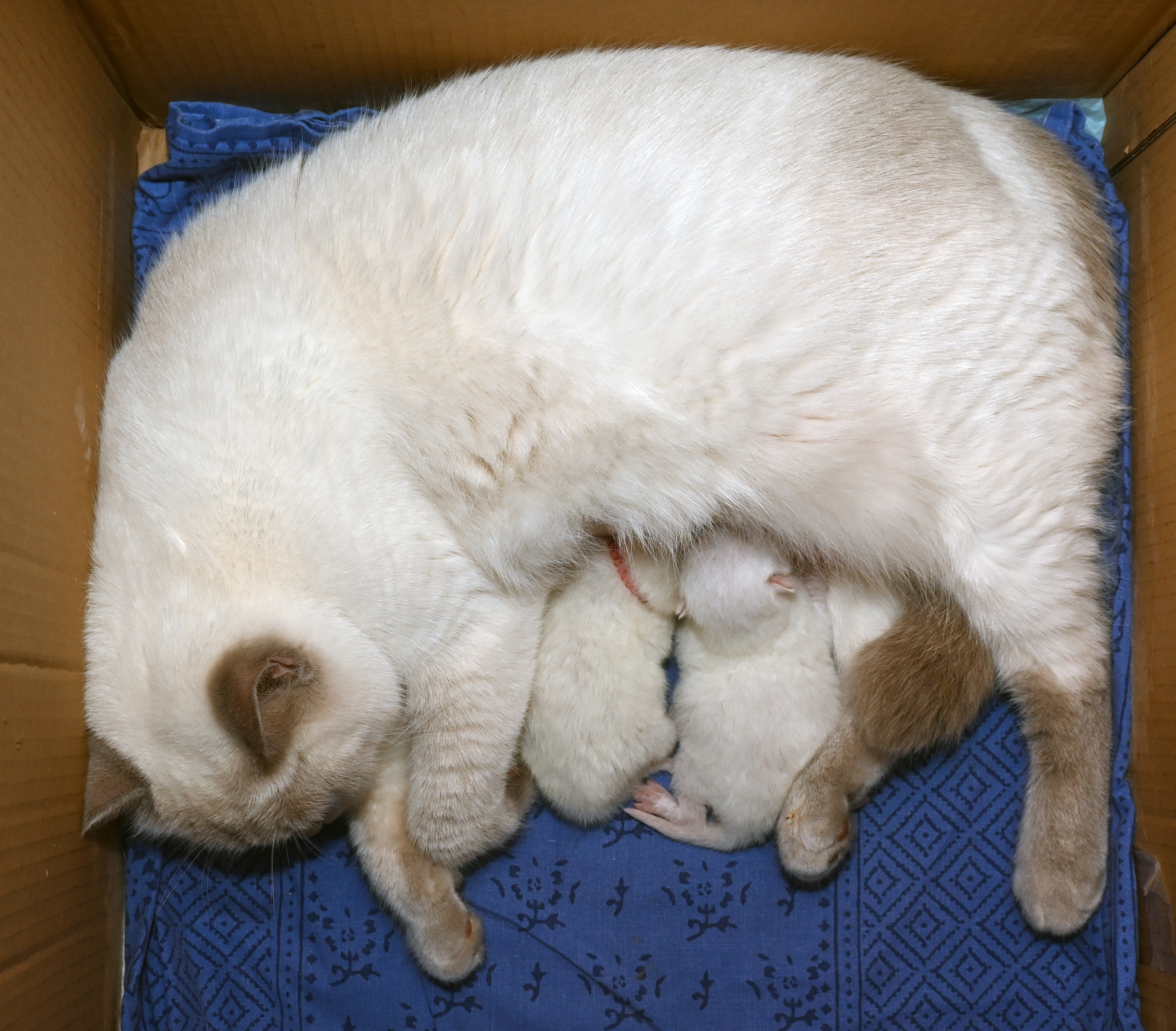 In 2021 mocht ze naar de kater en wat waren we blij toen ze zwanger bleek te zijn. Ze kreeg twee prachtige kittens, een poesje en een katertje, waar ze helemaal van in de wolken was.