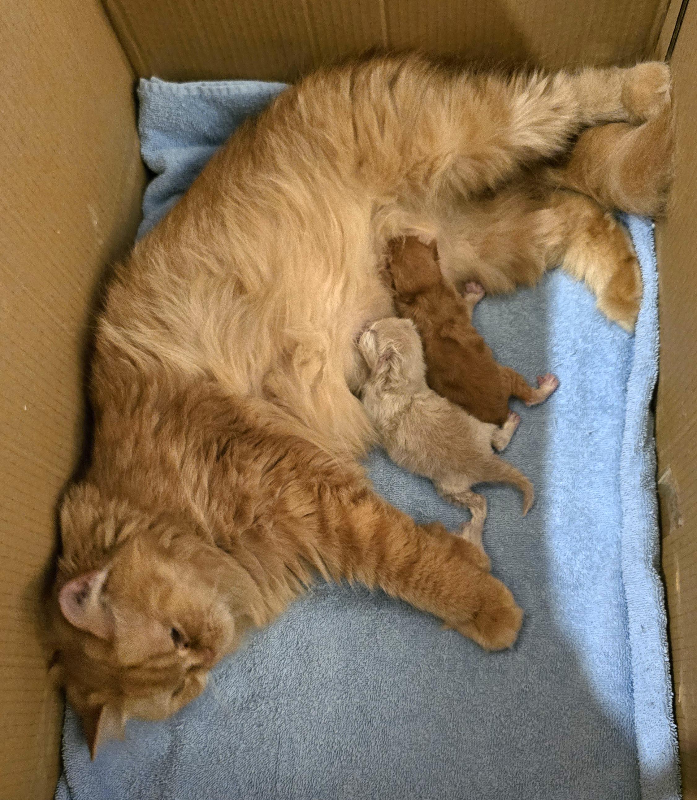 Ik had een bevriende fokker hier al eerder over verteld, dus de dag na Banjer zijn overlijden stuurde ik haar een berichtje met de vraag of ik voor de toekomst een katertje bij haar mocht reserveren. Dat mocht, maar ze vertelde ons ook dat er bij een andere fokker de afgelopen nacht een nestje rode katjes geboren was en we misschien met haar contact op konden nemen. Voor mij ging dat te snel, Banjer was nog niet eens begraven. Rob echter had zoiets van het duurt nog een paar maanden voordat dat katje mag verhuizen, dus waarom geen contact opnemen. Mijn gevoel zei nog steeds nee, mijn hart lag nog veel teveel bij het afscheid van Banjer.