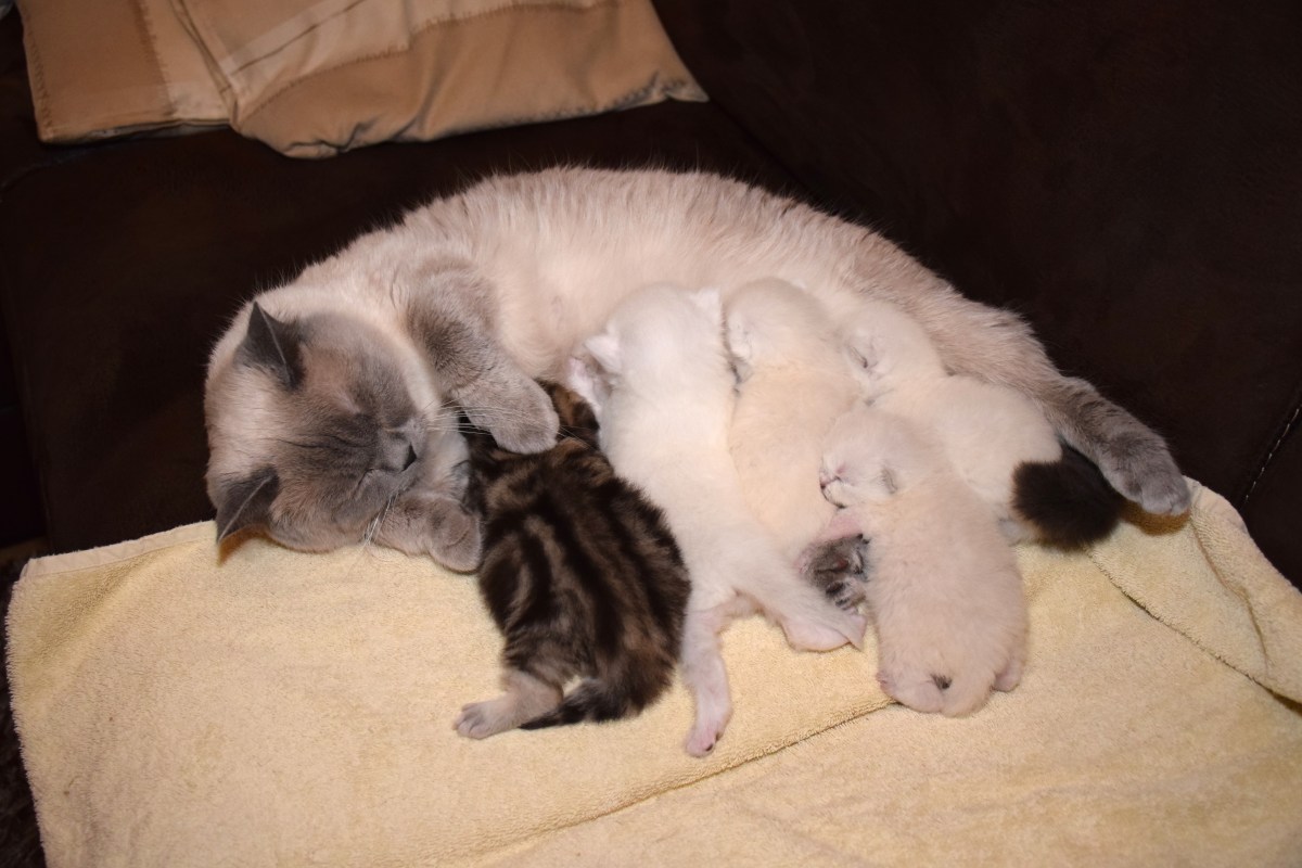 WK01_2016-04-19_120 Gezamenlijk aan de melkbar: Aislinn, Galen, Teigen en Qwin. Elsha wacht op haar beurt in de tweede rij. Foto’s en teksten: eigendom en copyright Cattery Cherished.