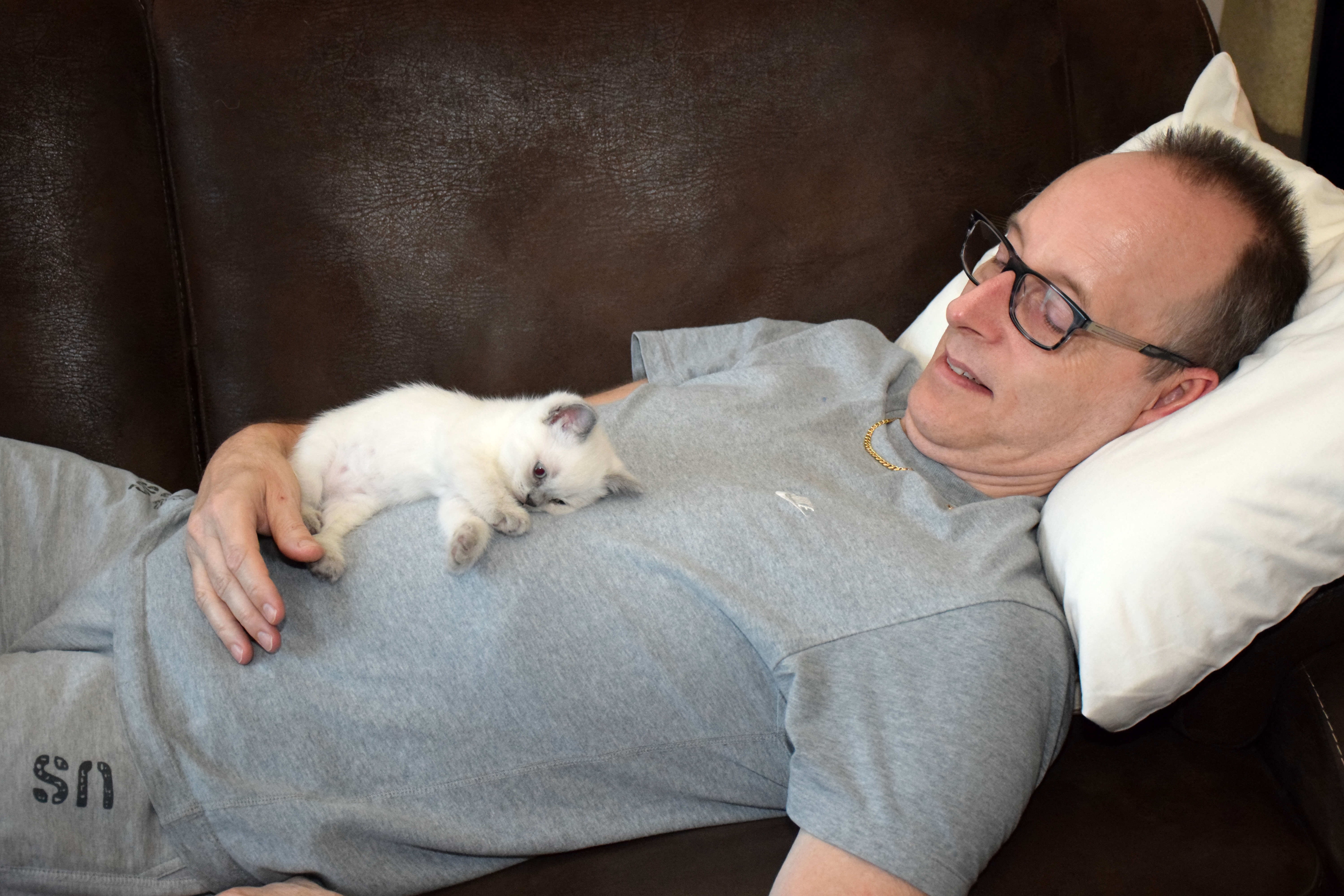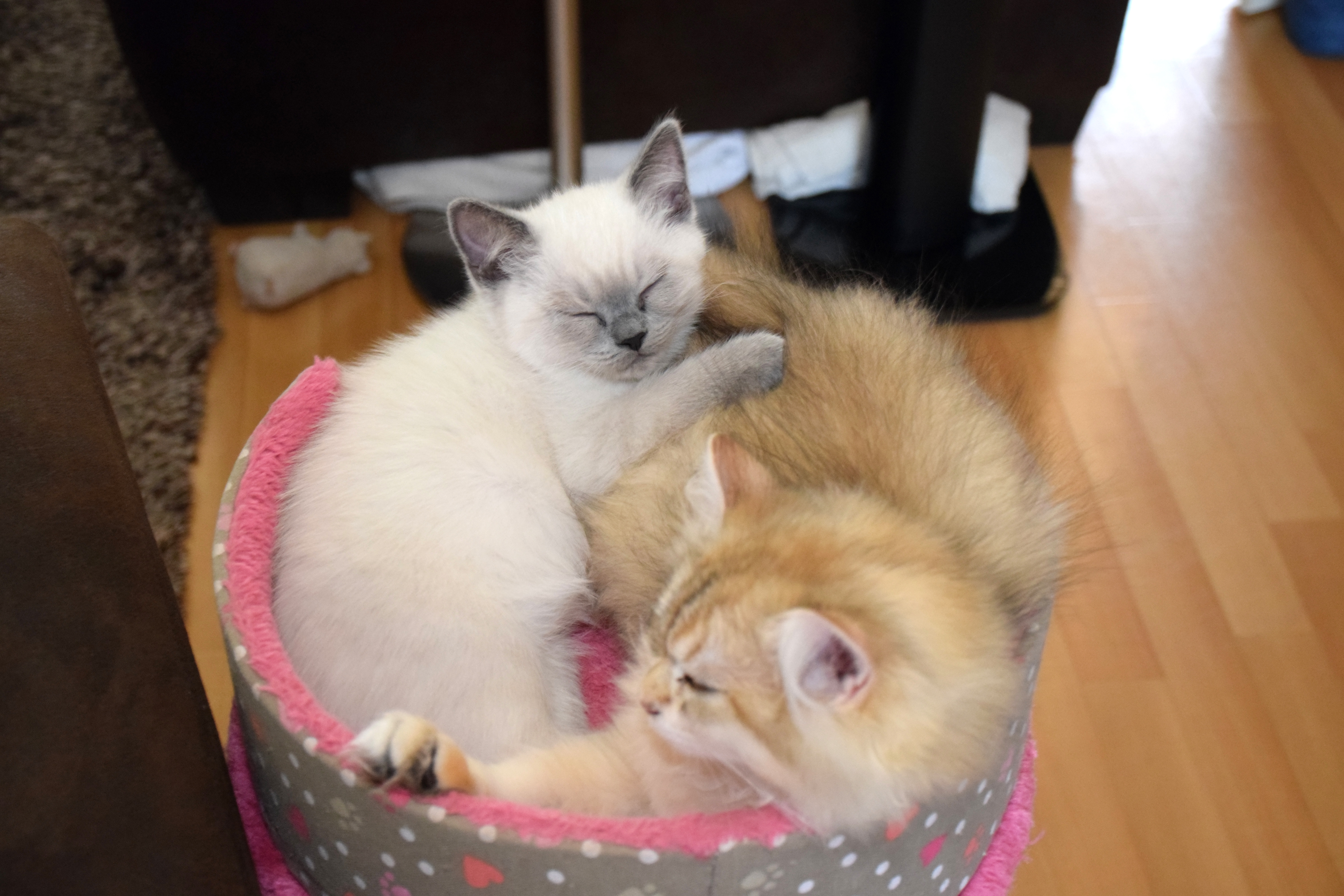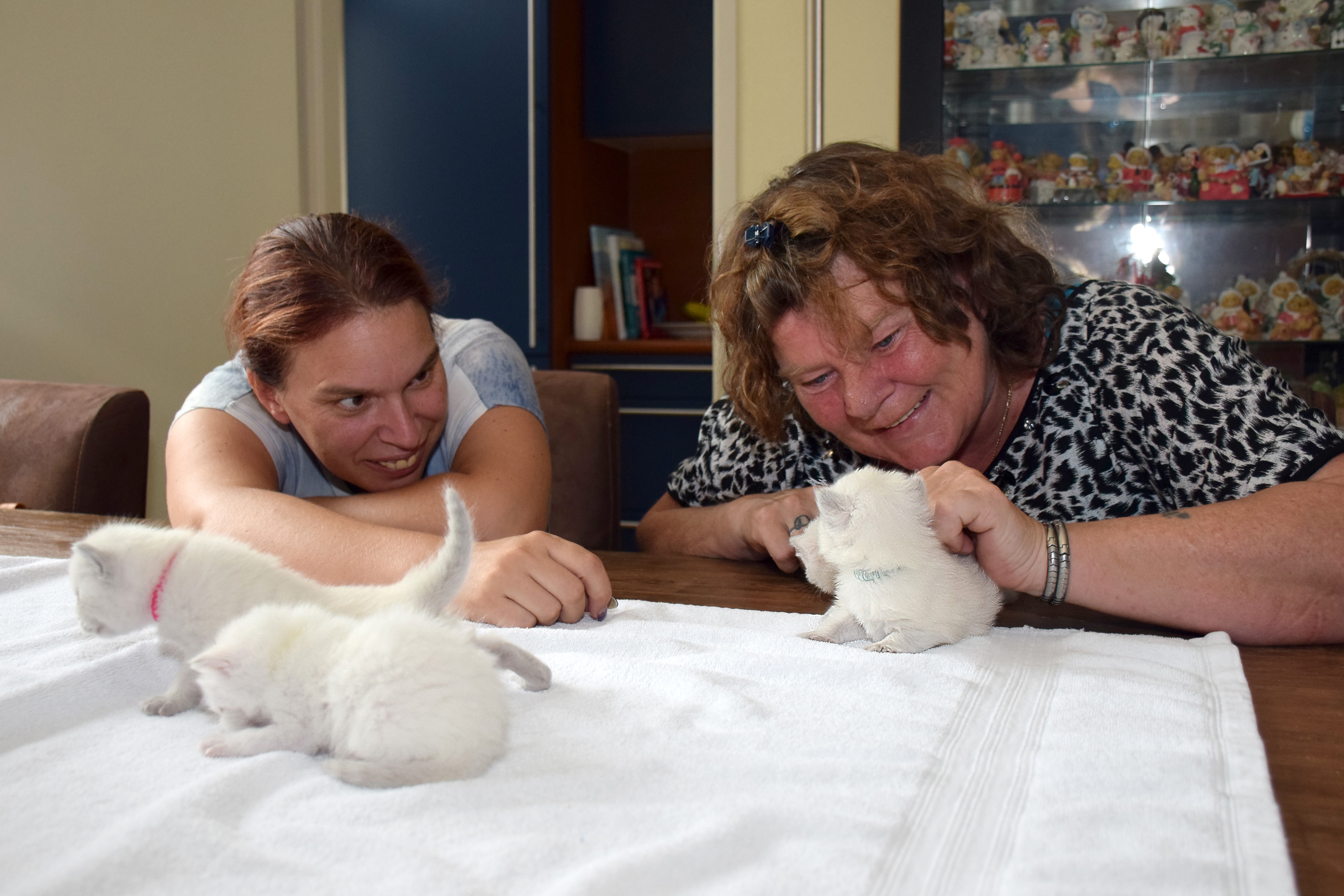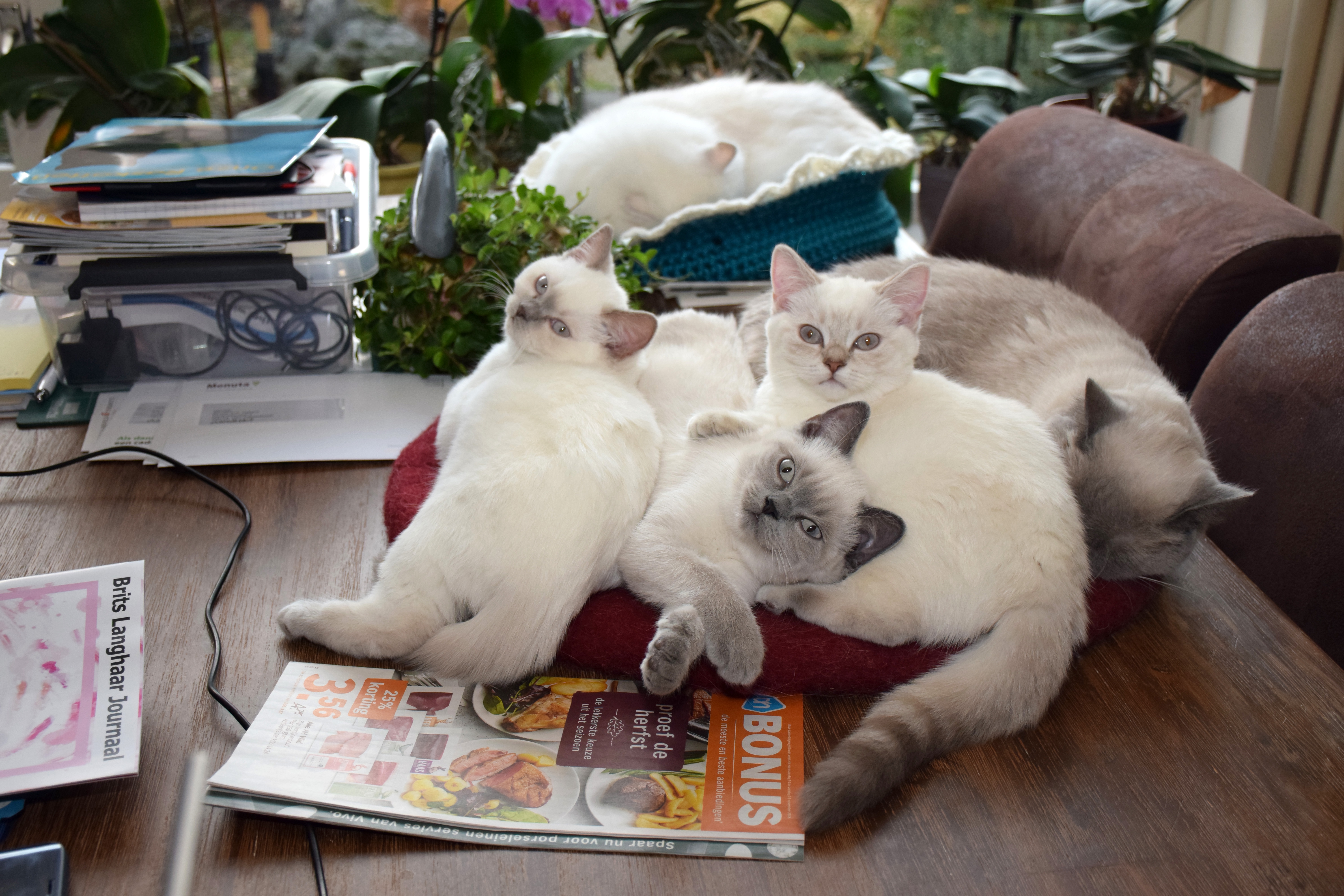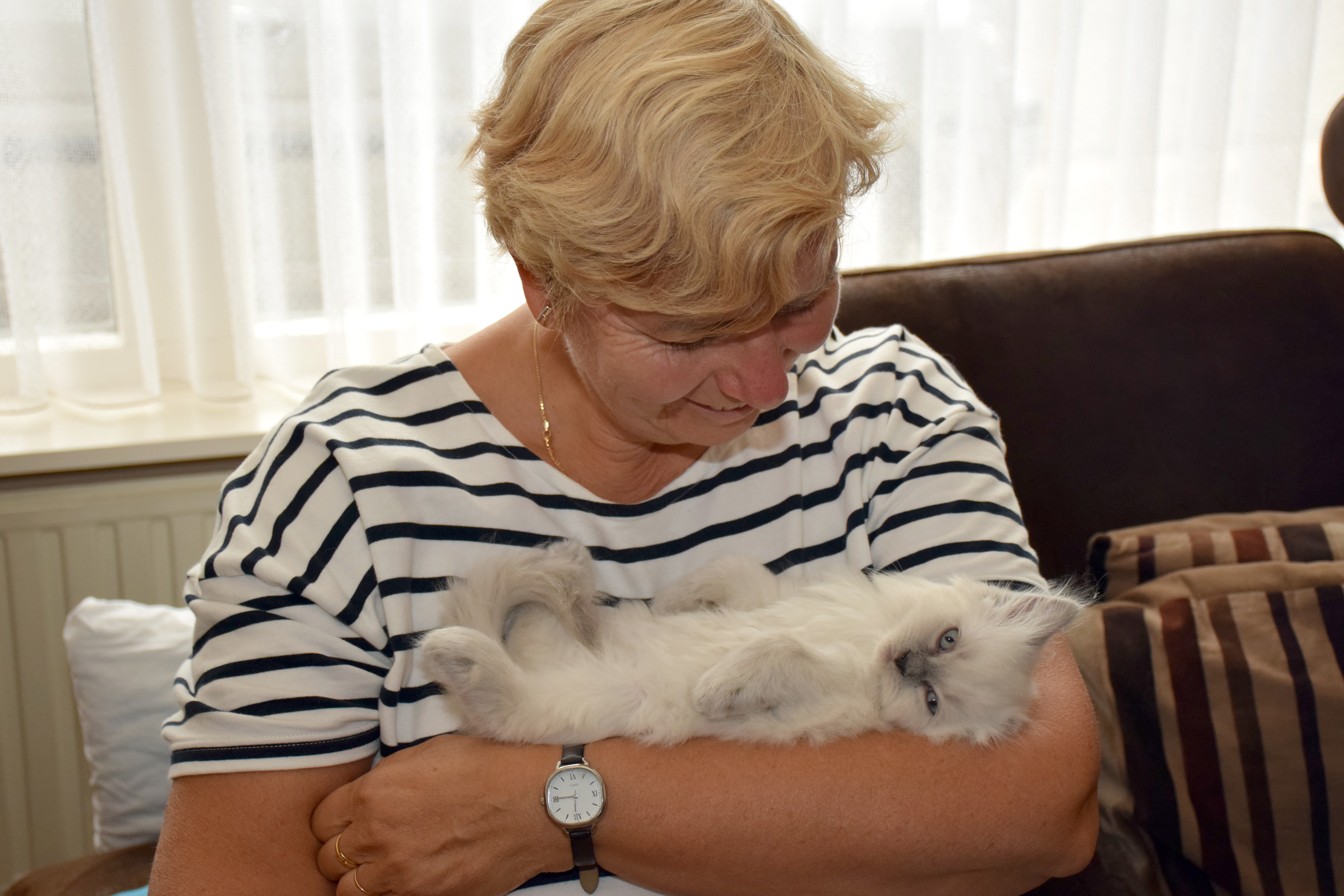 Maar al met al blijft het genieten, want oh wat is het leuk als ze zelf even bij je komen liggen voor een kroeltje. Je pakt ze op en ze beginnen meteen te spinnen.