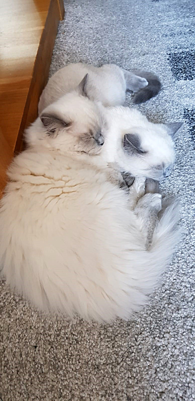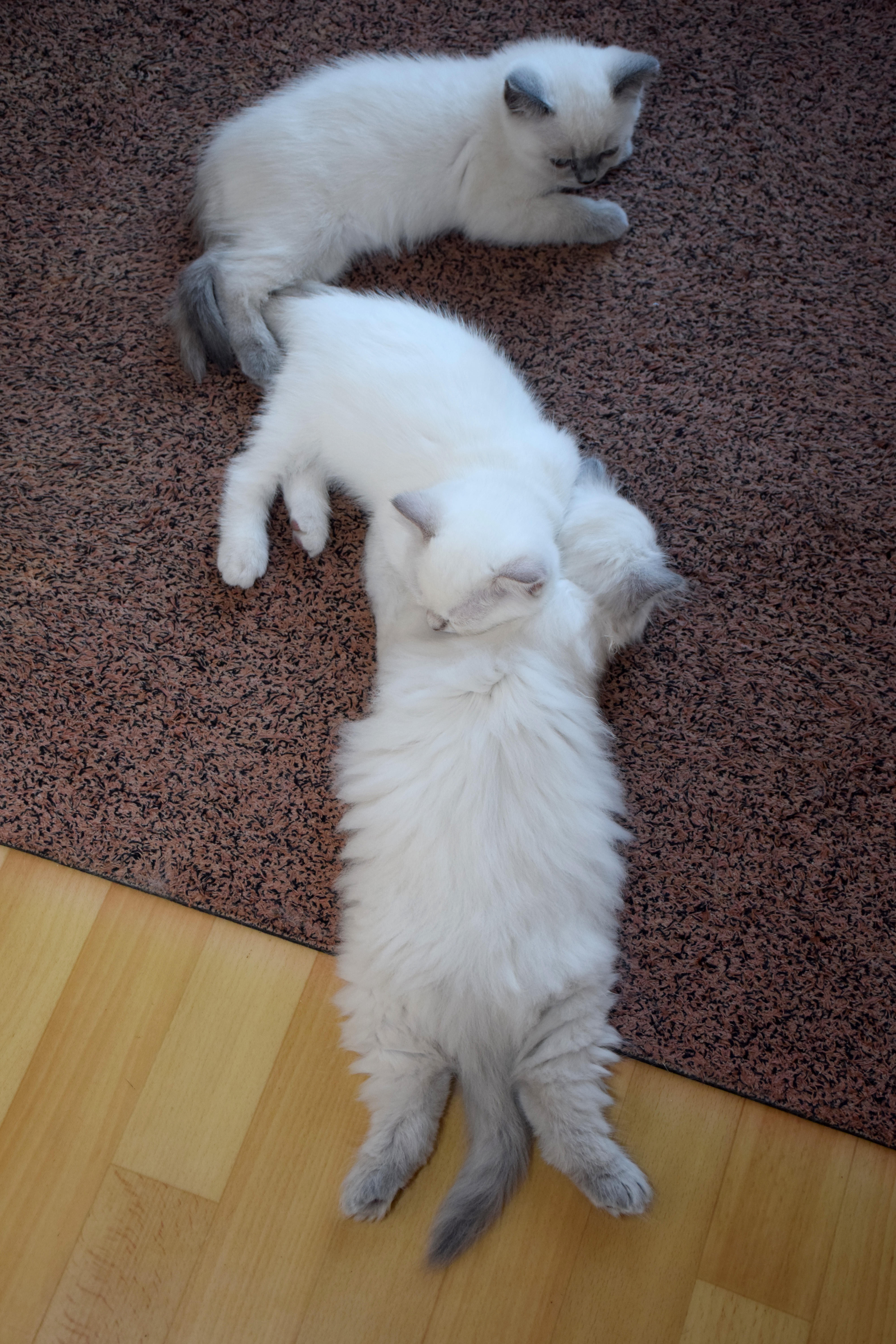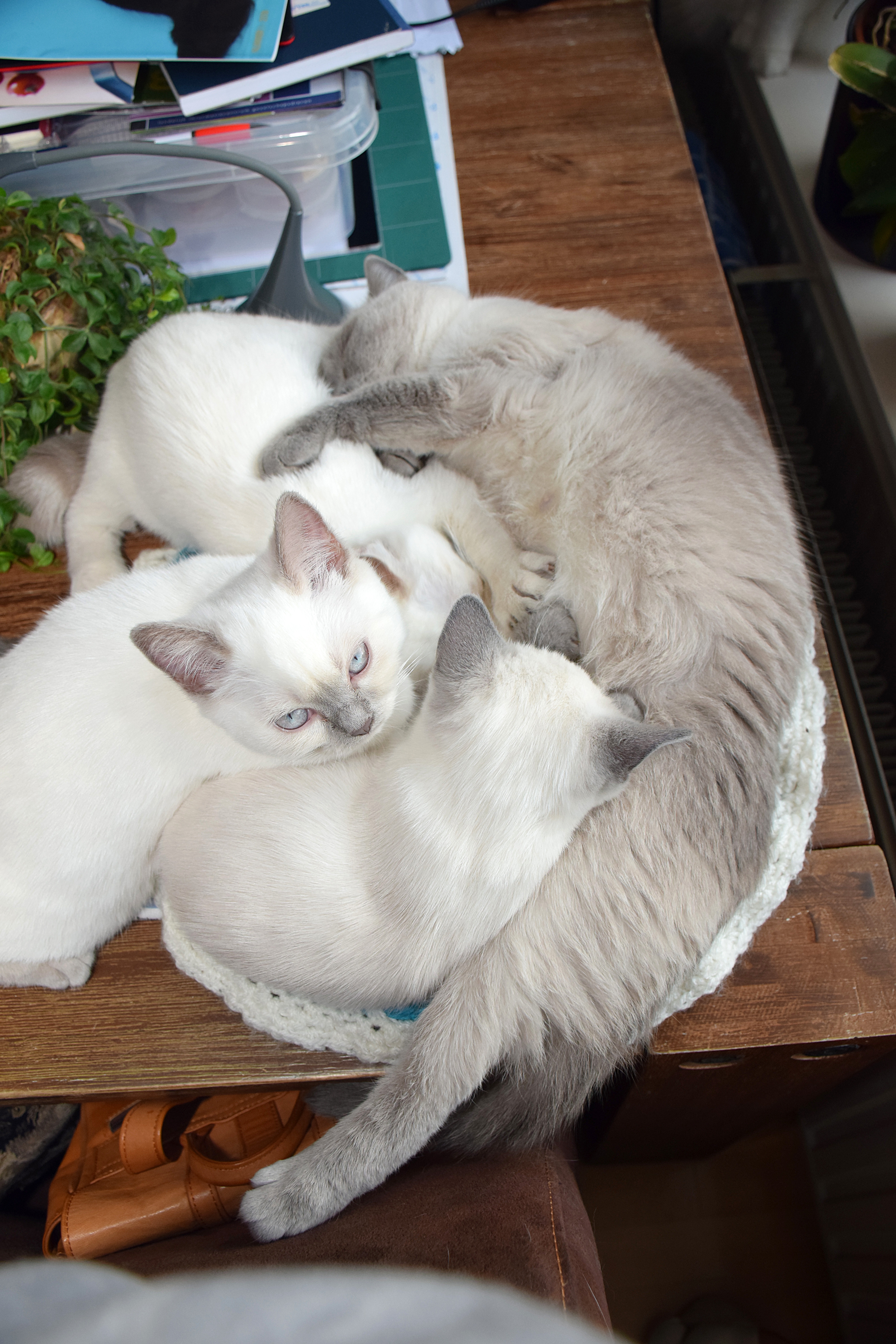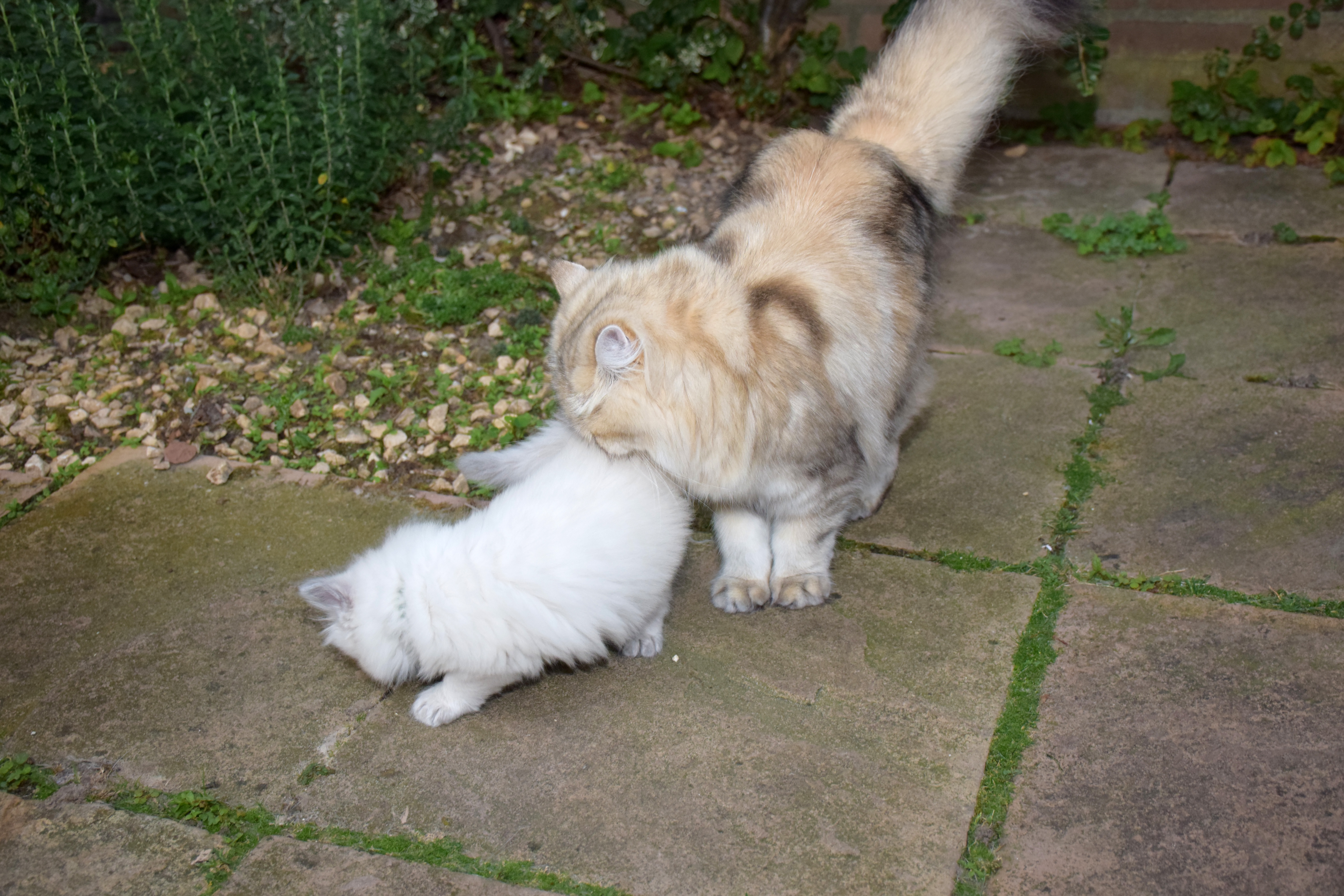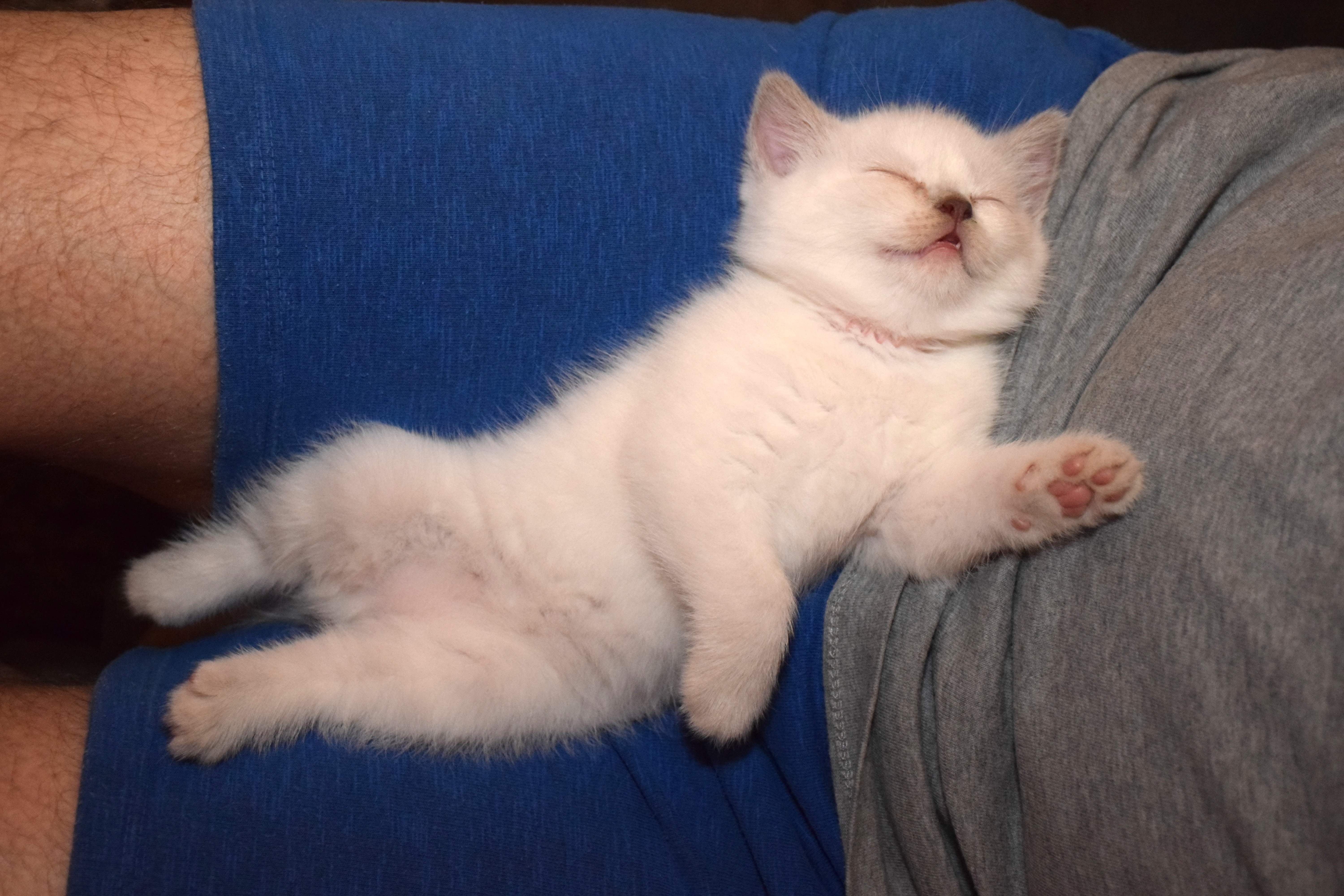 Maar al met al blijft het genieten, want oh wat is het leuk als ze zelf even bij je komen liggen voor een kroeltje. Je pakt ze op en ze beginnen meteen te spinnen.