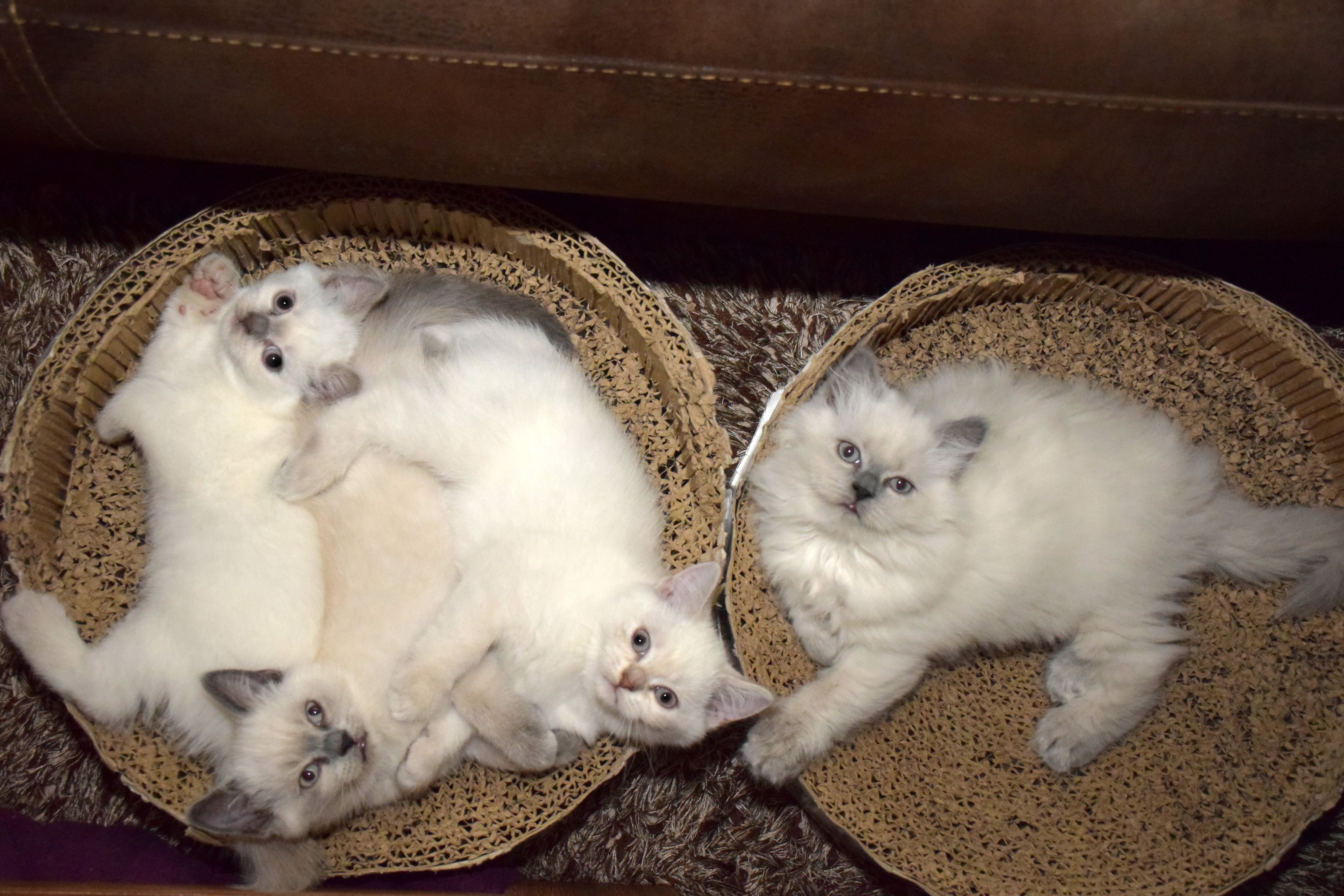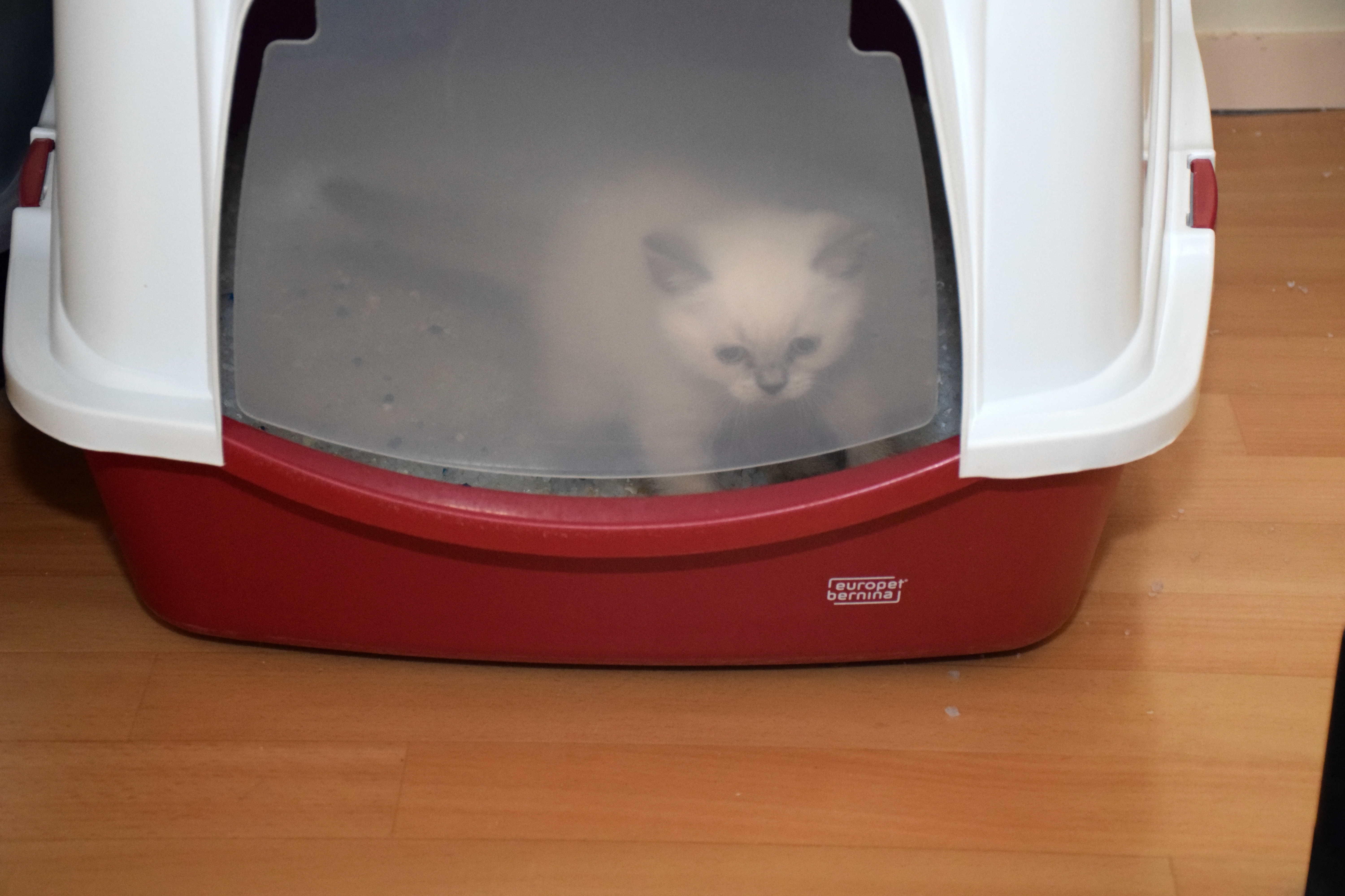 De meesten van de kittens van Aislinn zijn al op bezoek geweest. Gaan vaak even in de doos zitten of slapen, gebruiken de kattenbak of eten of drinken een hapje van Mili haar voer.