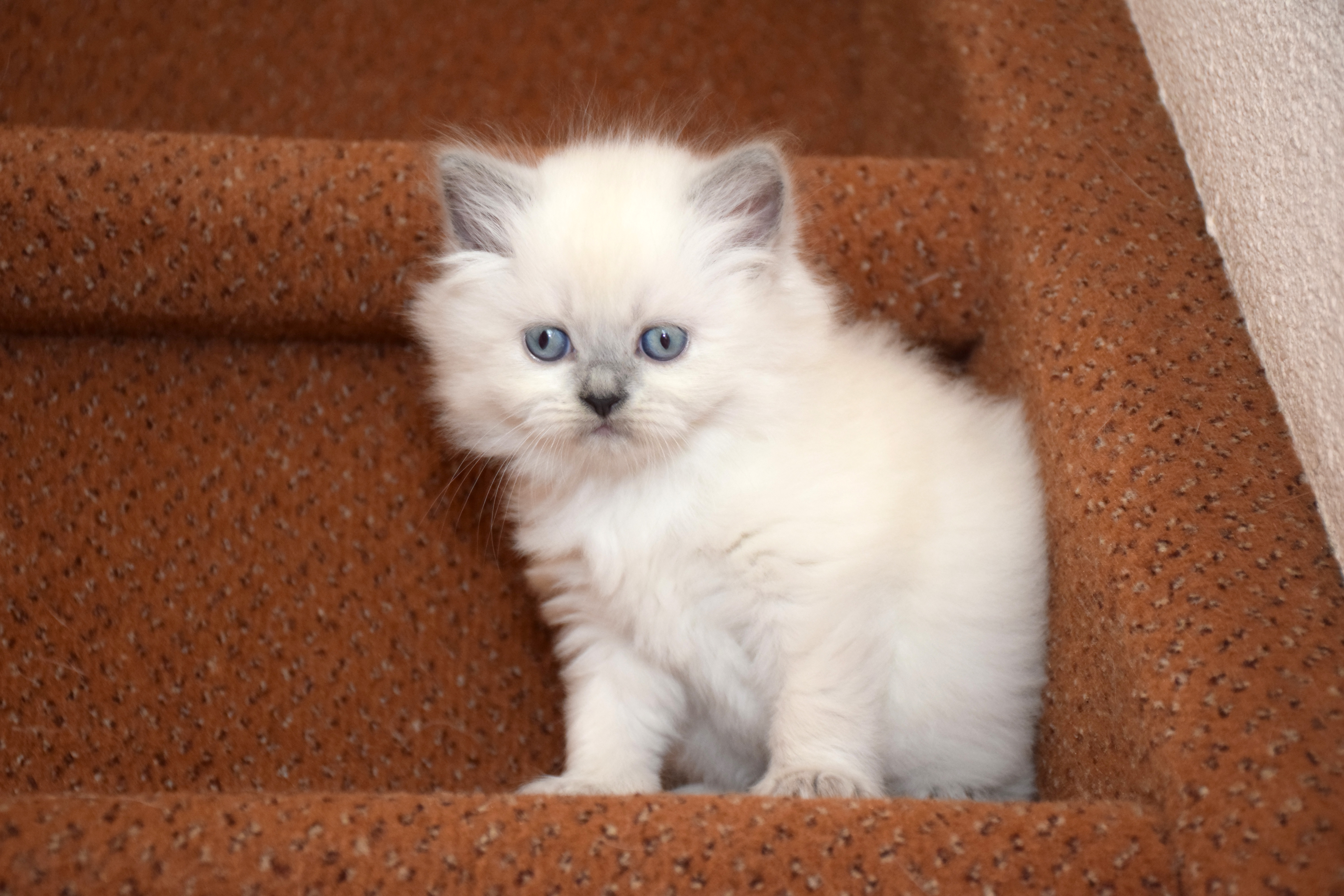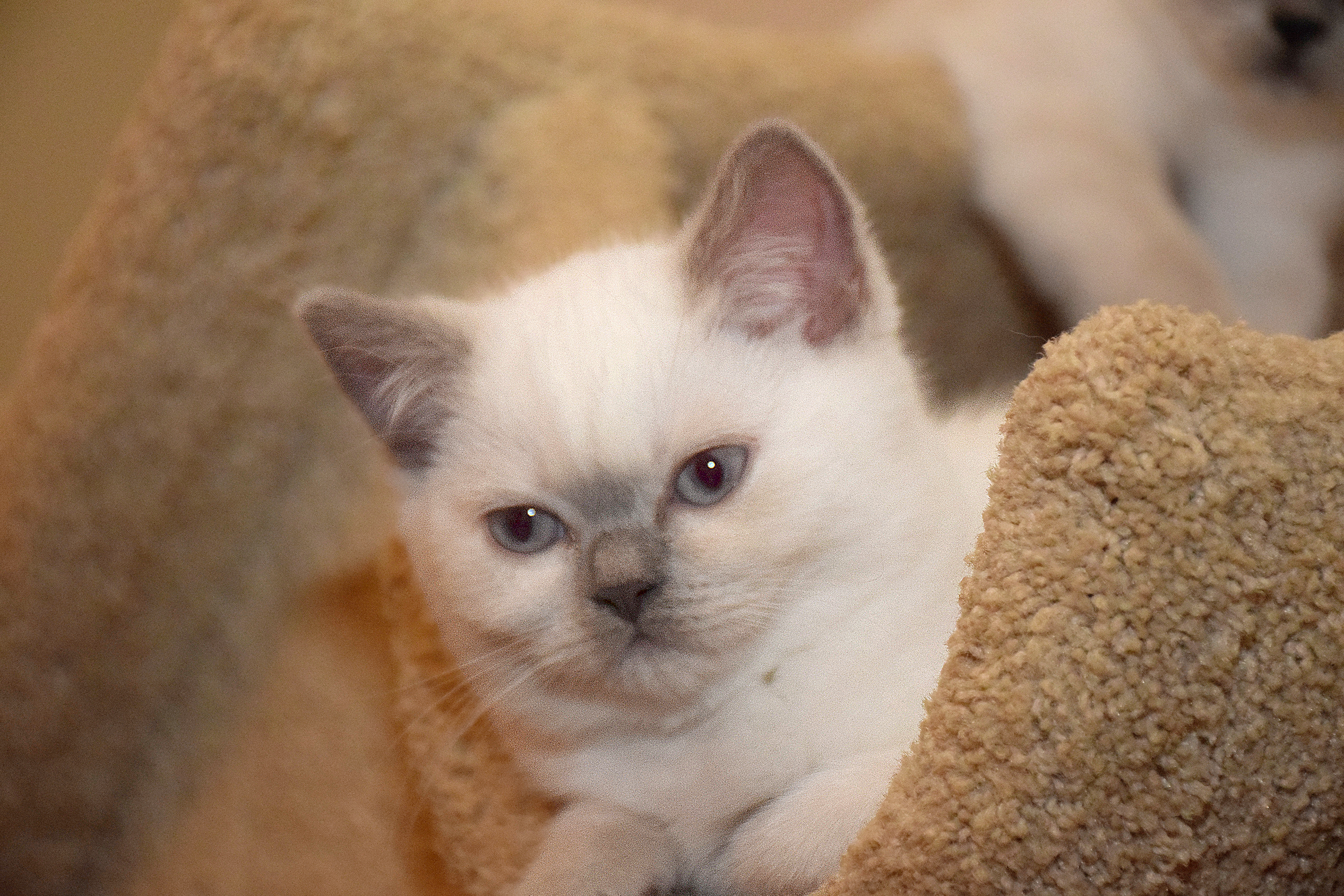 Kleine kittens worden groot en naarmate de tijd vordert zie je ook dat ze steeds meer contact met je zoeken. Echt, ze komen naar je toe, gaan bij je liggen of gaan ergens op een trui of vest van je liggen, om zo lekker bij je geur in de buurt te zijn. Heerlijk. Myron (Micky) betrappen we erop dat hij telkens als je hem oppakt een beetje bang is, hij heeft een beetje hoogtevrees, maar dat zal wel beter worden als hij ouder wordt. Macey weet inmiddels ook dat ze straks Coco gaat heten, wat een leuke naam… daar staan we helemaal achter.