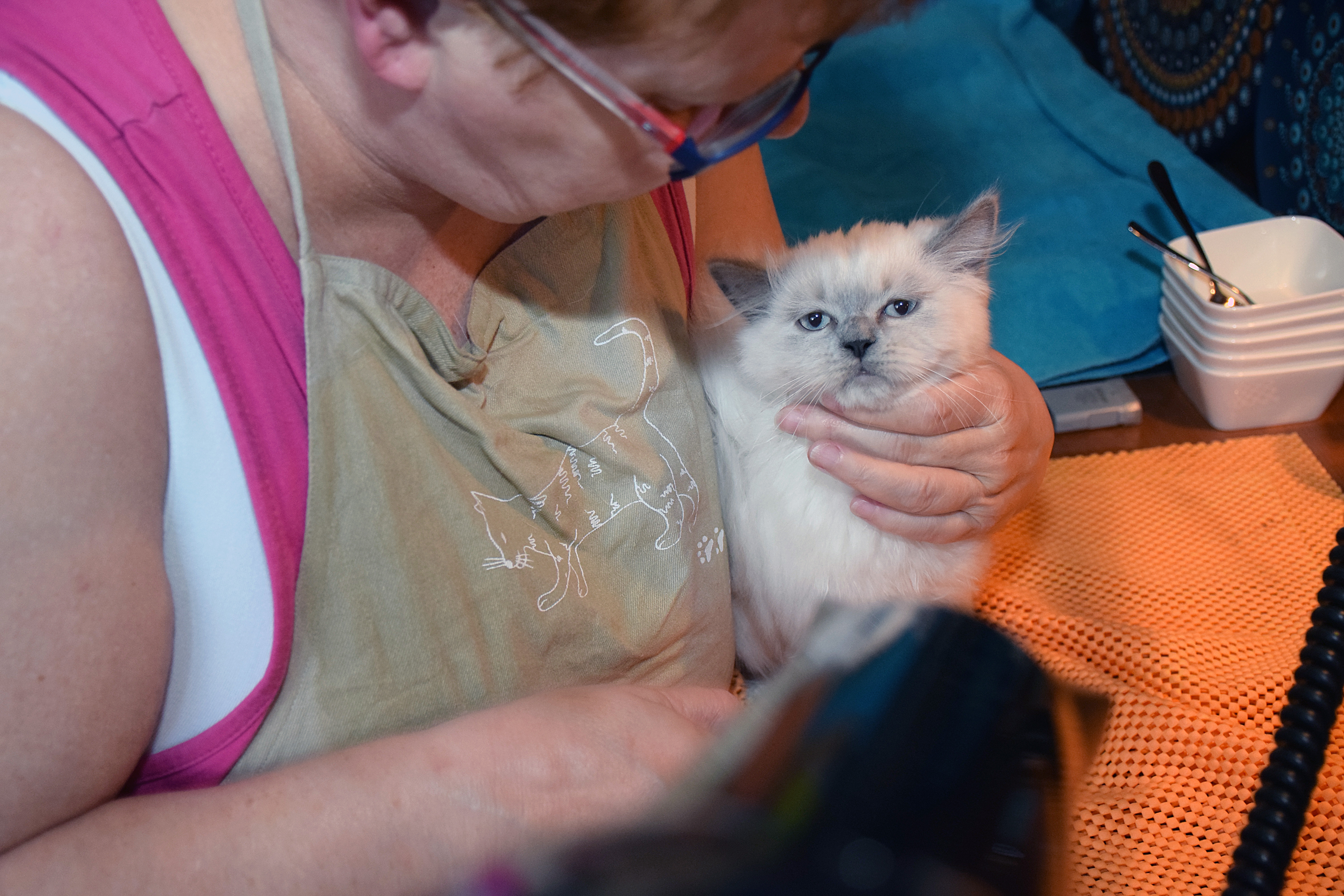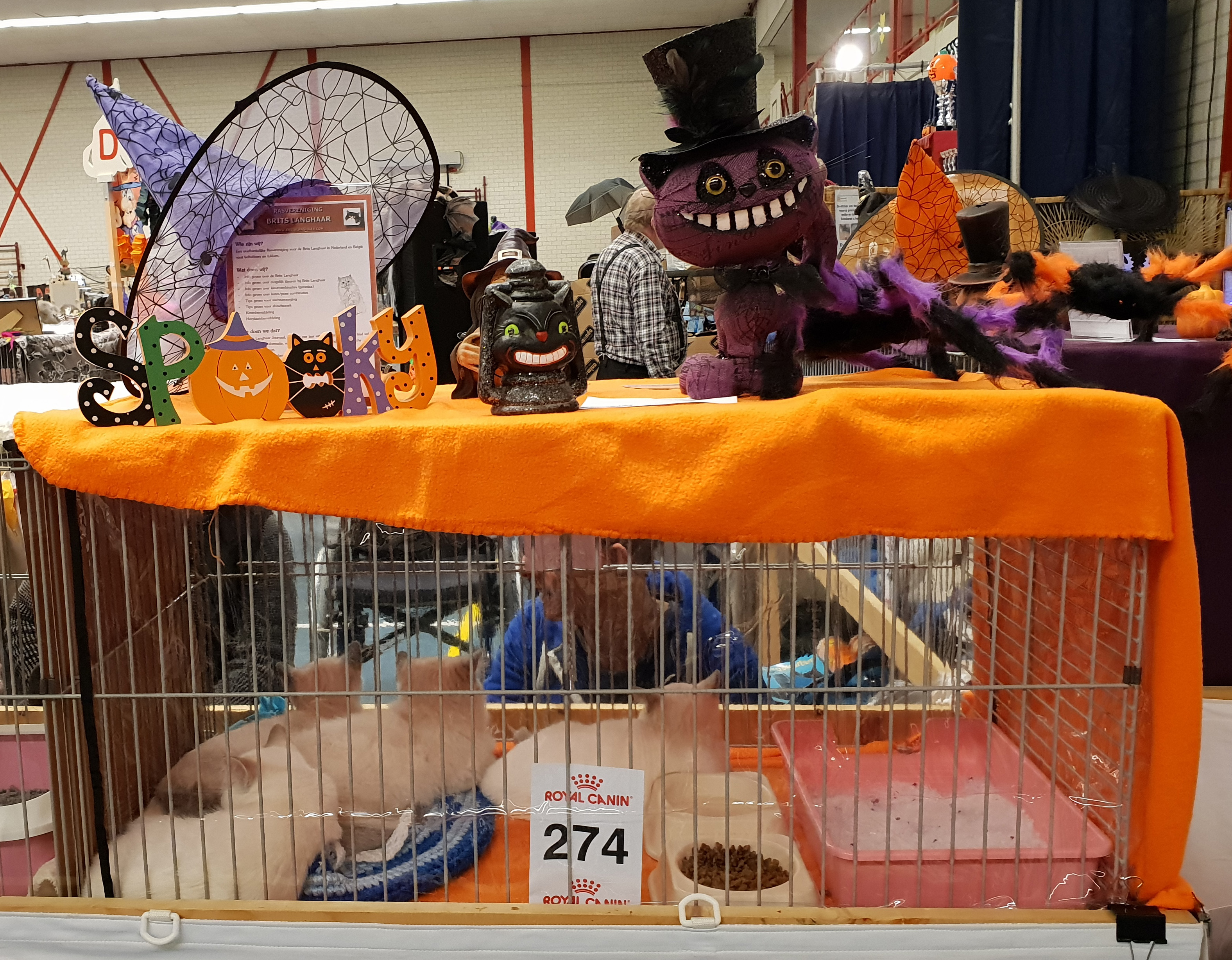 Intussen zijn wij, het personeel, volop bezig met de voorbereidingen voor de show van de Limbra Cat Club op zondag. Alle acht poezels die meegaan worden gefluft en opgepoetst.