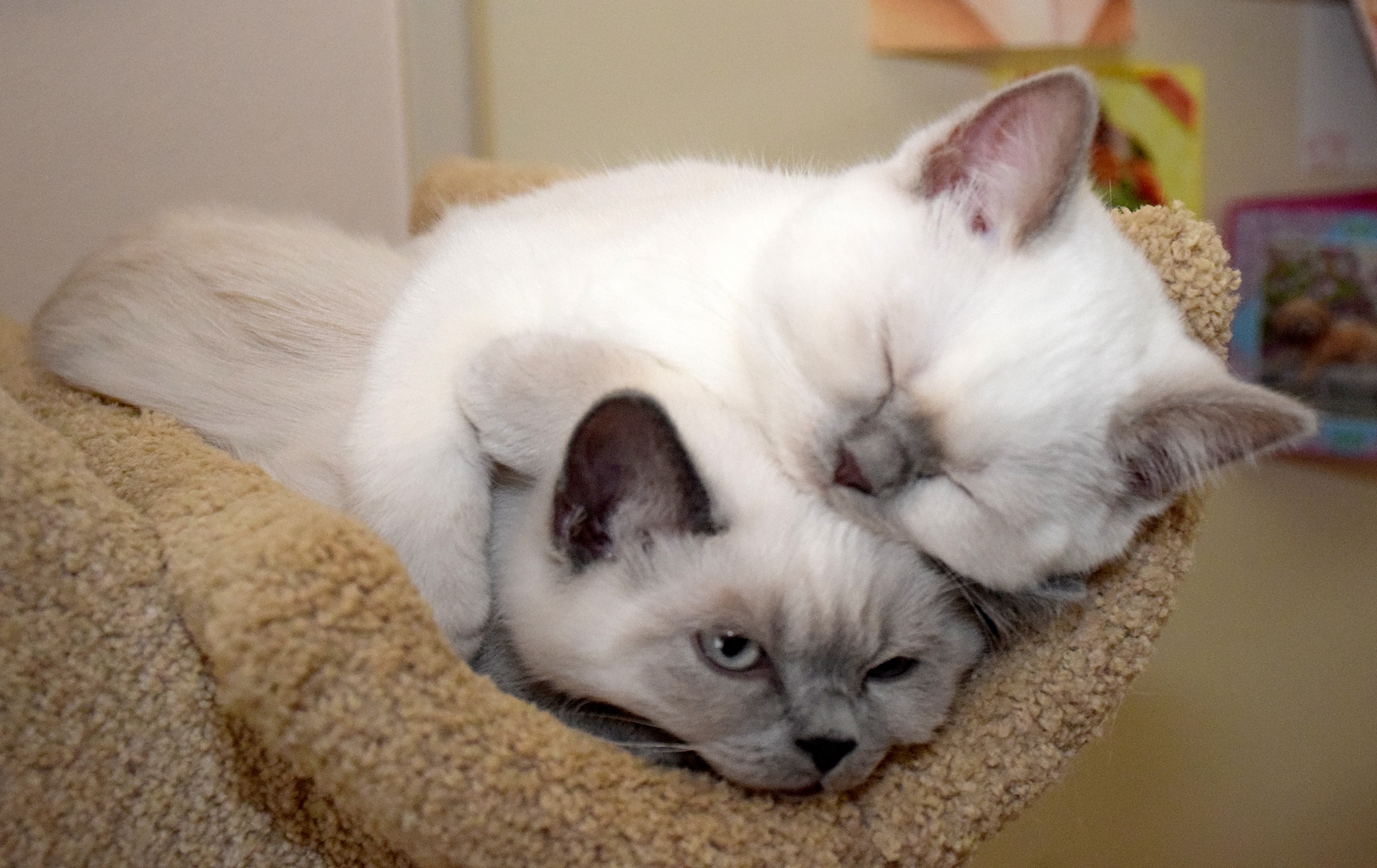 Deze week staat in het teken van Miley. Nadenken over de inhoud van de advertentie voor Miley… het meisje denkt zo goed met me mee en geeft echt aan wat ze wil. Nu heeft ze natuurlijk kennis gemaakt met Whiskers (haar halfbroertje uit het nest van Shanna) en vroeg ze zich af of ze misschien zijn speelkameraadje mag worden, want hij is zo leuk. Nou, meisje, vragen kunnen we het altijd, maar het antwoord kan dus ook “nee” zijn. We hebben de vraag bij het personeel van Whiskers neergelegd en zoals we al vermoedden is het antwoord “nee”. Niet omdat Miley niet leuk is, nee, het is er gewoon de tijd niet voor. Dus gaan we weer met de advertentie aan de gang. Nadat ze deze heeft goedgekeurd, lees ik hem aan een collega voor… die direct spontaan reageert: “Oh, dat is toch dat kitten met dat lichte snoetje?” Uh, ja, hoezo?? “Mijn man had die laatst bij jullie gezien… vond hij zo mooi. Mogen we eens komen kijken?” Ja, natuurlijk… 🙂