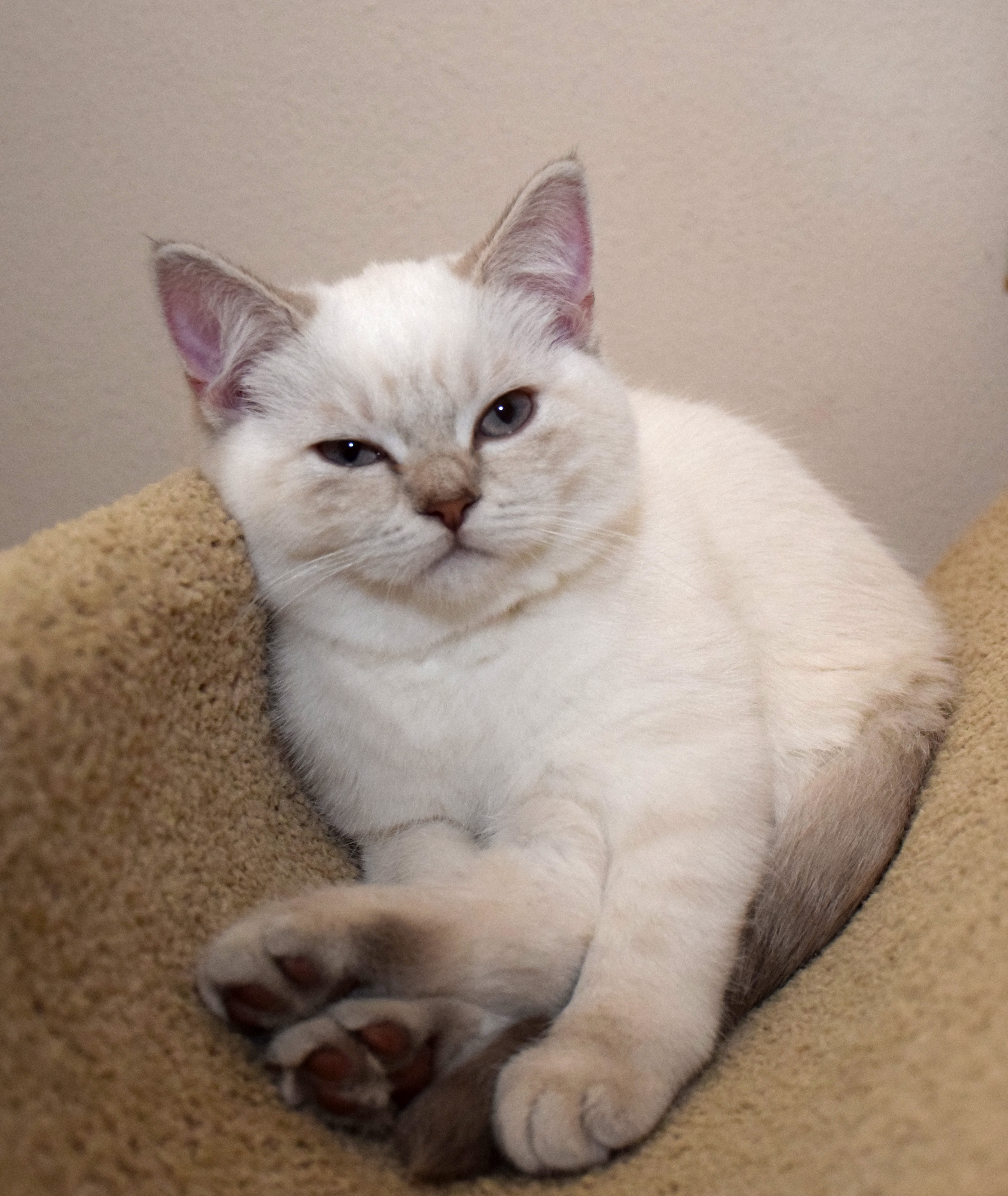 Nu moet ik iets gaan bekennen. Ik moet mij verontschuldigen voor het feit dat ik een paar weken geleden vol overtuiging een leugen op Facebook heb geplaatst. Sabine, waar Whiskers uit het nest van Shanna vorig jaar naar toe is gegaan, vond Miley heel erg mooi, maar Igor, haar man, vond dat ze het geld beter aan andere zaken konden uitgeven. Wat Sabine echter niet wist, is dat Igor ons dezelfde dag belde en vertelde dat hij Miley graag als verrassing voor Sabine wil hebben, maar zij mocht het niet weten. Dus, om Sabine van de gedachte van Miley af te brengen en niet meer aan Igor zijn hoofd te laten zeuren, heb ik een verhaal over mijn collega’s opgehangen die haar kochten (met toestemming!).