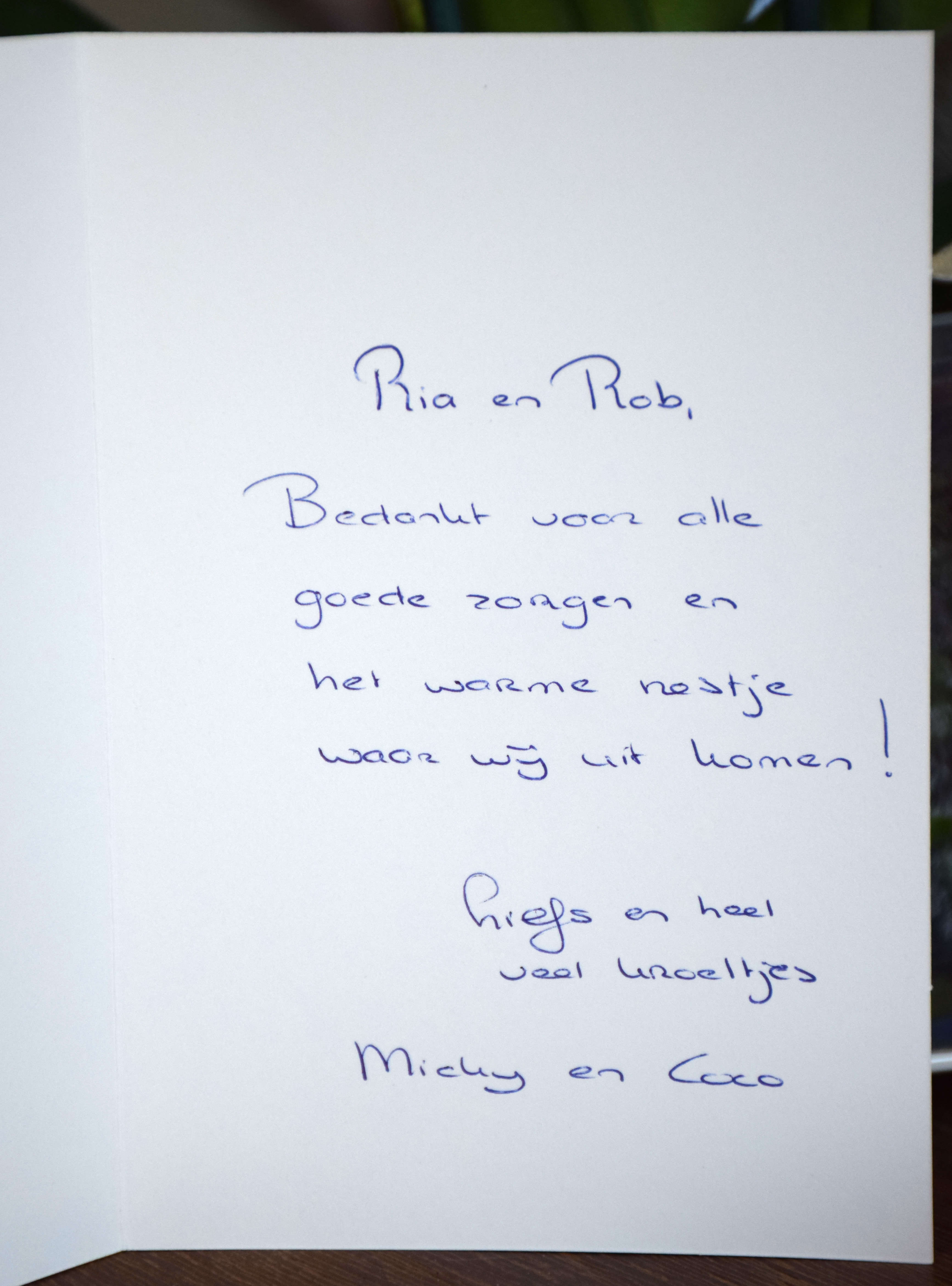 Moe maar voldaan gaan we aan het einde van de dag naar huis. Wat hebben ze het goed gedaan. Ze zijn ook ontzettend lief geweest.
