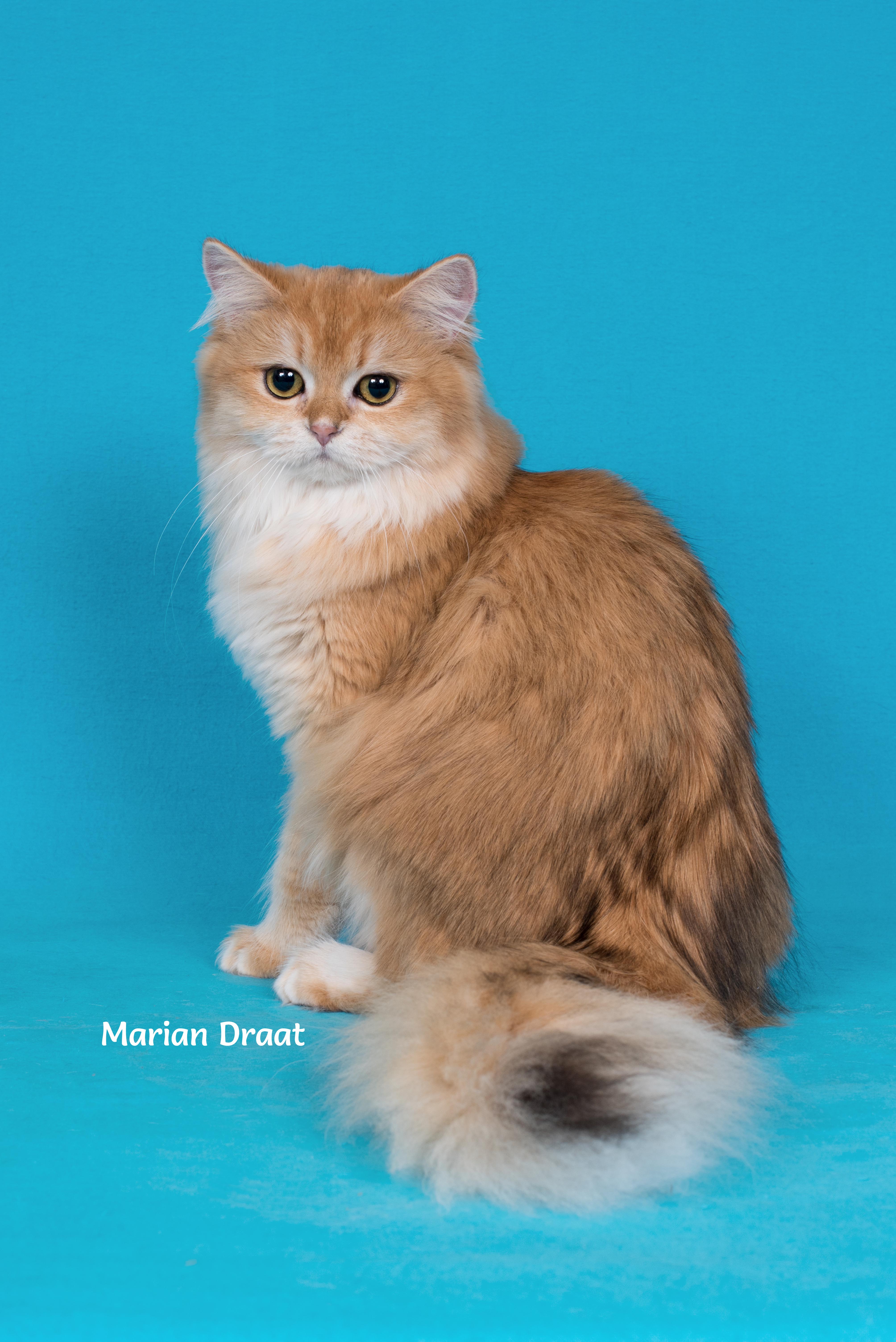 Bij de geboorte van het nest van Luna hadden we nog niet echt plannen om hier het poesje zelf van te houden, maar dit kleine ding settelde zich langzaam maar zeker in ons hart en na zes weken besloten we om toch een optie op haar te nemen. Voorwaarde was wel dat ze met negen weken goedgekeurd zou worden om met haar te fokken. Dit was het geval, dus besloten we dat Qty definitief onze cattery zou aanvullen. We waren vooral verliefd op haar mooie gouden kleur, die nog dieper van kleur was als die van haar moeder. En haar karakter was ook heerlijk, net als mama, een kroeltje.