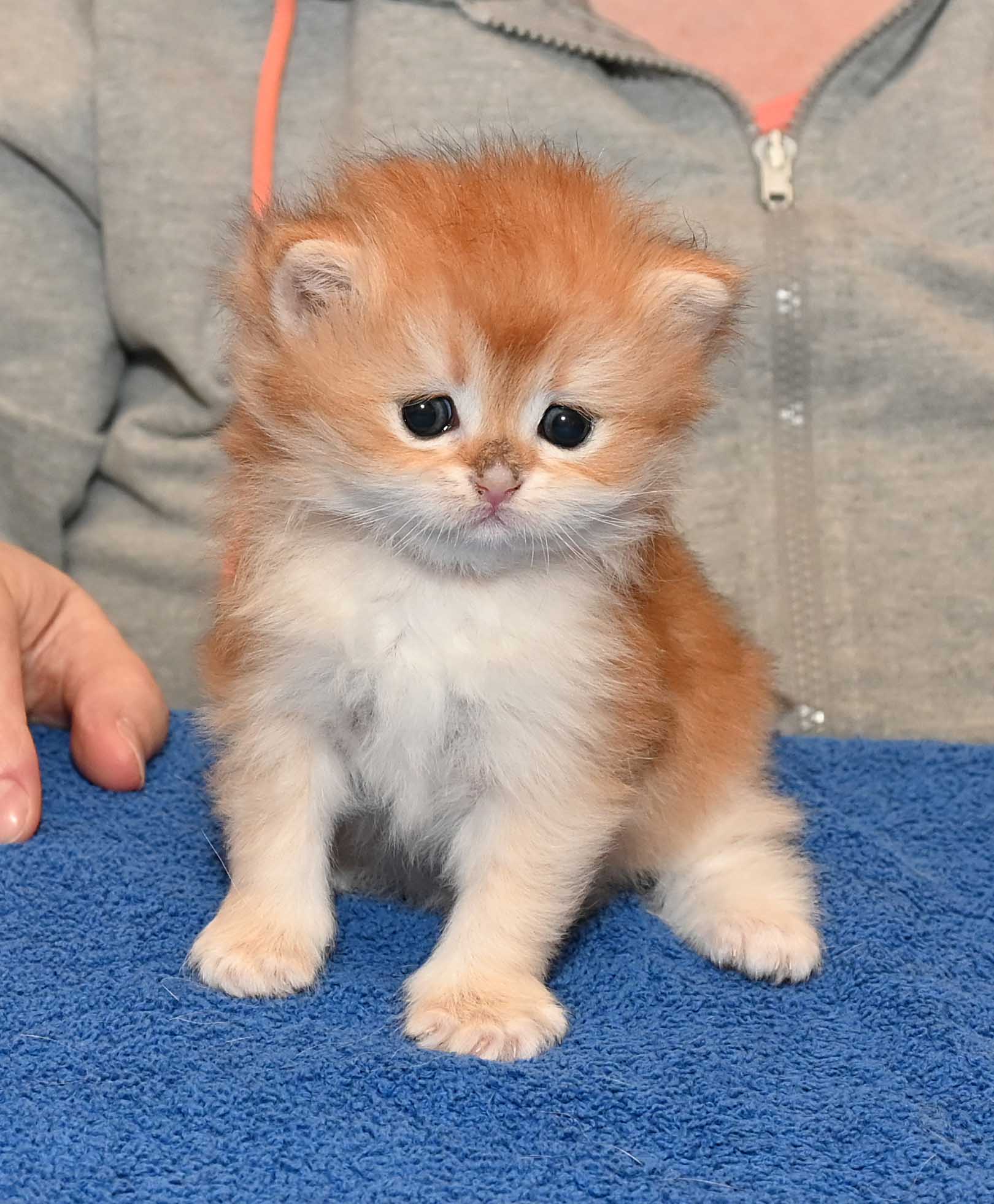 Naarmate ze ouder werd, begonnen de keurmeesters, maar ook wij op te merken dat Qty erg klein en fijn bleef. Ze bleef een “kittengrootte” behouden en ook haar typering bleef achter. Haar koppie was te vlak en haar oogkleur nog niet goed.
