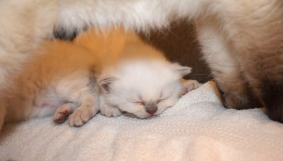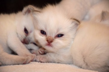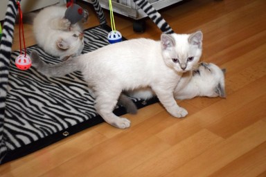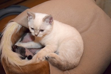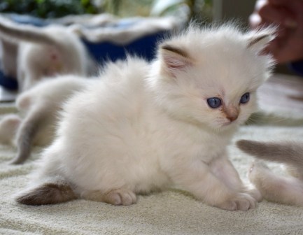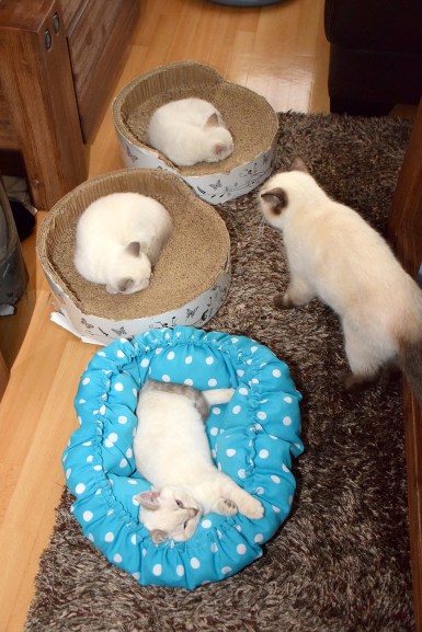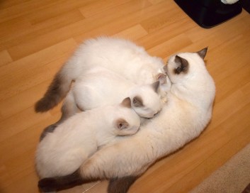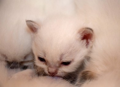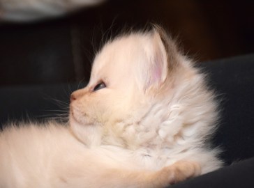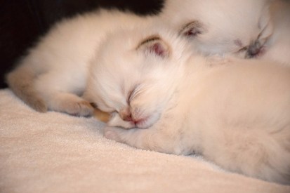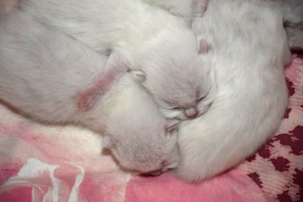 Van Shah kunnen we wel zeggen dat hij chocolate point wordt. De rest… tja, we verdenken ze alle drie van lilac point, maar durven onze verdenking nog niet definitief uit te spreken.