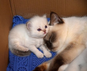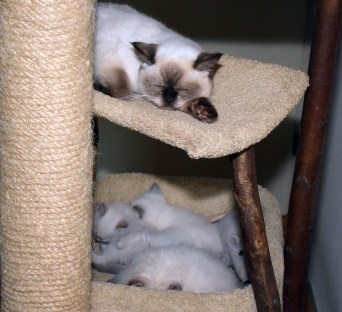 We hadden het eigenlijk niet meer verwacht en we zijn dan ook erg blij om te kunnen zeggen dat Shanna, ons chocolate point poesje, zwanger is. De man van haar dromen en vader van haar kittens is Bikimi’s Salvador Dali, lilac tabby point. Als alles naar wens verloopt mogen we hun kleine bolletjes rond 8 september verwelkomen.