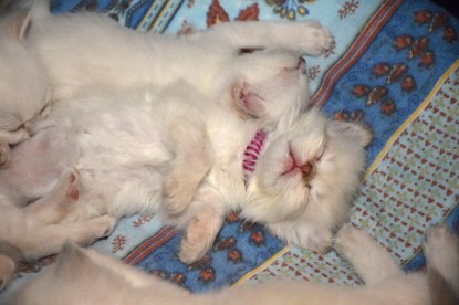 Wat is het toch weer leuk om dat kleine grut in huis te hebben. Shanna ontpopt zich tot een zeer zorgzame moeder. Ze blijft goed bij ze liggen, tot ze in slaap vallen. Dan gaat ze lekker even haar ding doen, water drinken, een beetje eten, even luchten en relaxen. Maar… zodra ze een piepje van de kleintjes hoort, snelt ze weer meteen naar ze toe om zich over hun te ontfermen. Ze verzorgt ze zo goed, dat we geen enkel plasje of poepje op het dekje vinden….
