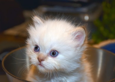 We denken de bandjes af te kunnen doen, want we kunnen ze nu wel van elkaar onderscheiden. Tot het eerstvolgende weegmoment… uhm… is dit nu Whiskers of Tiago? Even goed langs elkaar houden, oh, het is toch Tiago…dus zijn bandje maar weer omgedaan. Shah herkennen we met zijn lang pruik op afstand. Hij is zo leuk! Wat jammer dat we hem zelf niet kunnen houden. Als het een poesje was geweest, dan hadden we nog getwijfeld, maar het kan echt niet. Leia is een echt poppetje. Rustig, altijd relaxt in je hand en een schrokop. Je zet haar bij haar bakje eten, kijkt links en rechts en hup, ze heeft 20 gram weggewerkt. Ik heb haar wel de tip meegegeven om mij niet als voorbeeld te nemen…