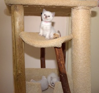 Ik blijf het zeggen… wat gaat het snel, wat worden ze groot, maar het is ook echt zo. Ze rennen en vliegen door het huis en weten al goed de kattenbak boven te vinden, op een ongelukje hier en daar na. Door alle drukte in huize Reitsma en Raaijmakers worden de volgende anti-ongelukjes-procedures wel eens verwaarloosd: a. Zet de kittens op de kattenbak als ze gegeten of geslapen hebben; b. Zorg ervoor dat de gangdeur op een kier staat zodat ze naar boven kunnen; c. Zet ze ’s middags even boven in de bench voor hun middagdutje. Doe je dit niet dan ligt er een plasje in de bijkeuken of is er in een speeltje geplast…. niet leuk maar eigen schuld dus zelf weer oppoetsen. De dader(s)?? Die meld(t)(en) zich niet.