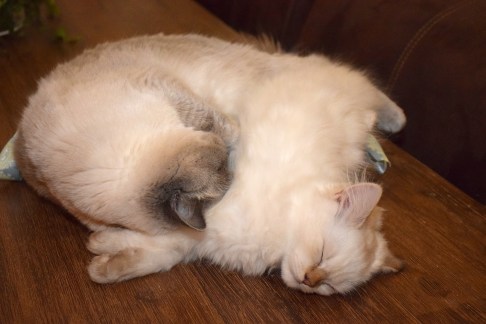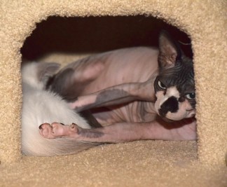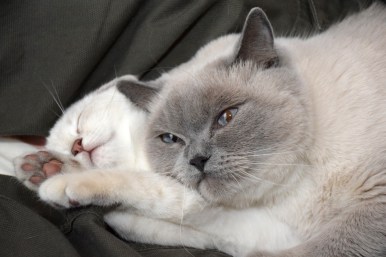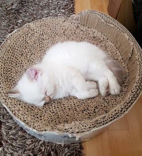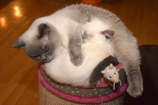 Overdag spelen, dan vroeg in de avond gaan slapen en tegen de tijd dat je zelf rustig zit, vinden ze het nodig om het huis op stelten te zetten… wat dan weer aanstekelijk werkt voor de andere katten. Dus ook die vliegen van de bank, onder de salontafel door, over de stoelen van de eethoek, over de eettafel en vroem weer terug naar de bank, waar Rob ligt, midden in zijn buik en b….n springend en weer terug… pffff… soms kunnen ze heel vermoeiend en pijnlijk zijn… LOL. Het is een wonder dat er nog niets kapot is gegaan.