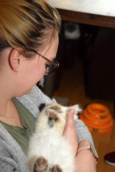 In overleg met Miranda besloten we om het toch nog een laatste keer te proberen, dus hebben we haar begin februari naar Bemmel gebracht. Maar, weer werd de stress haar teveel en voelde ze zich doodongelukkig. Ze at niet, dronk nauwelijks en zat helemaal weggedoken in een hoekje. Dus hebben we haar snel weer naar huis gehaald. Tja, wat nu gedaan? Omdat Mili vorig jaar een paar weekjes bij Miranda gelogeerd had, omdat ook zij haar “mood” verliest na het autorijden, besloten we in goed overleg met Miranda dat dit misschien ook een optie voor Shanna was.