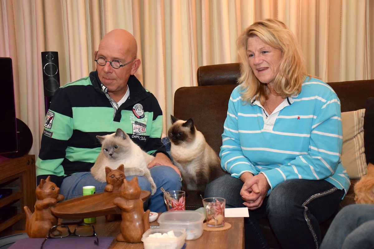 WK11-2017-11-16, 048 Gert-Jan en Esther kijkend naar het spel van Tiago, Mili en Laleh houden Gert-Jan wel op zijn plek.. Foto’s en teksten: eigendom en copyright Cattery Cherished.