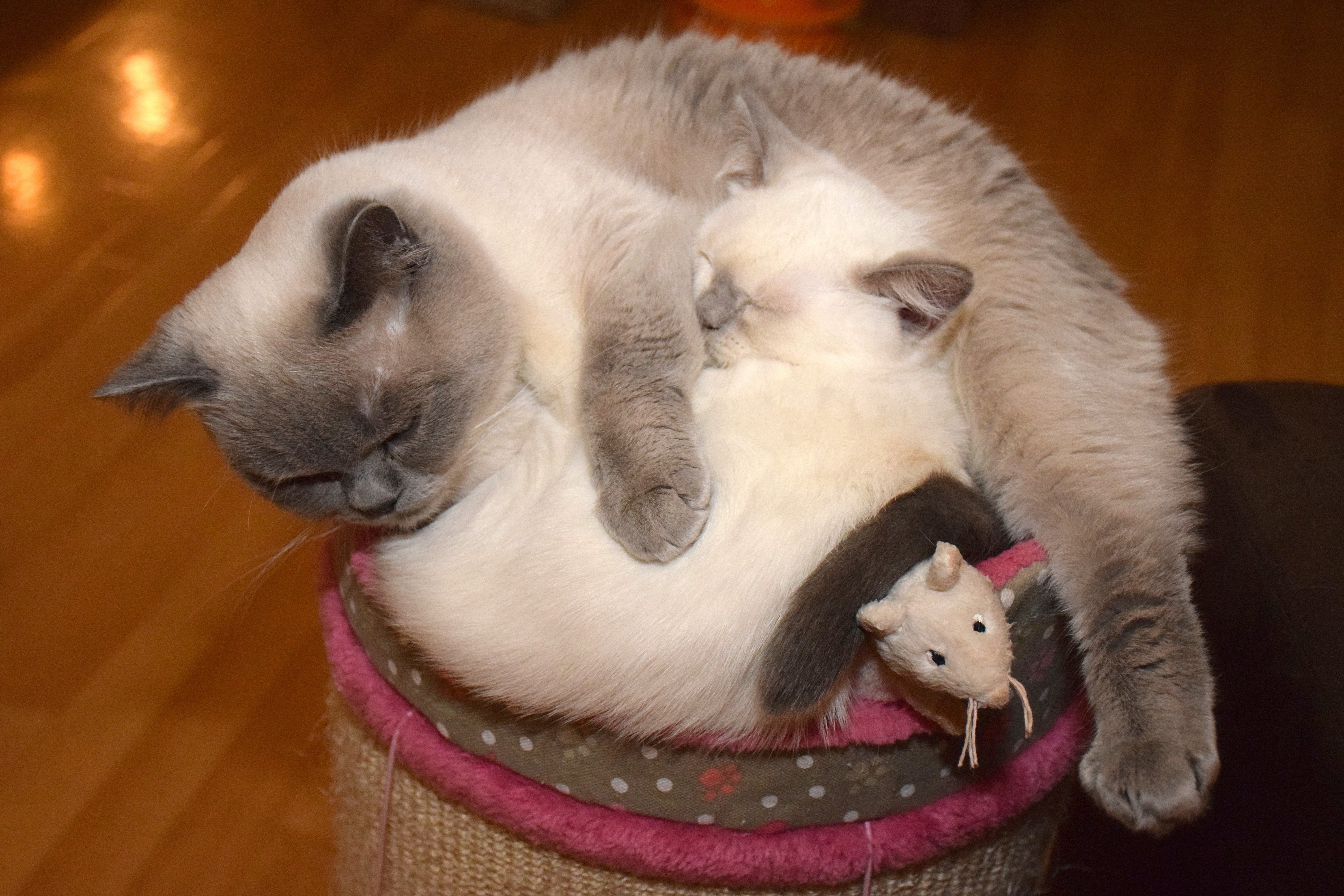WK13-2017-12-04, 121_Leia met Mili Beetje krap, Mili…. maar Leia ligt in ieder geval warm. Foto’s en teksten: eigendom en copyright Cattery Cherished.