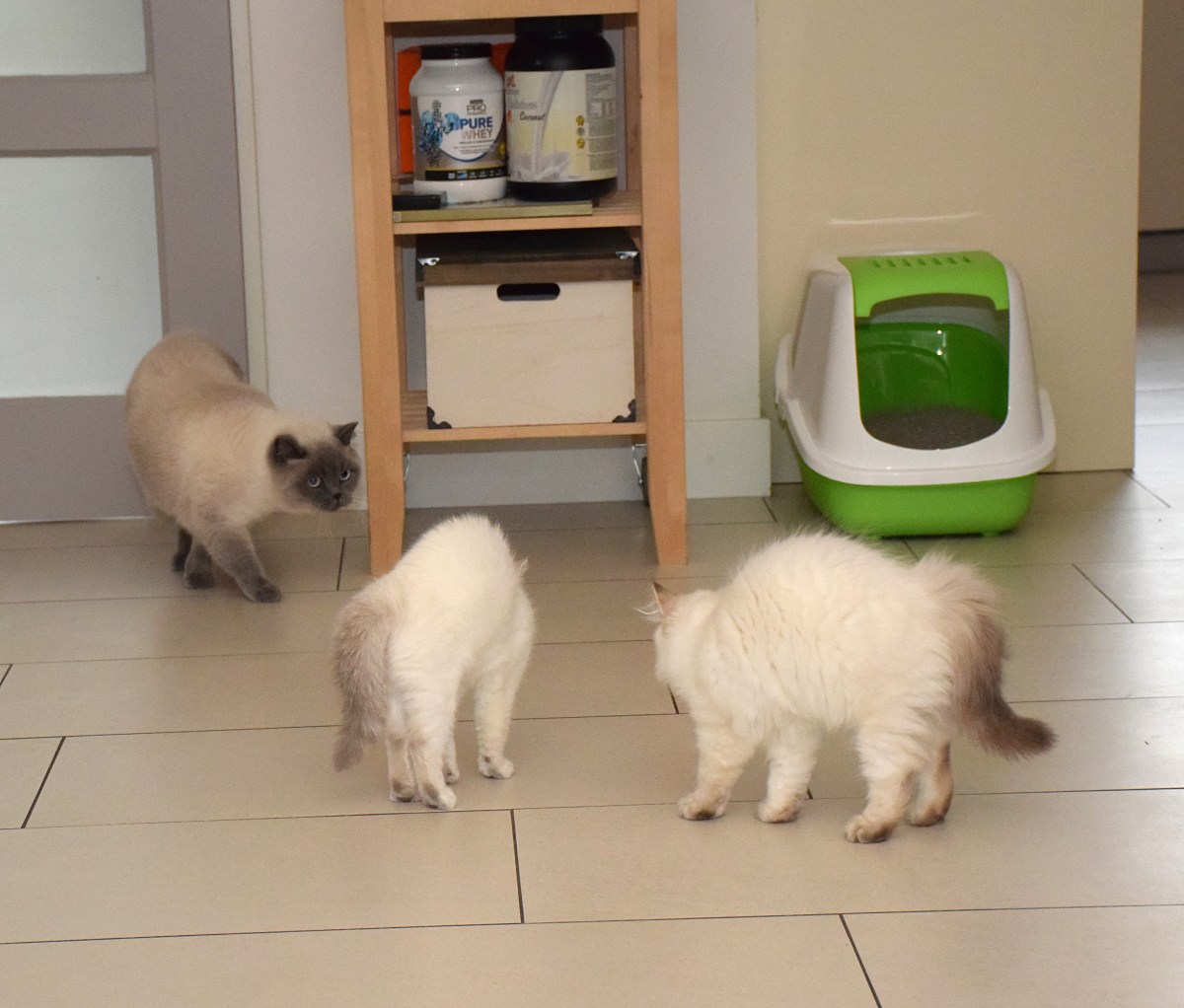WK14-2017-12-09, 064_Tiago en Shah met Sam En dan komt Sam binnen… dat is schrikken. Foto’s en teksten: eigendom en copyright Cattery Cherished.