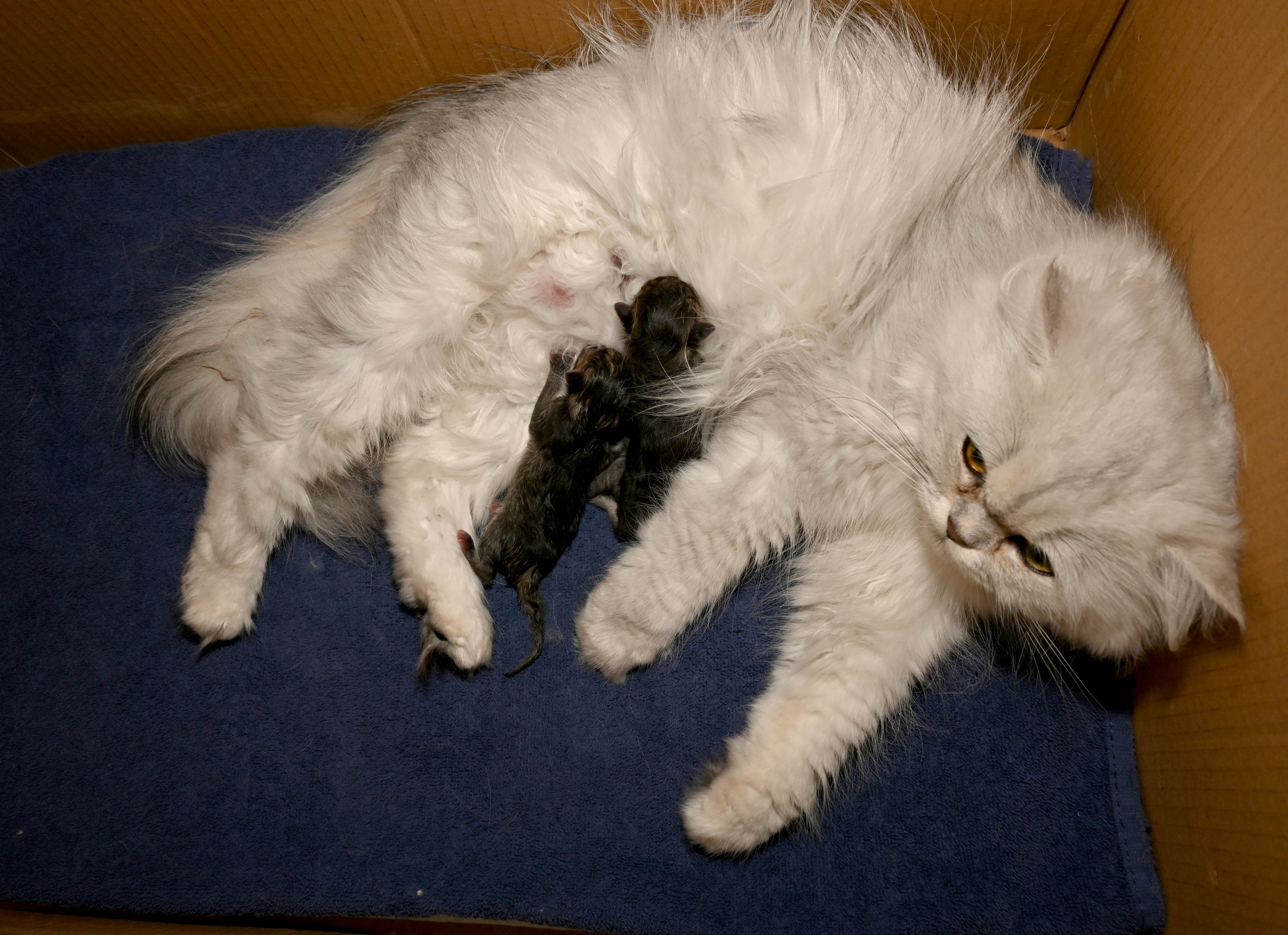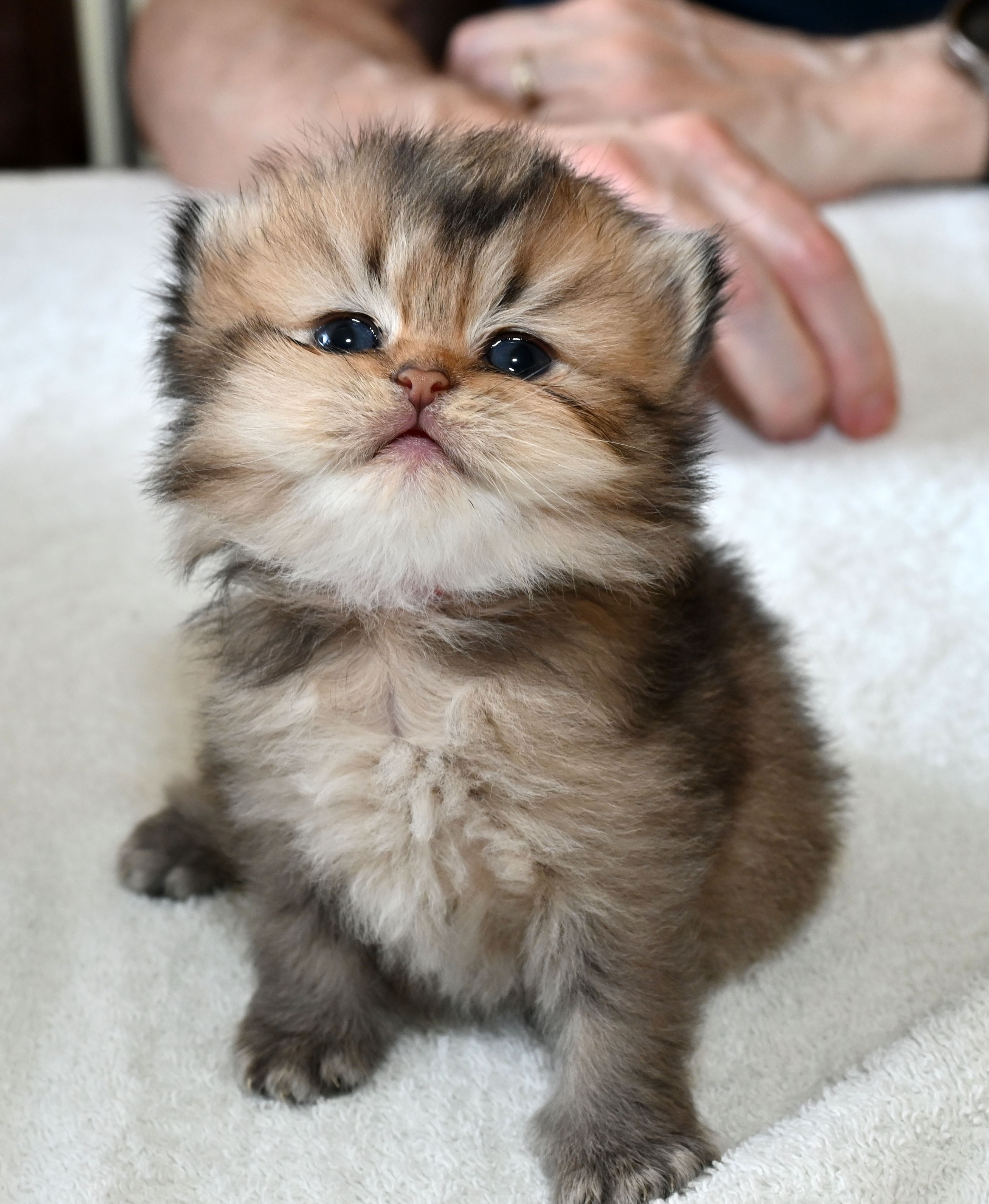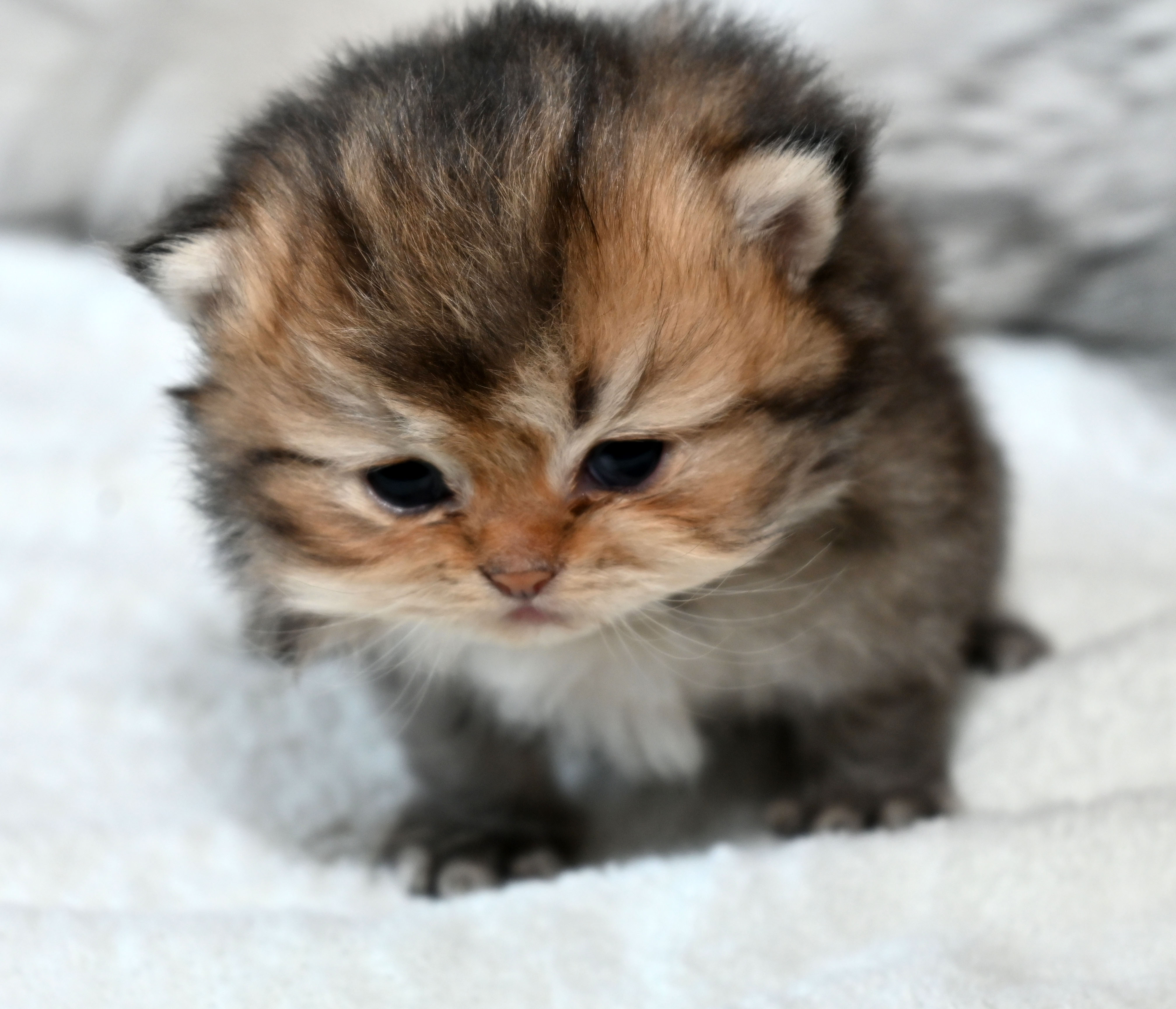 Wat een leuke verrassing had Pearl voor ons. We gingen voor shaded silver kittens, gezien de combinatie van Pearl en de kater en verwachtten zelfs dat er mogelijk nog korthaartjes in het nest zouden zitten. Wat was het dus mooi om te zien, dat er twee shaded golden langhaar kittens, een poesje en katertje, geboren werden.