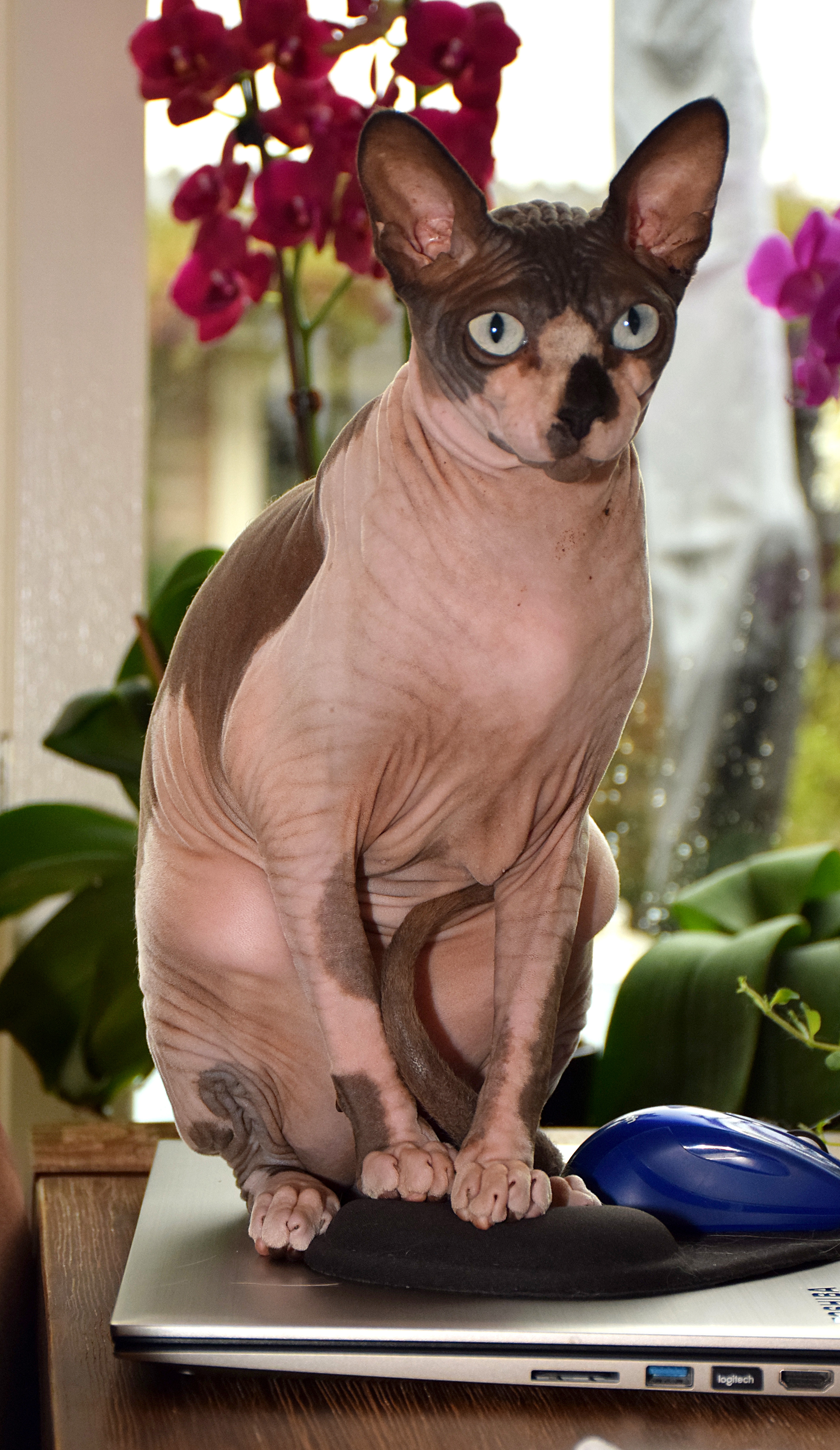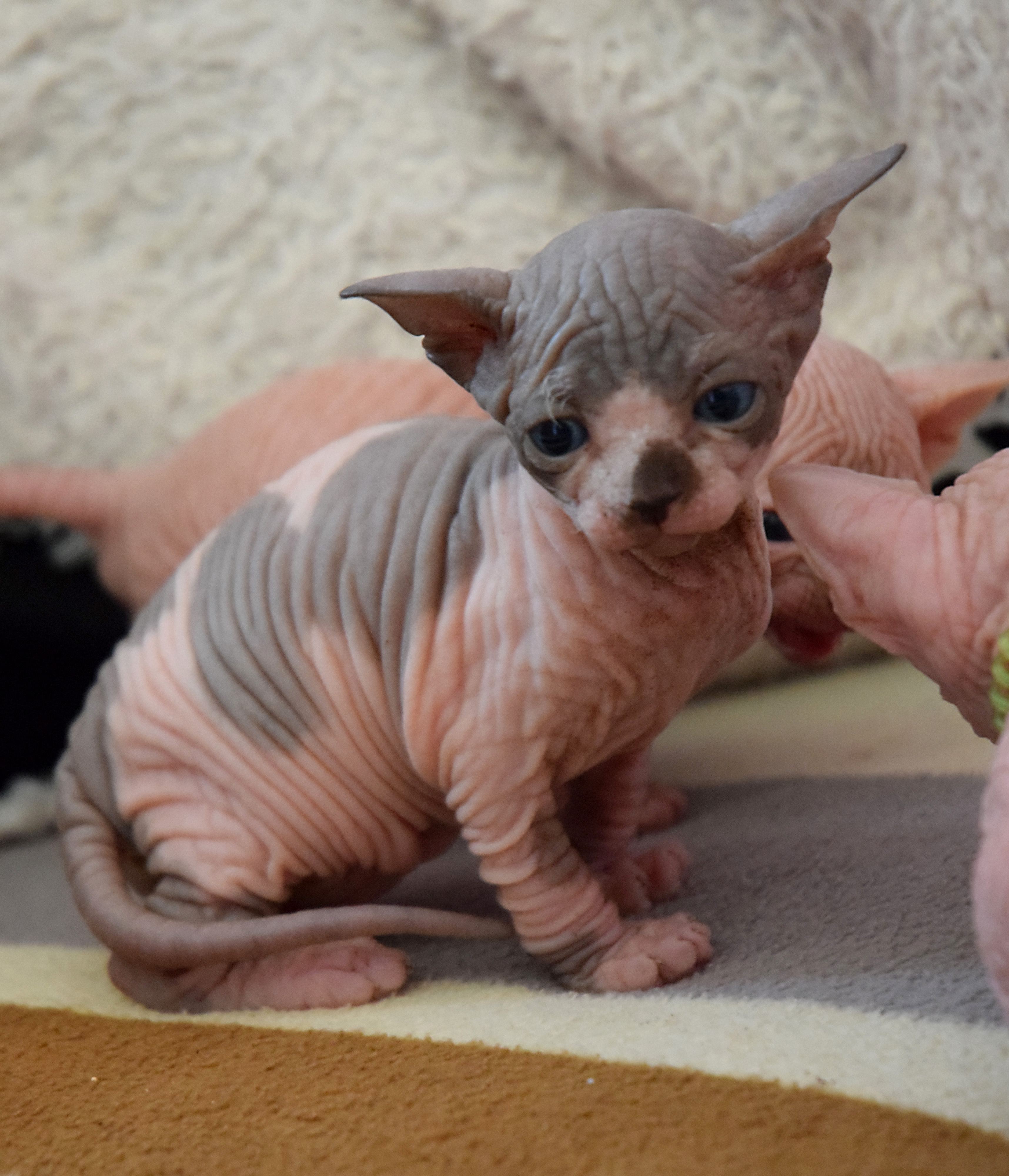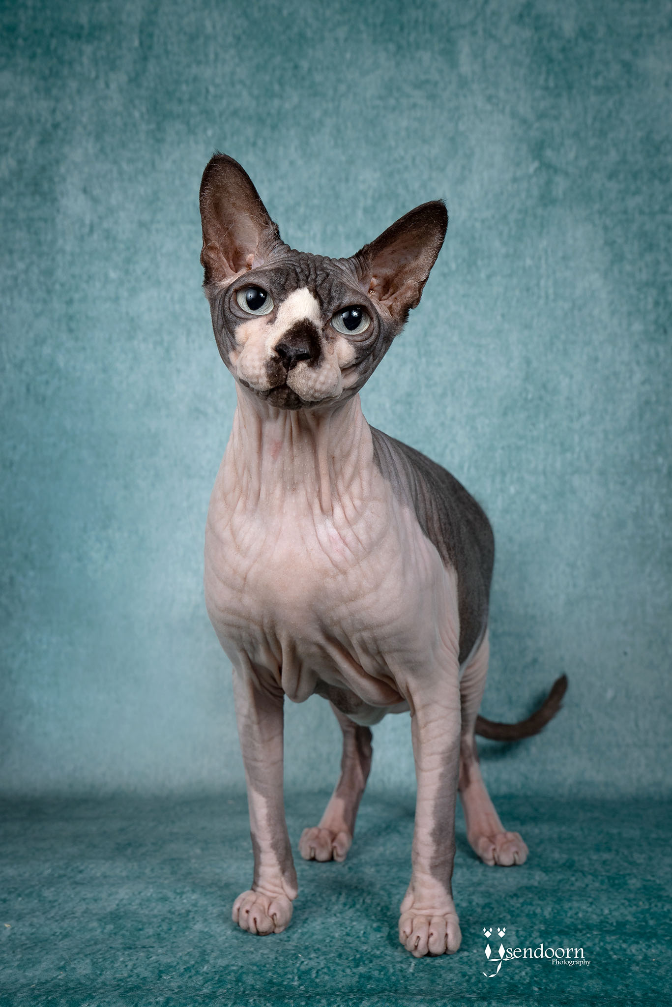 Eind 2015 werd er weer een nestje bij Herma geboren. In dit nest niet alleen een Sphynx katertje, maar ook een Bambino poesje. Uiteraard gingen we weer een paar keer op kittenkraambezoek en zagen we het grut opgroeien. Het bosje haar werd groter en groter en ook een paar haren op Rob zijn hoofd werden geïnfecteerd met de gedachte dat er “ooit misschien wel eens een Sphynxje bij ons mag komen wonen”.