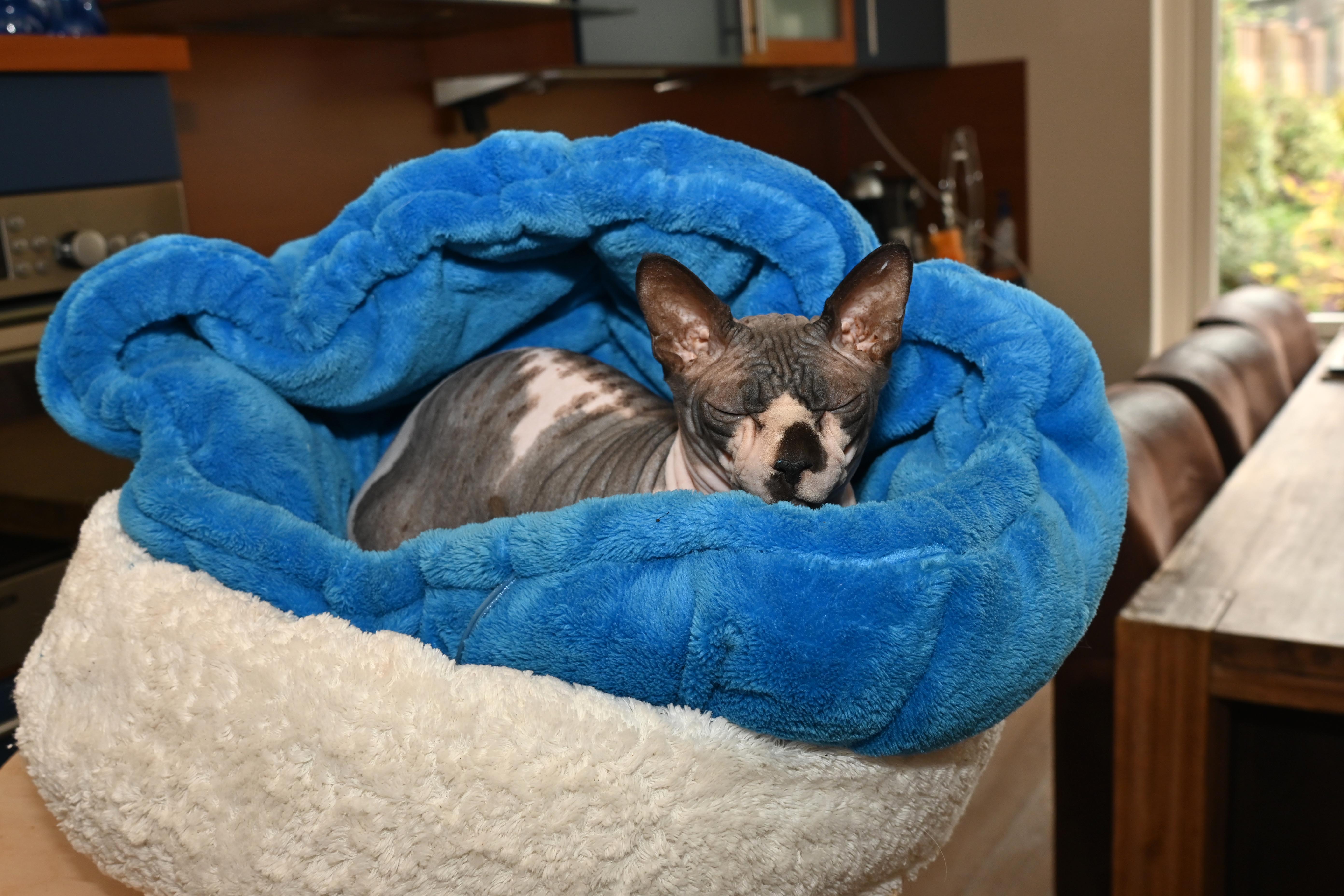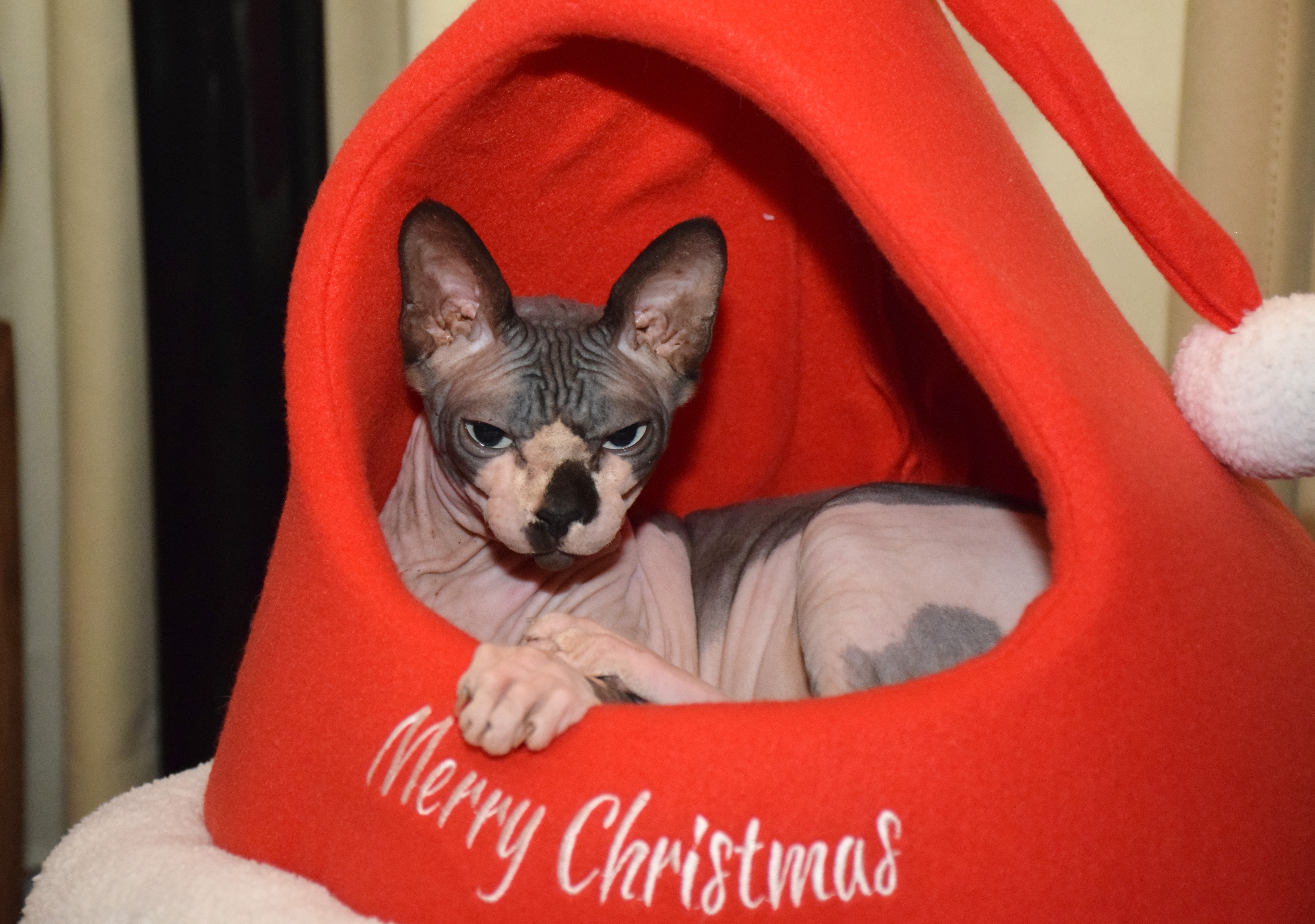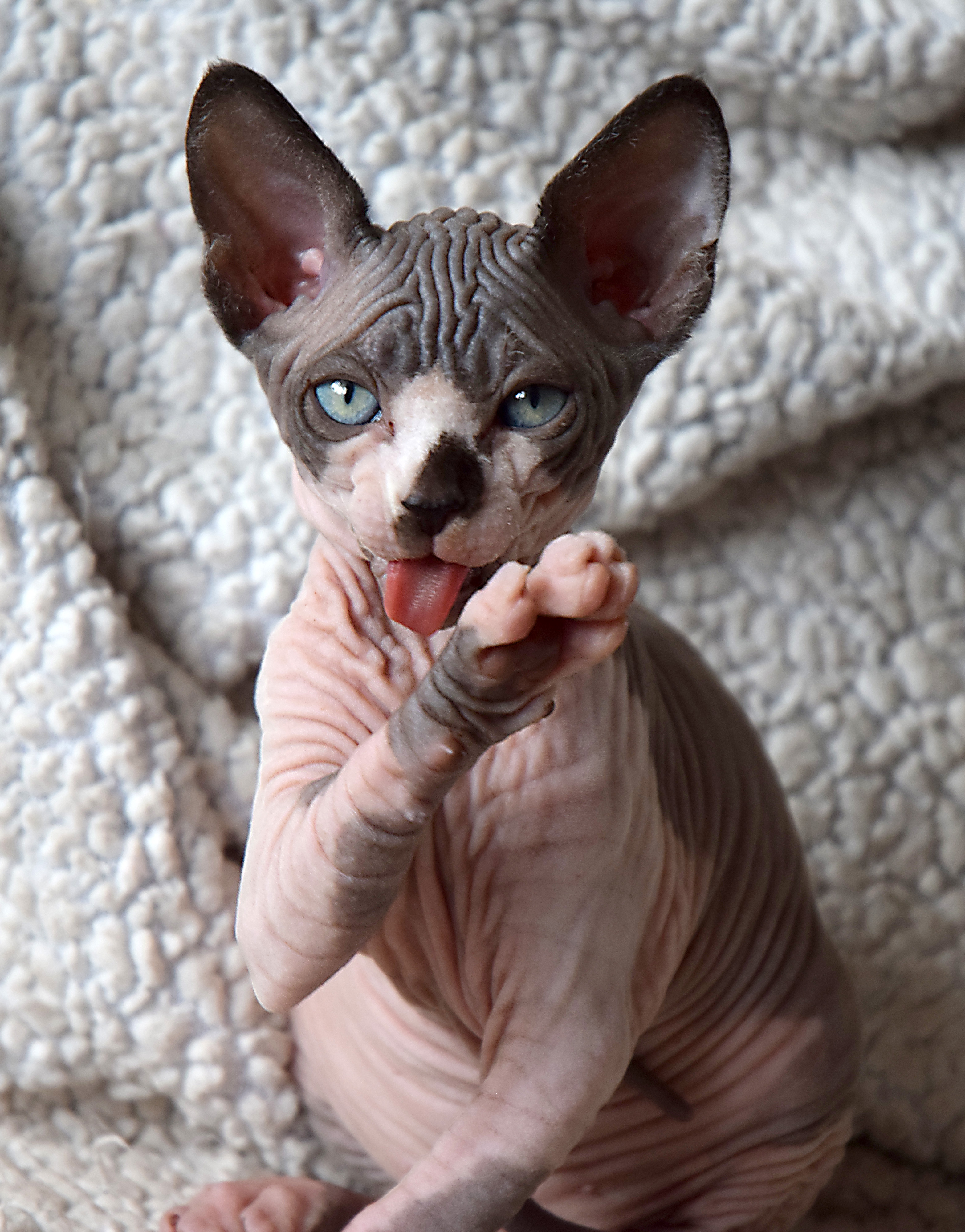 Eind 2015 werd er weer een nestje bij Herma geboren. In dit nest niet alleen een Sphynx katertje, maar ook een Bambino poesje. Uiteraard gingen we weer een paar keer op kittenkraambezoek en zagen we het grut opgroeien. Het bosje haar werd groter en groter en ook een paar haren op Rob zijn hoofd werden geïnfecteerd met de gedachte dat er “ooit misschien wel eens een Sphynxje bij ons mag komen wonen”.