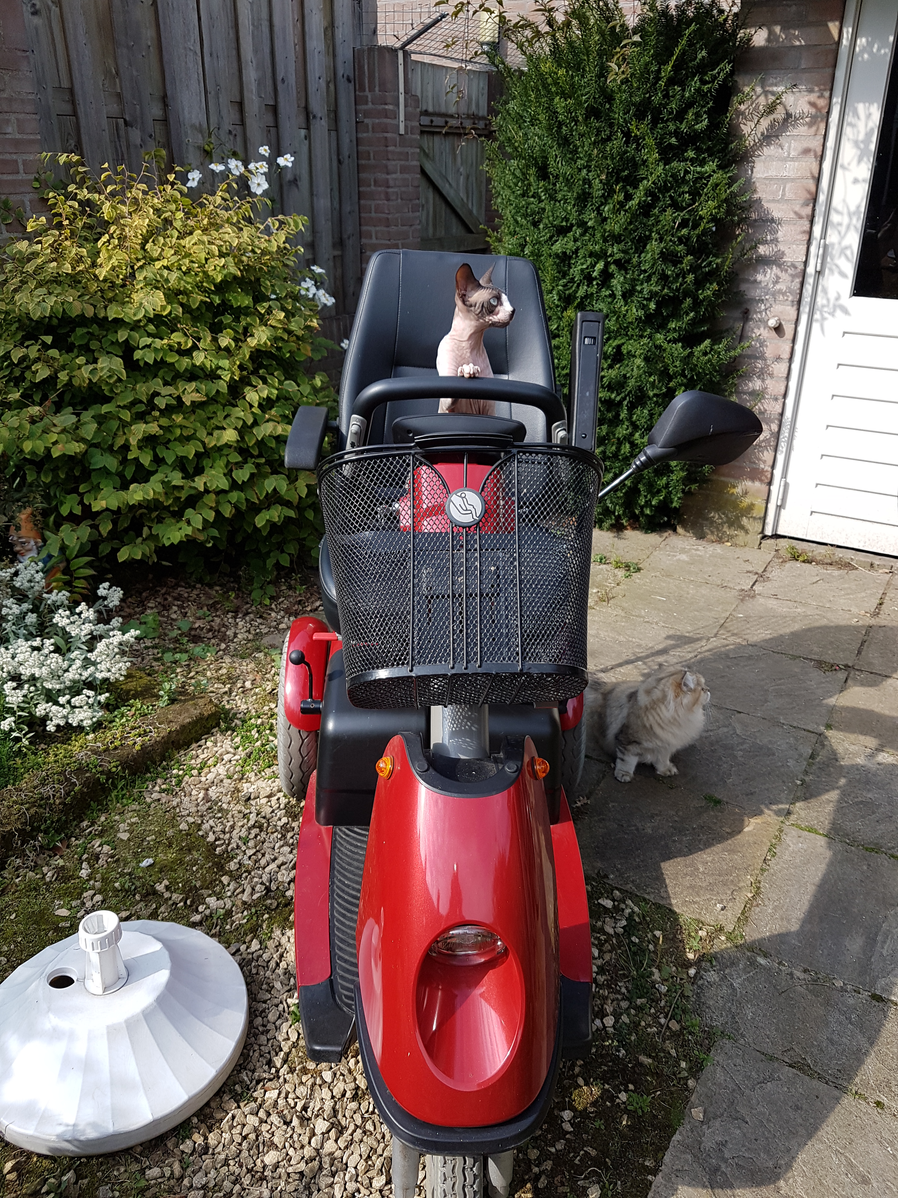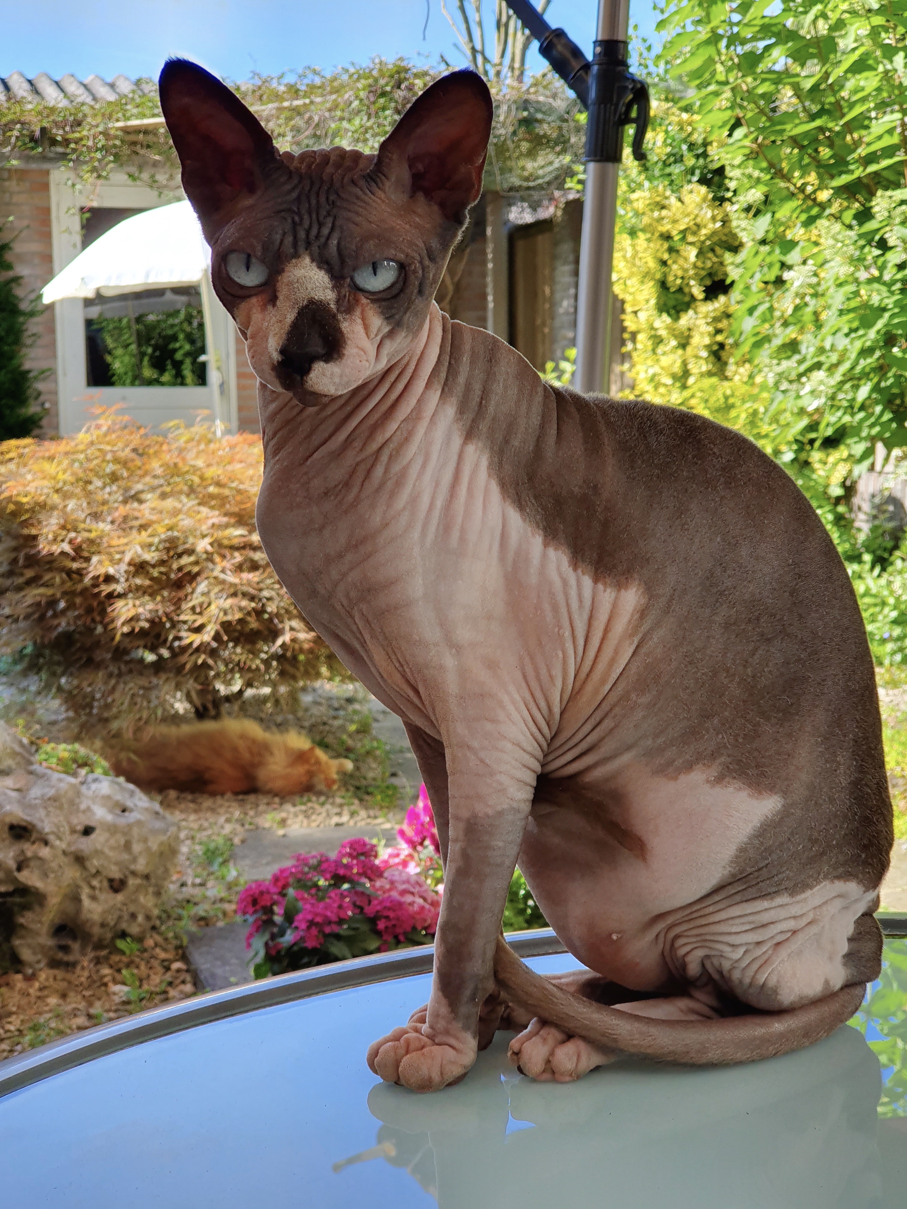 Naarmate deze kleintjes opgroeiden en we nog eens op bezoek gingen en veel foto’s voorbij zagen komen, begonnen die paar haren een bosje haren te worden, dat langzaam maar zeker groter werd dan het bosje “nooit een Sphynx”. Nee, het bosje haar begon meer in de richting te denken van “misschien ooit wel eens een Sphynx, maar dan als huiskat, niet voor de fok”. Alleen, voor zo’n beslissing moet je toch echt met zijn tweeën zijn en moet je er samen achter staan en helaas, bij Rob was er nog geen bosje haar dat in die richting dacht. Ik moest dus dat mooie meisje waar ik inmiddels zwaar verliefd op was, naar een ander gouden mandje laten gaan.