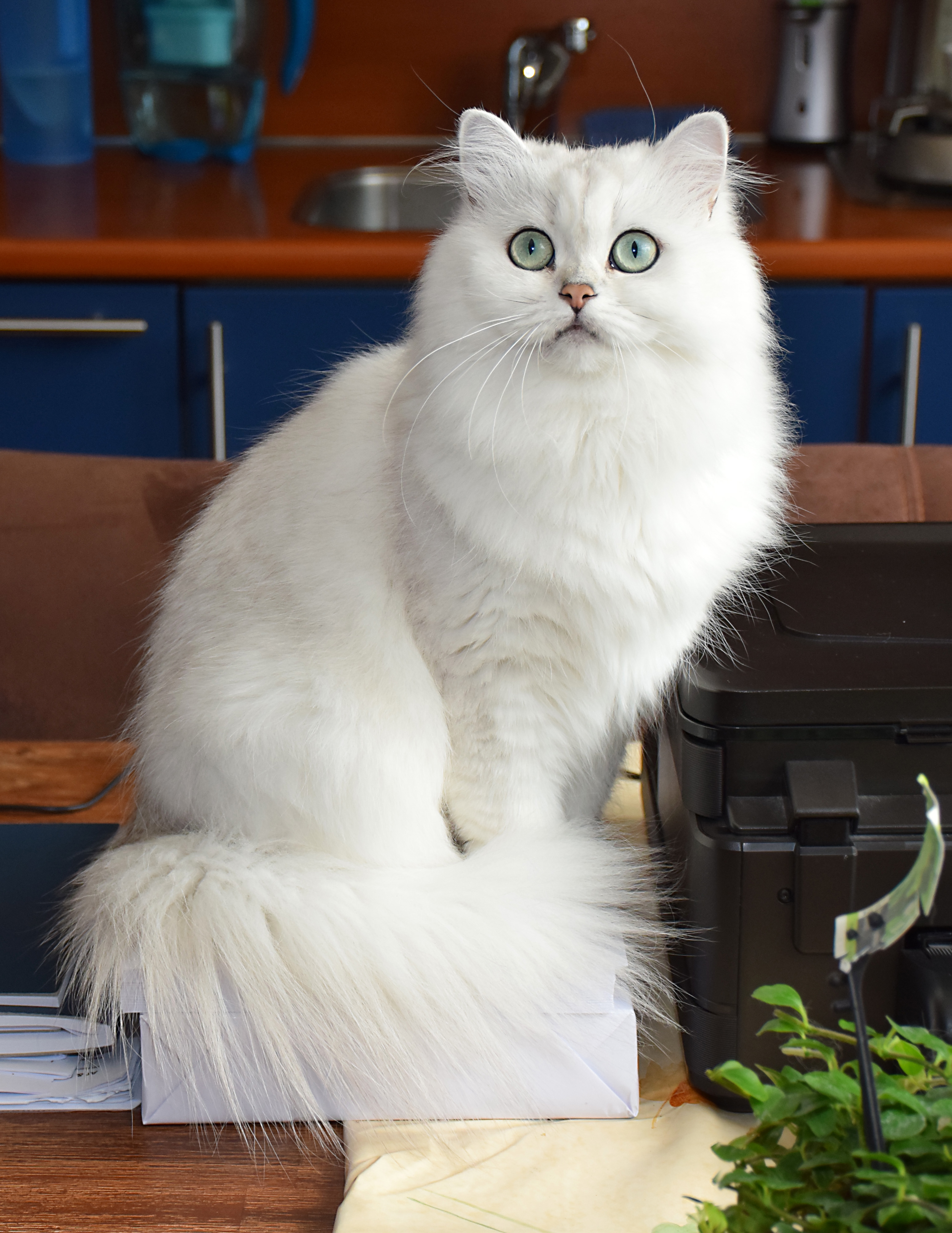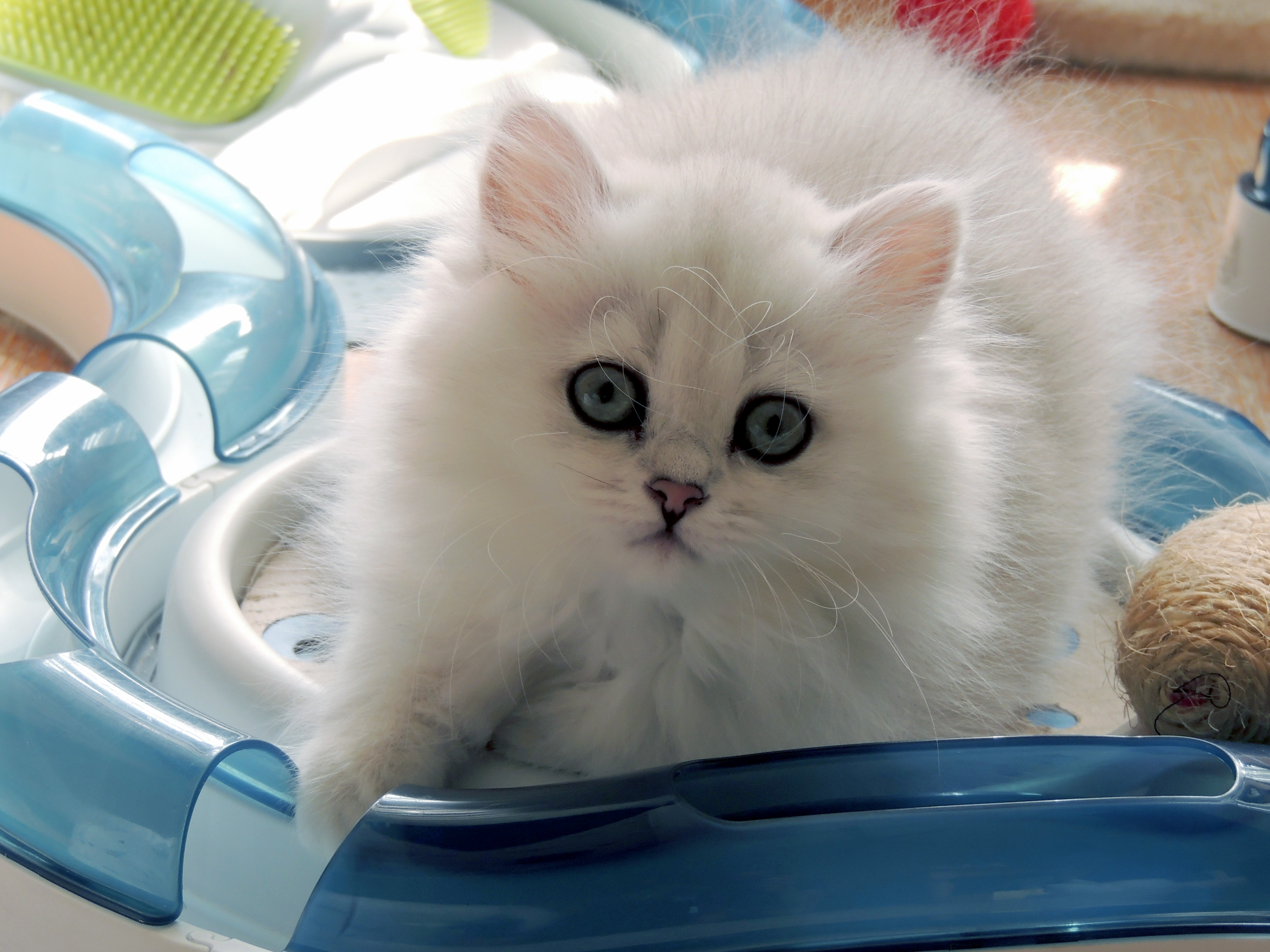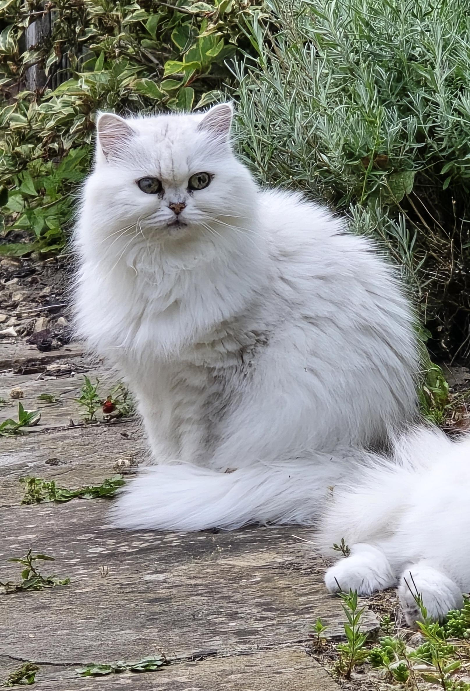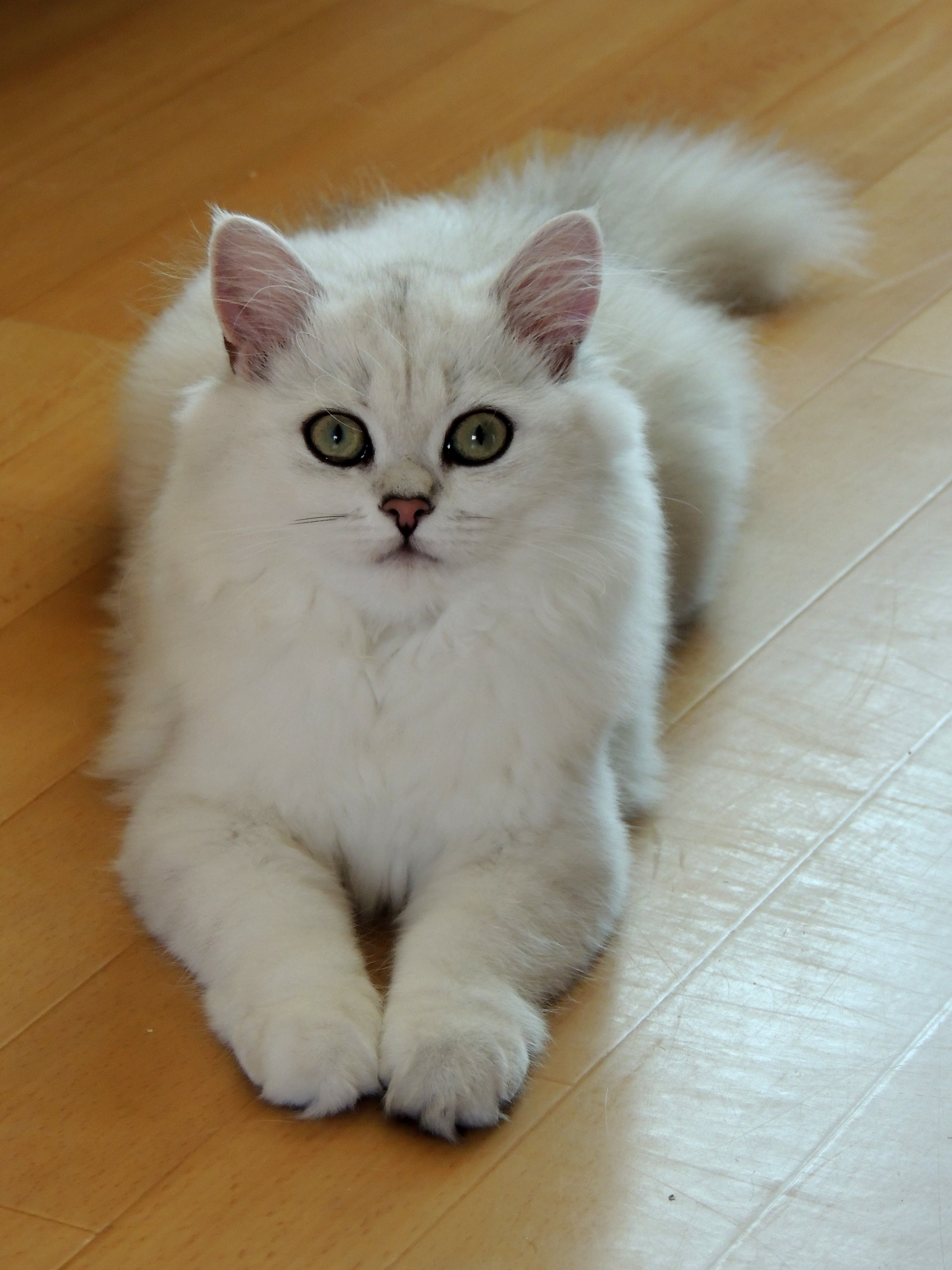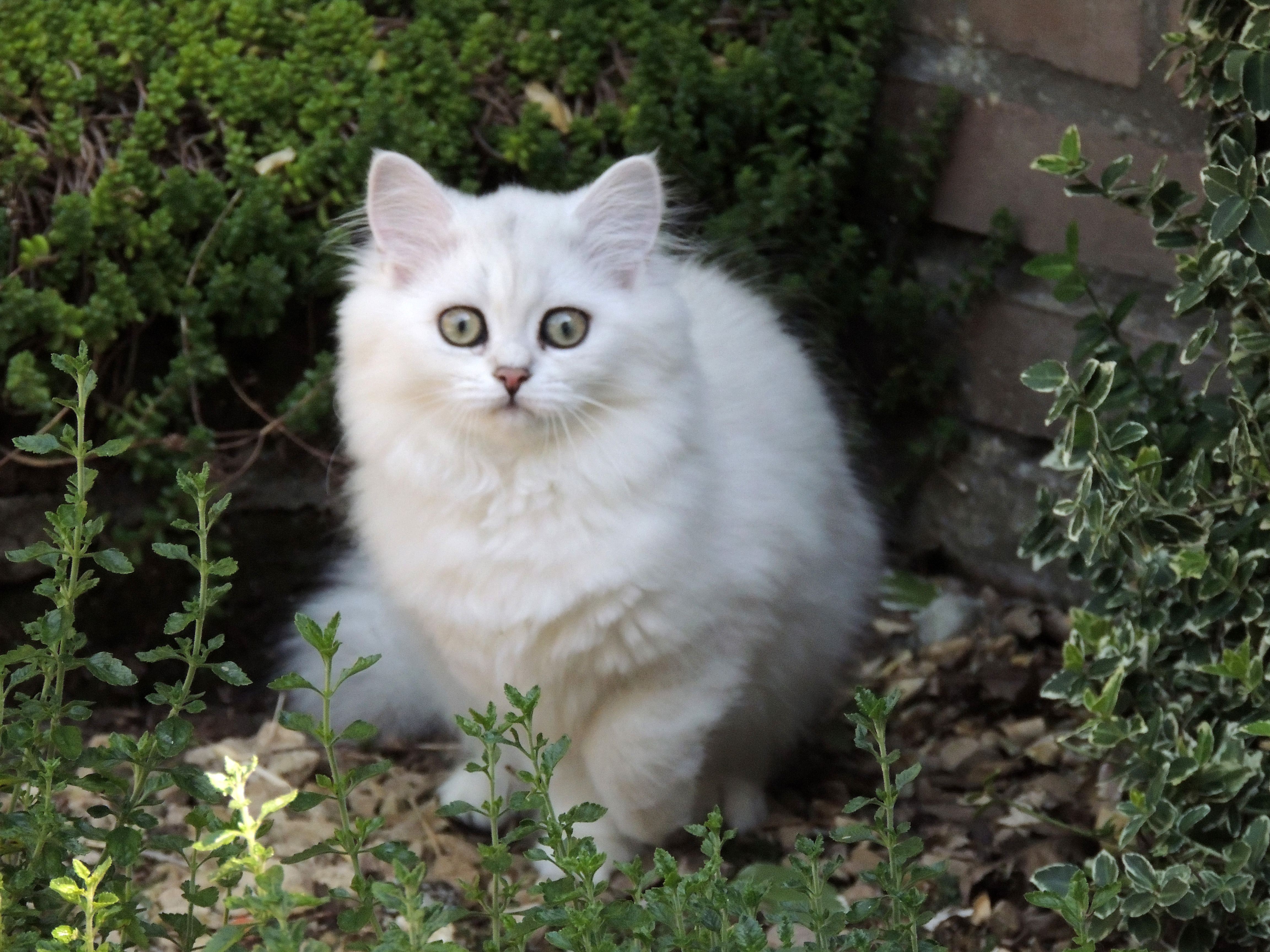 Nieuwsgierig geworden besloot ik om daar even te kijken of er inderdaad twee broertjes beschikbaar waren. Nee, die waren er niet, maar wat ik zag maakte me oh zo blij. “Oh, Rob, ik ben verliefd!”, riep ik uit, waarop hij meteen kwam kijken. En ook hij viel als een blok voor het mooie, kleine, witte, fluffy poesje dat we zagen. We hadden helemaal geen plannen voor gezinsuitbreiding, maar hier moesten we toch echt naar informeren. Dus heeft Rob naar Ineke van Loon van de Cattery Van de Zilverdistel gebeld om te vragen of ze nog beschikbaar was. Er zouden nog kijkers komen, dus over een paar dagen wist ze meer. We verwachtten dat dit mooie meisje dus weg was, want niemand kan daar toch nee tegen zeggen.