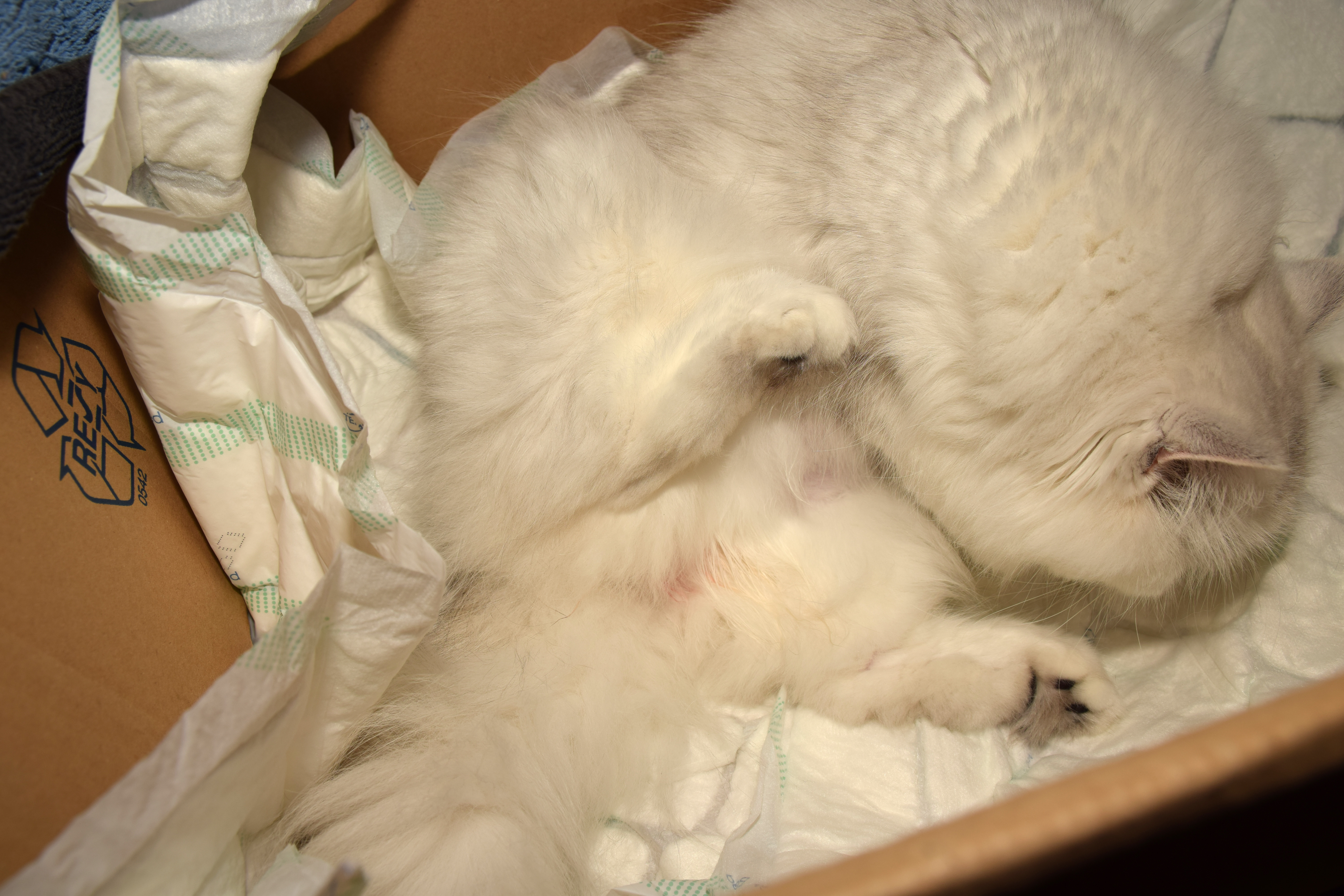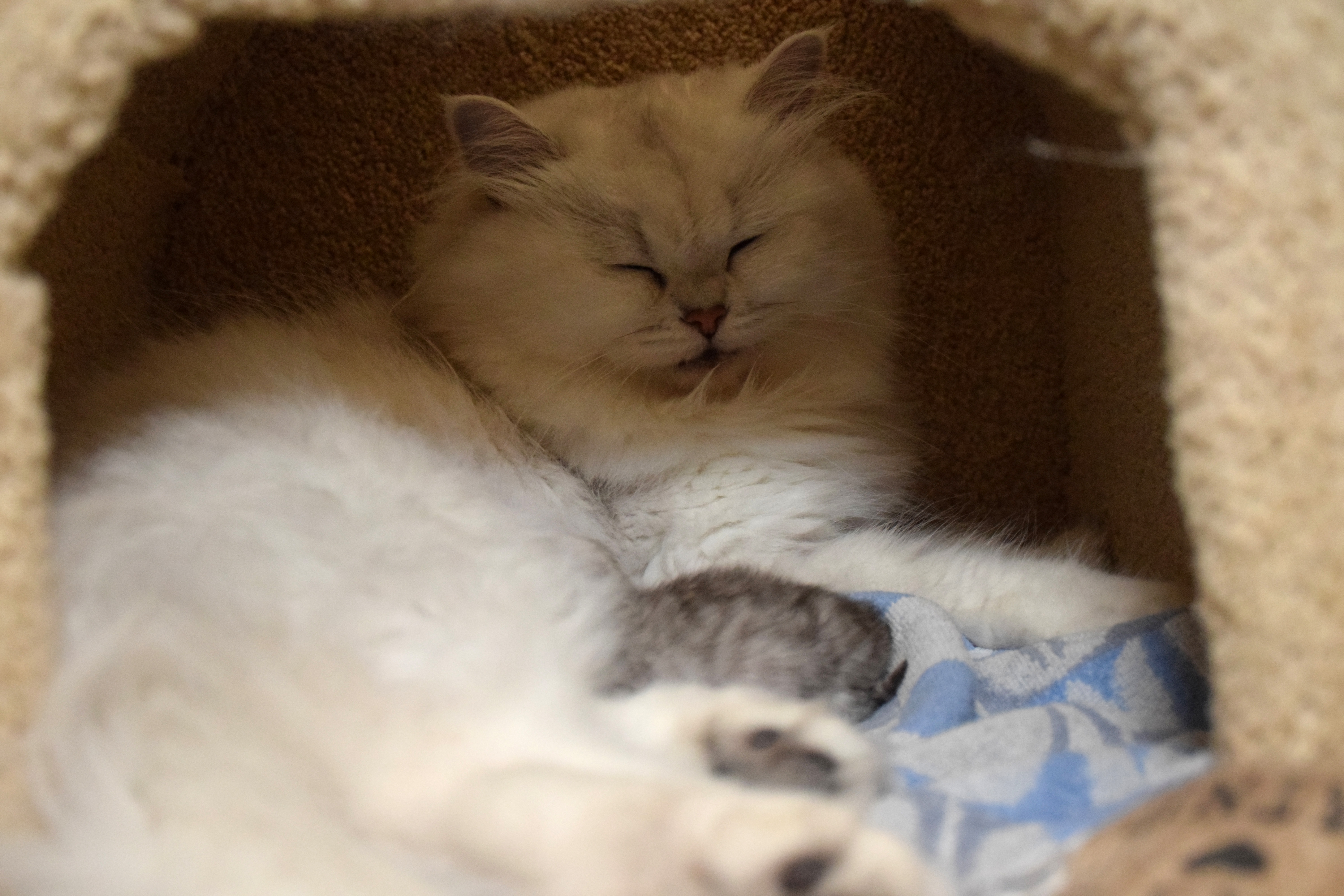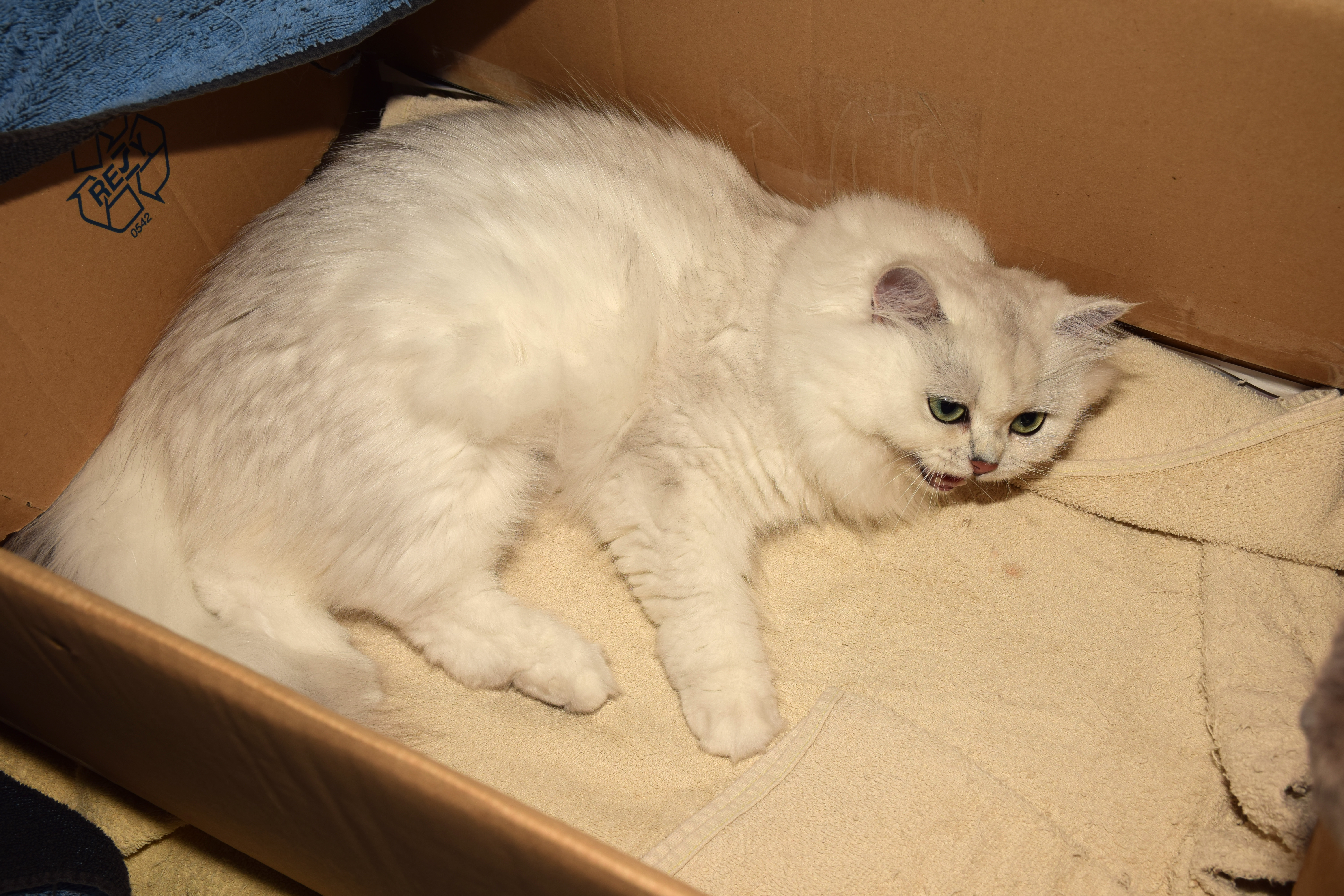 Ushi is nu voor de derde dag goed krols, dus mag ze naar de kater. De gelukkig man is Stanley (officieel Merlot van Myosotis Cats). Hij is een knappe shaded silver kater met veel ervaring, dus we hopen dat het lukt.