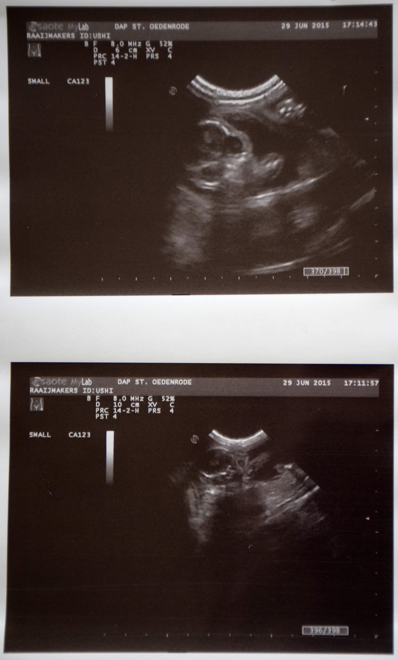 Omdat Ushi nogal wat problemen heeft met haar ontlasting besluiten we toch maar om een echo te laten maken, omdat we zeker willen weten dat de kittens goed groeien.