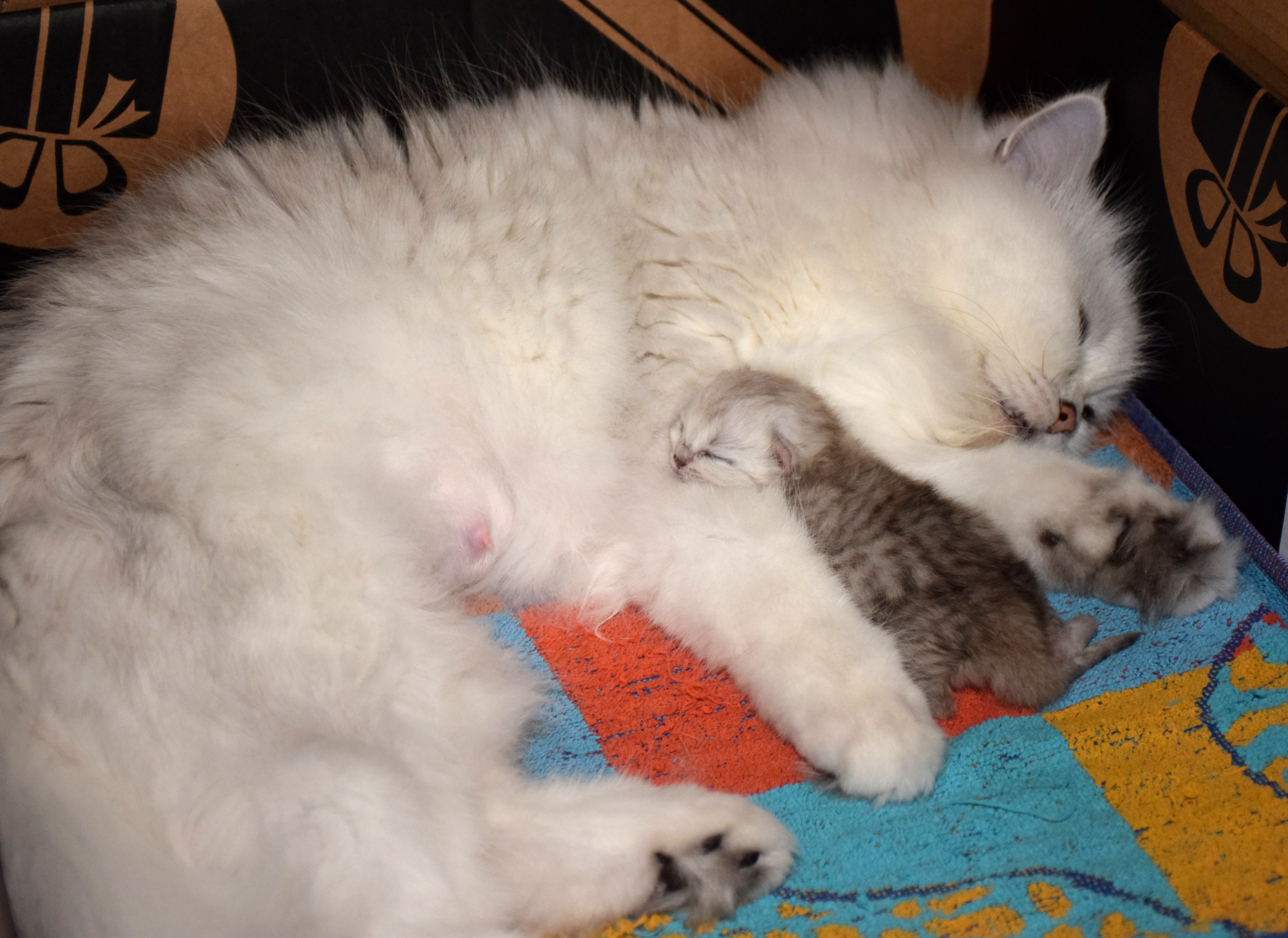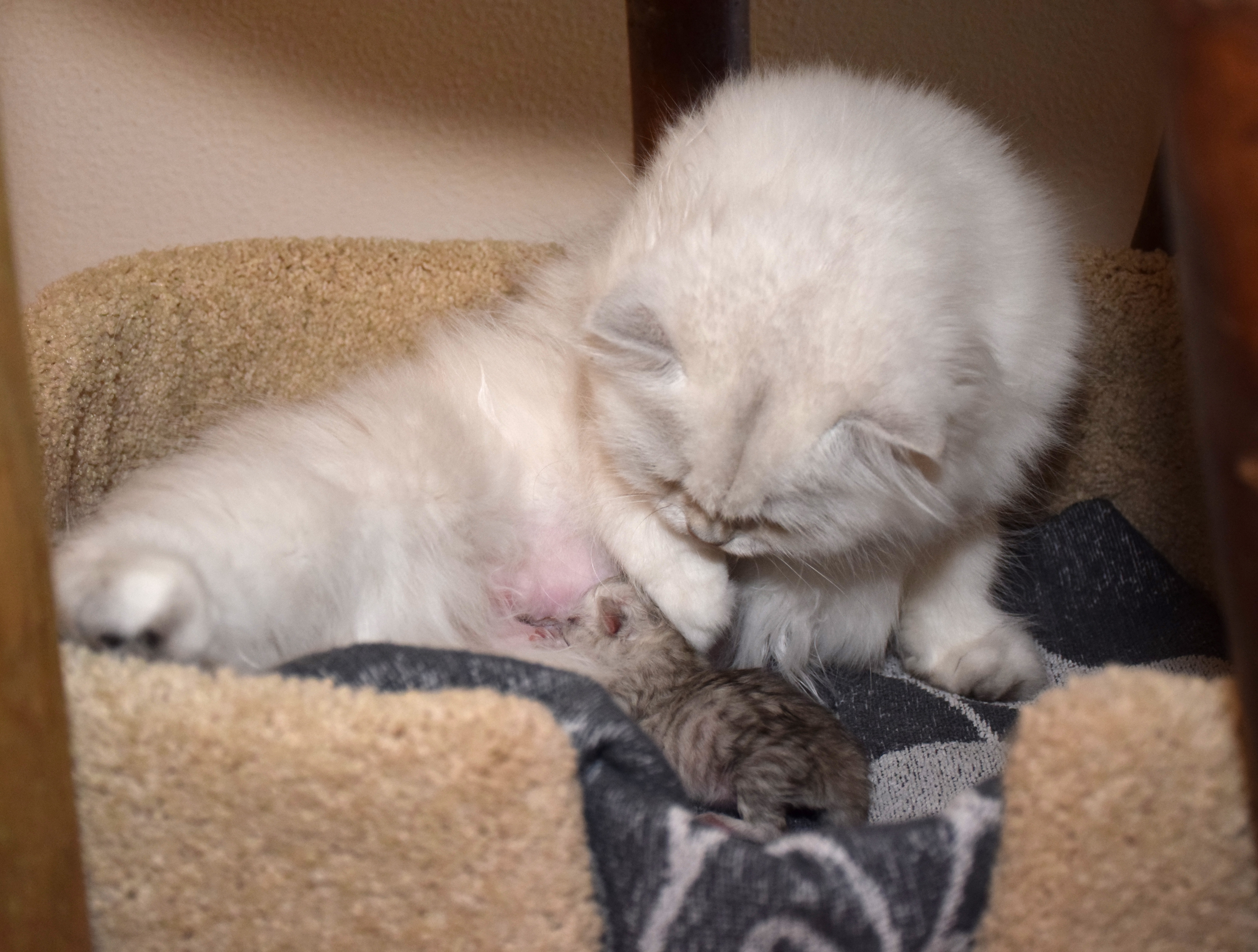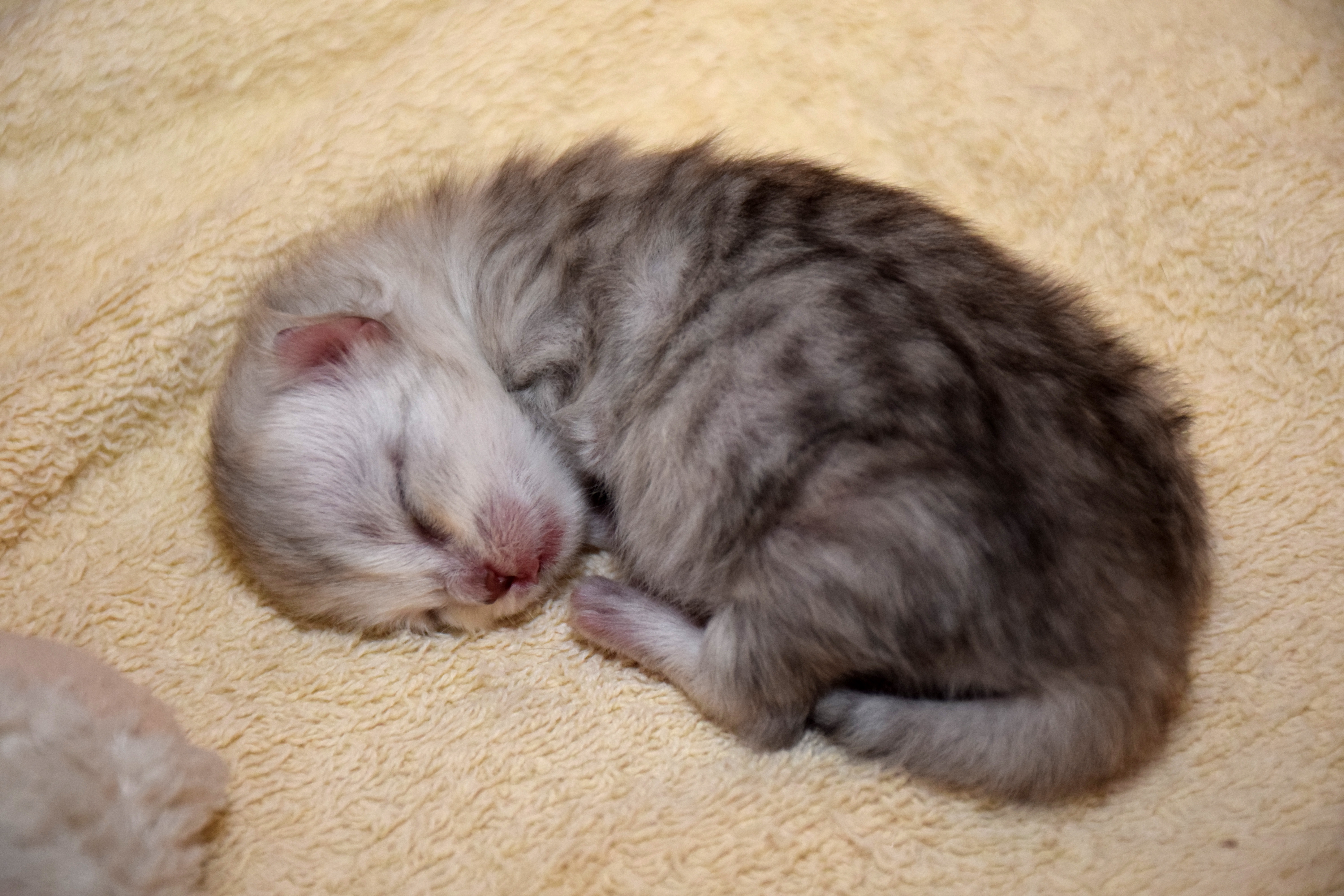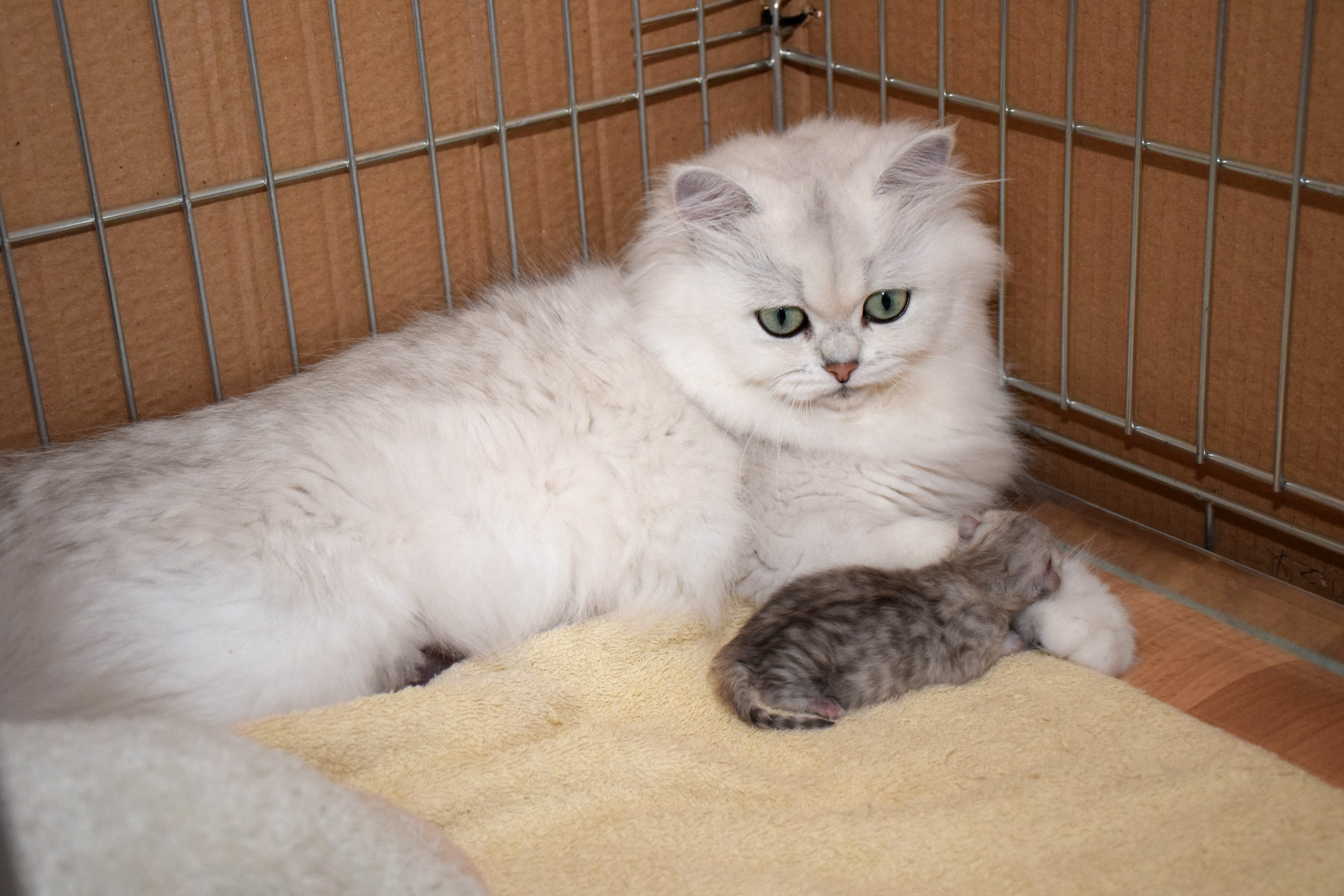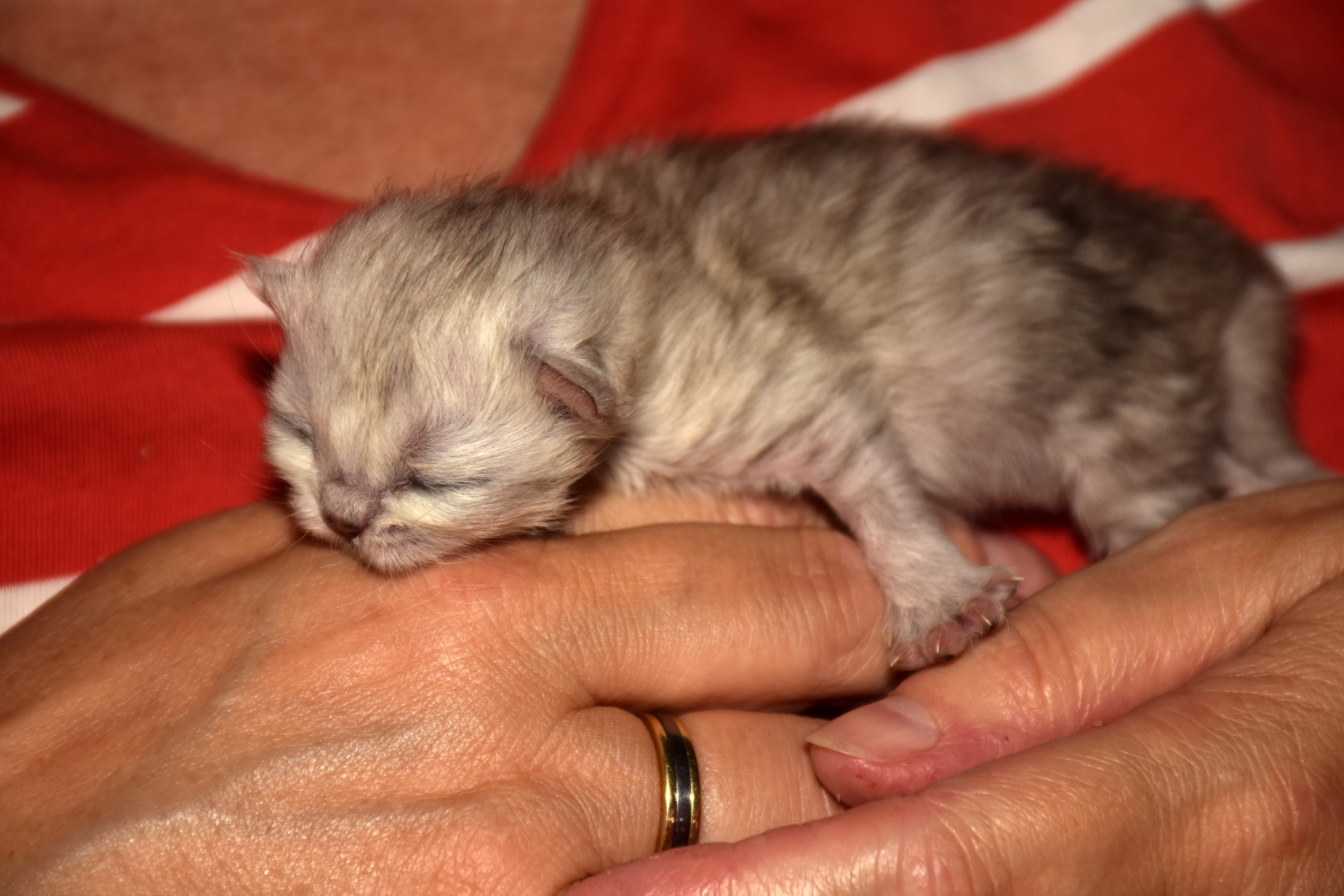 Ik zal met het goede nieuws beginnen. We hebben één kitten, een silver shaded poesje, van 66 gram geboortegewicht.