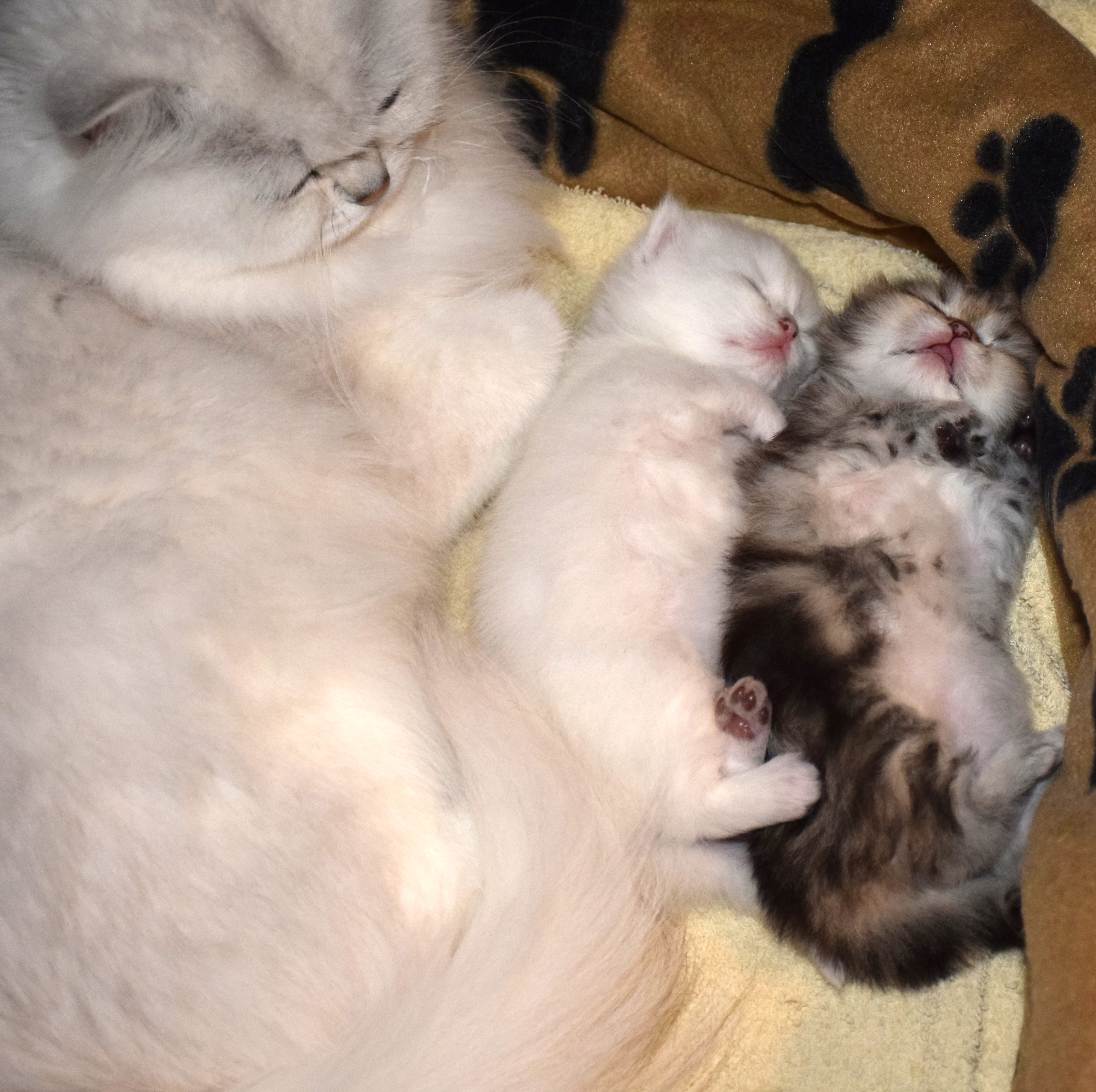 WK03_2016-04-21_009 Ushi geniet nu ze nog klein zijn en dicht bij haar blijven. Foto’s en teksten: eigendom en copyright Cattery Cherished.